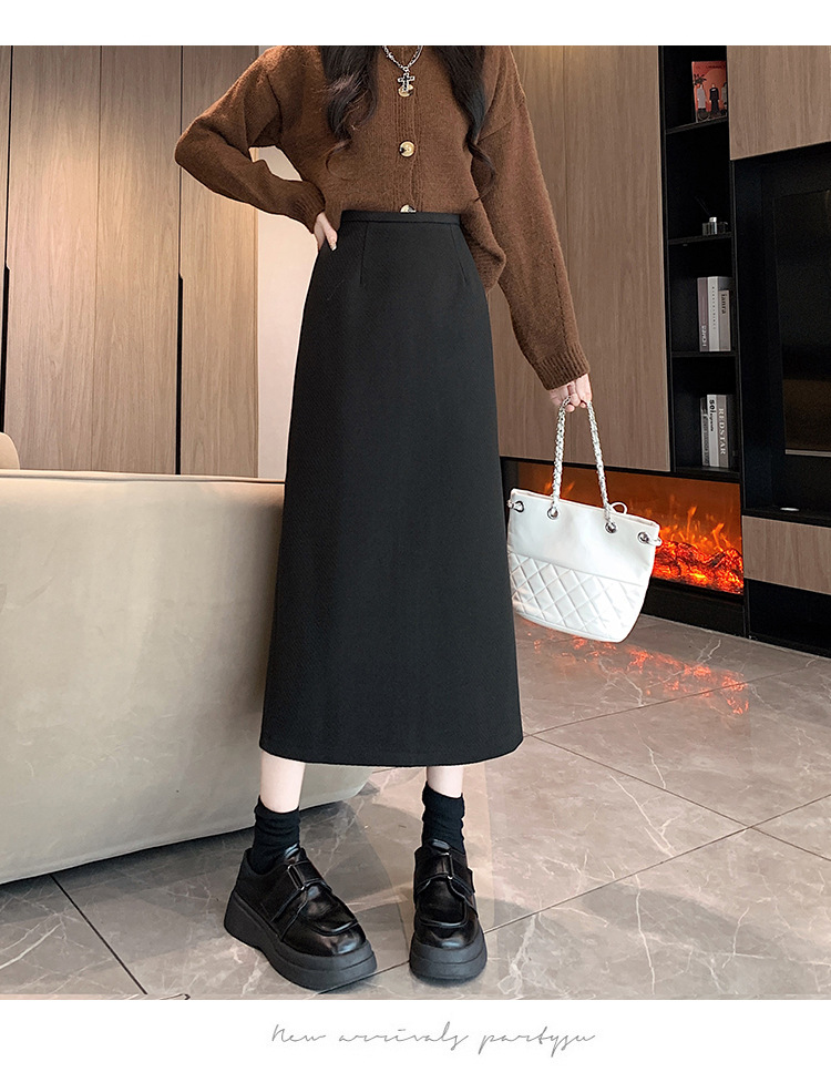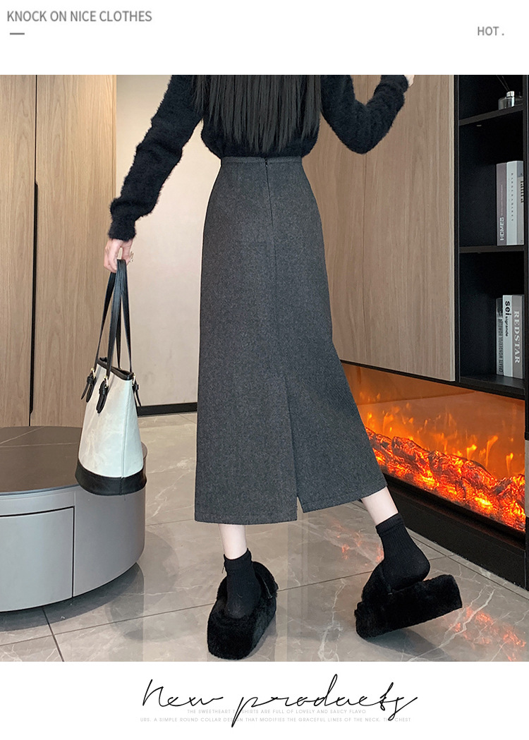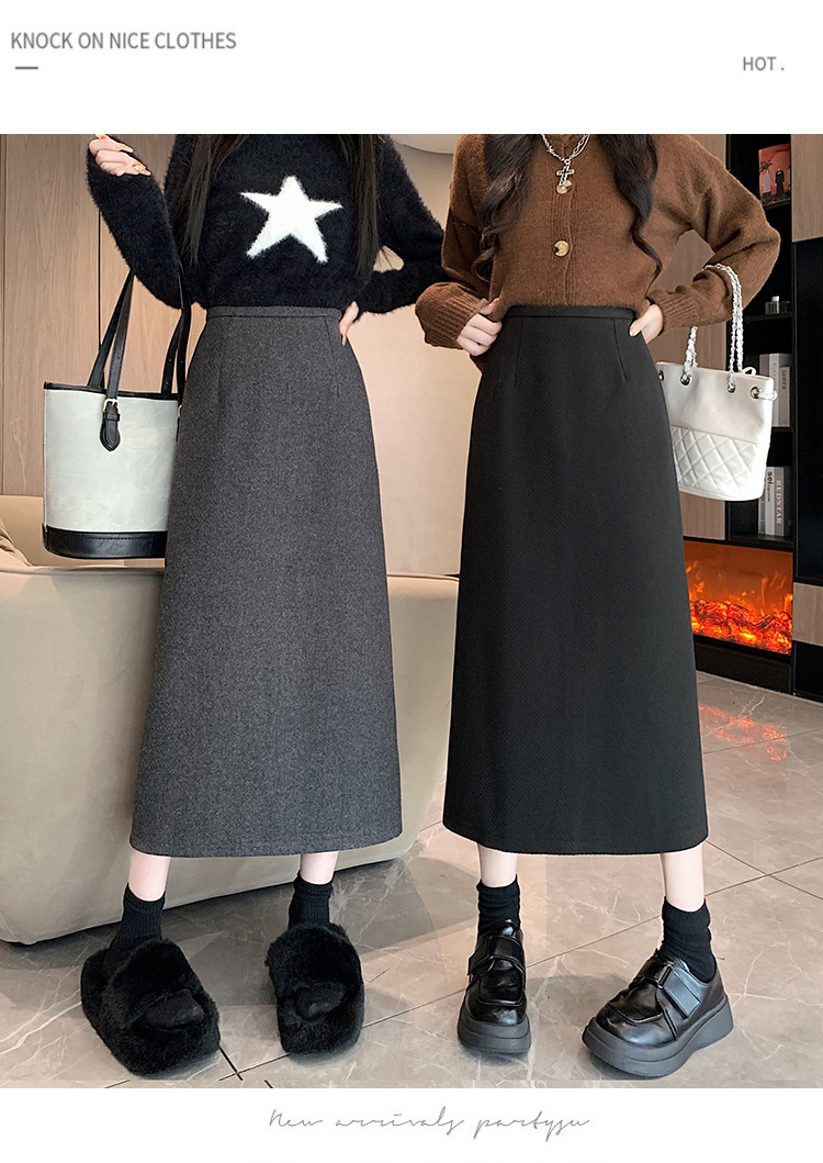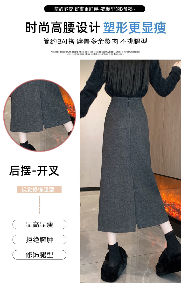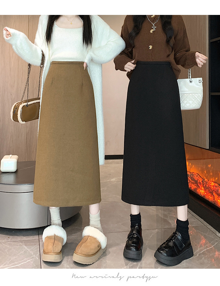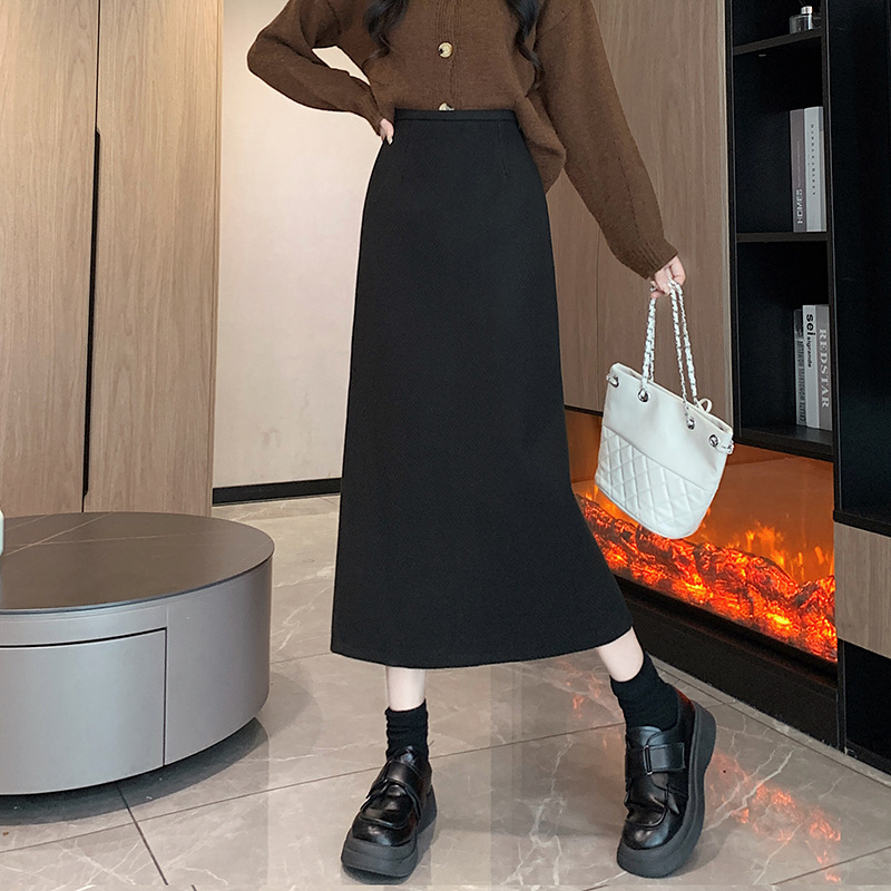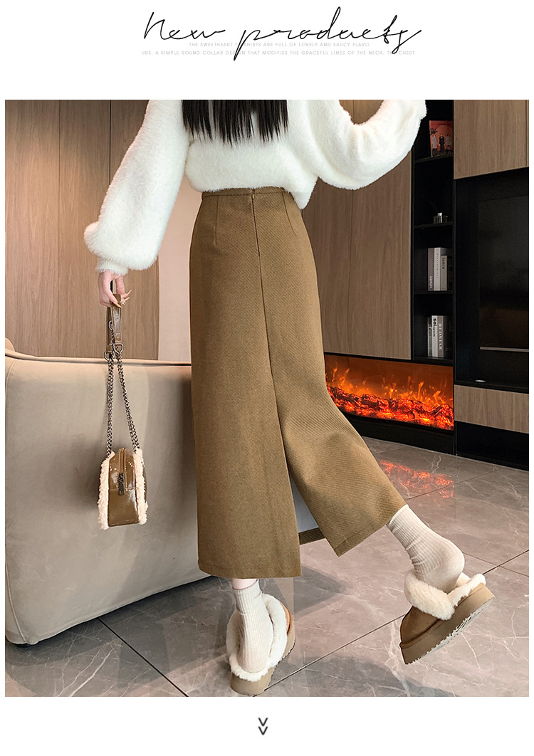 레트로 패딩 트위드 스커트 여성 가을과 겨울 한국 중장 엉덩이 원스텝 스커트 스플릿 A 라인 스커트 도매