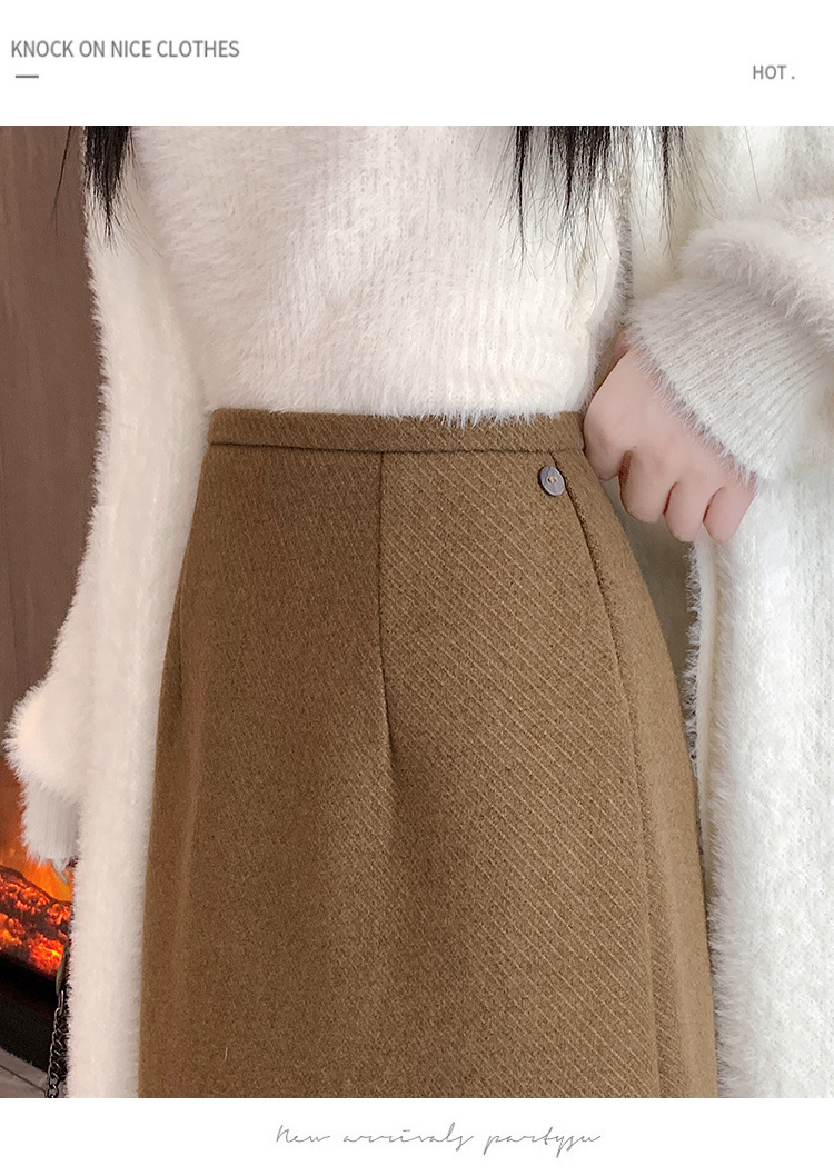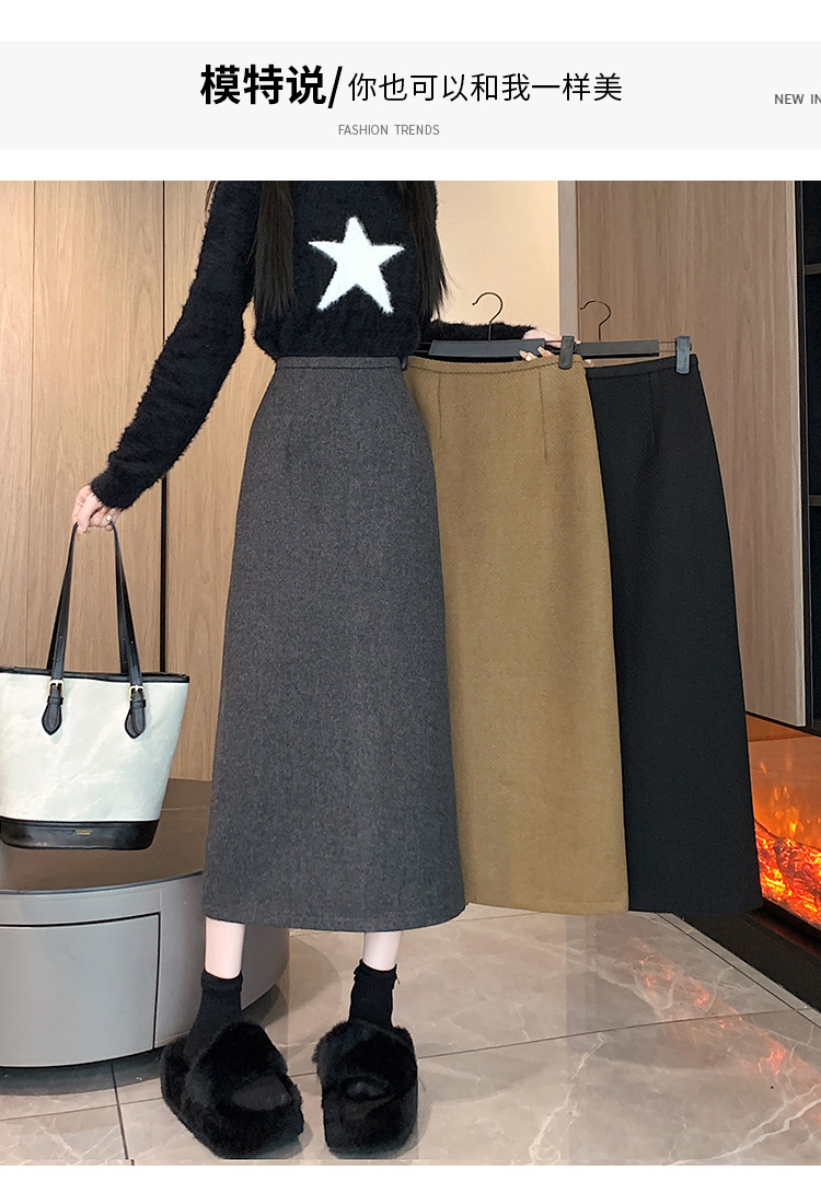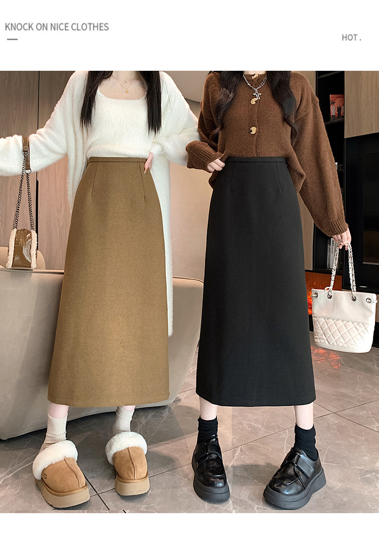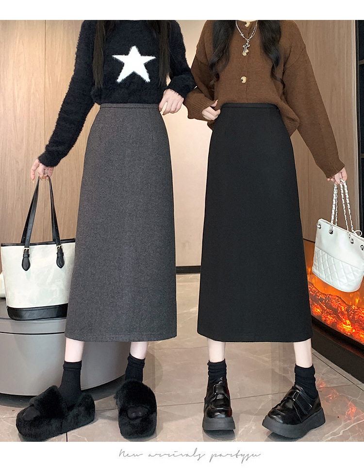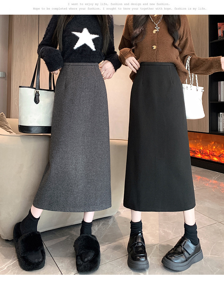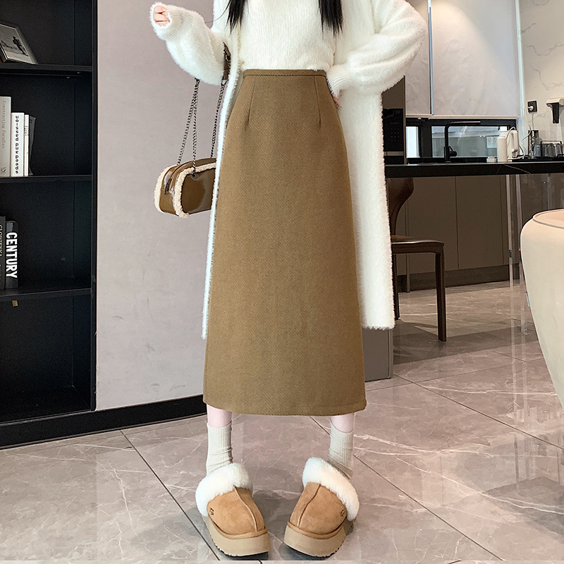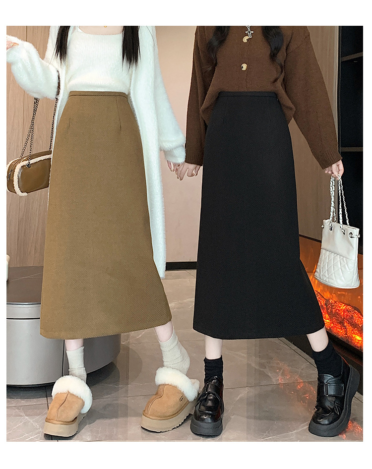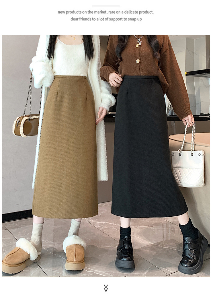레트로 패딩 트위드 스커트 여성 가을과 겨울 한국 중장 엉덩이 원스텝 스커트 스플릿 A 라인 스커트 도매