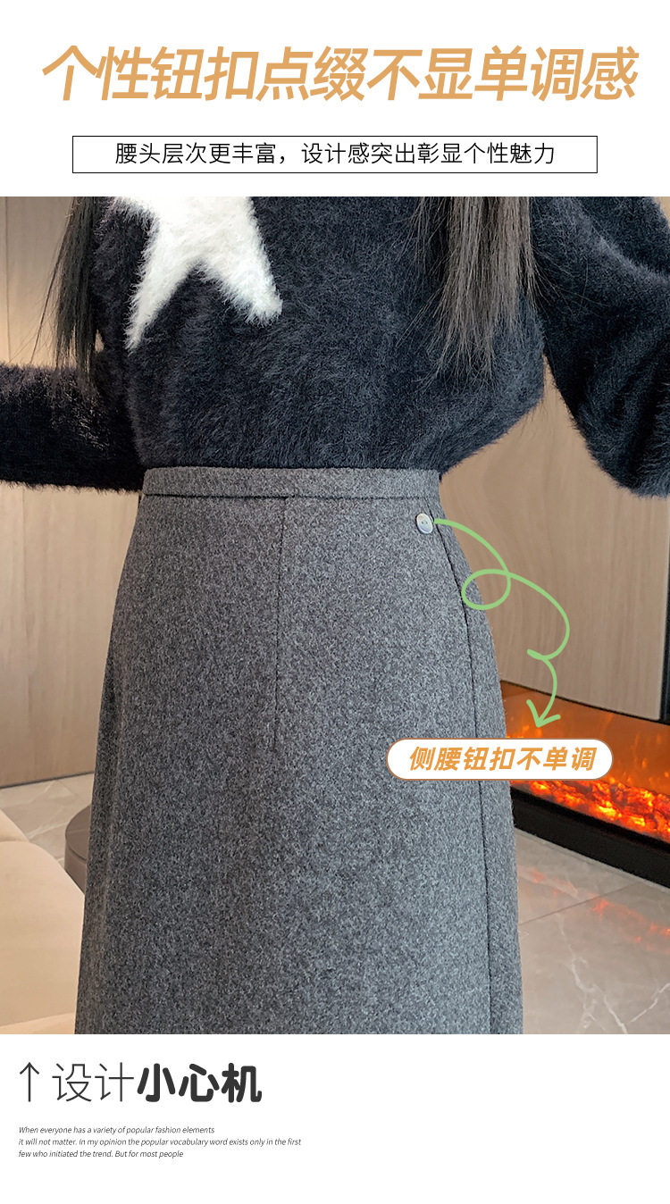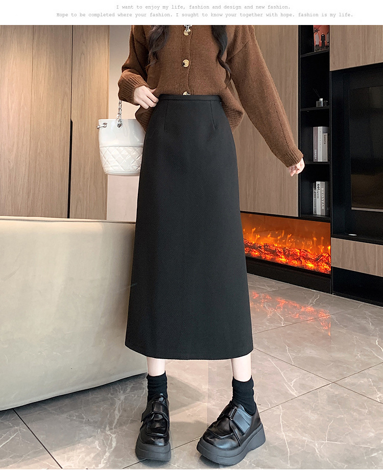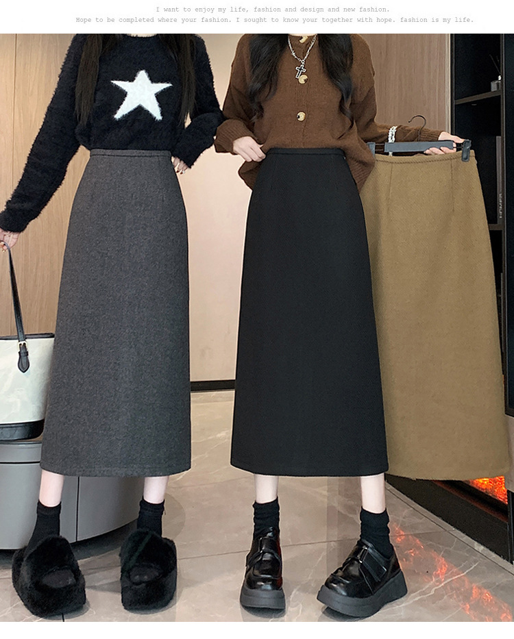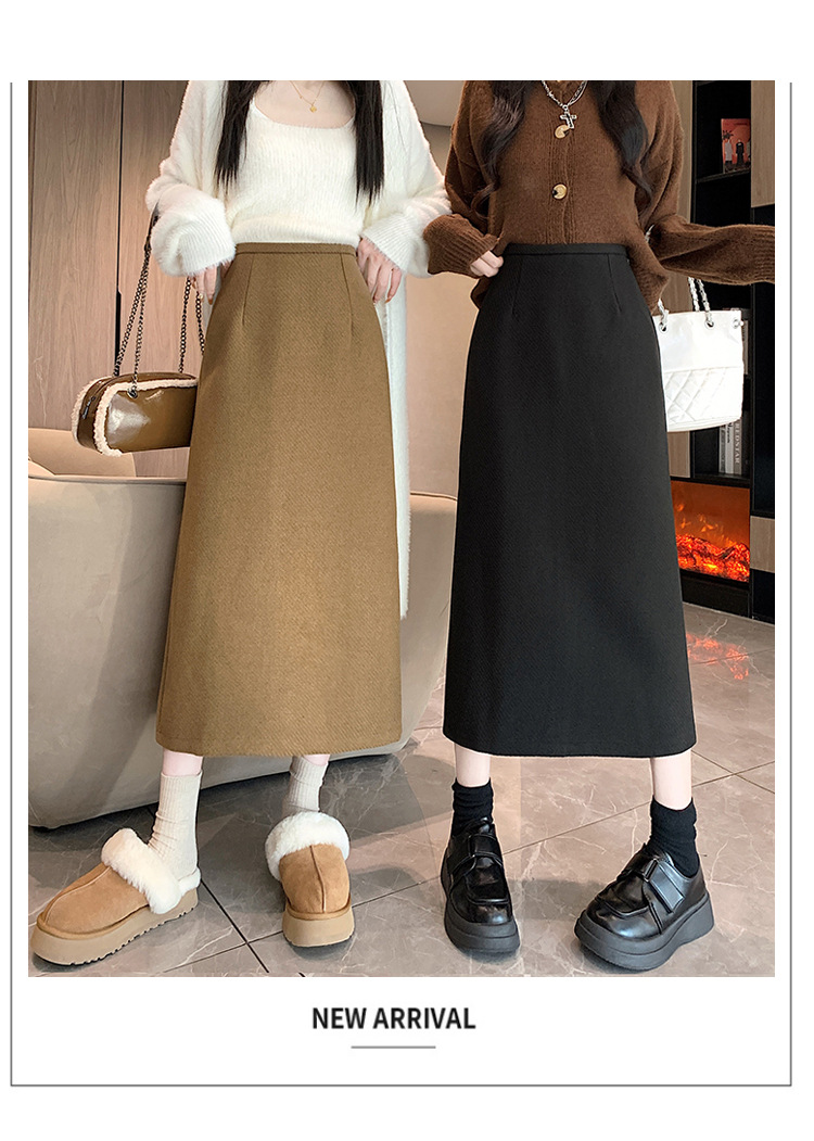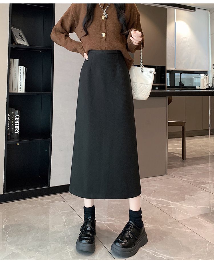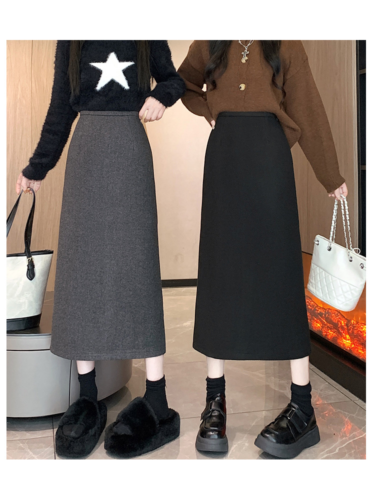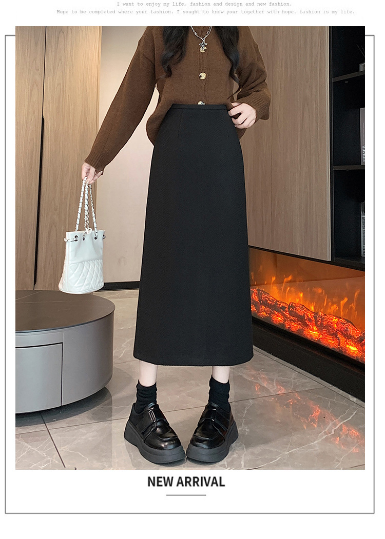 레트로 패딩 트위드 스커트 여성 가을과 겨울 한국 중장 엉덩이 원스텝 스커트 스플릿 A 라인 스커트 도매