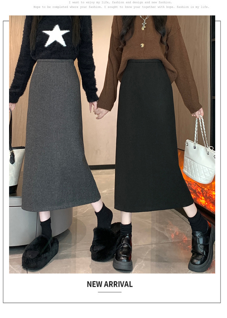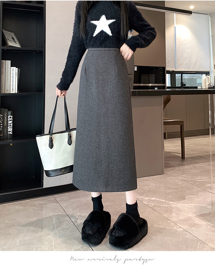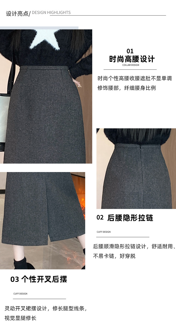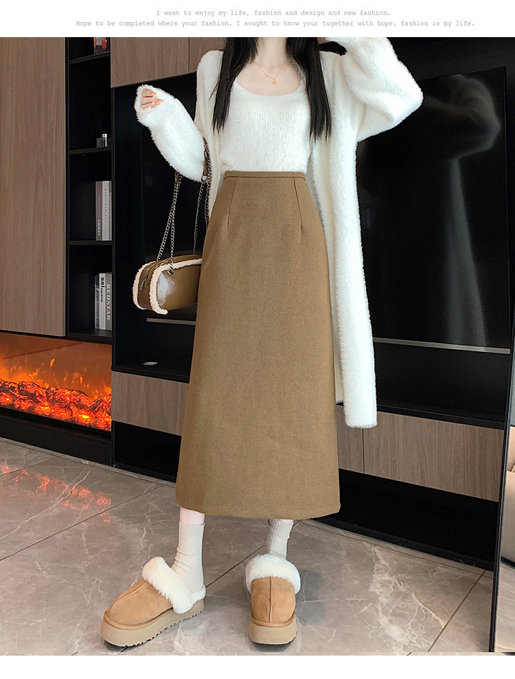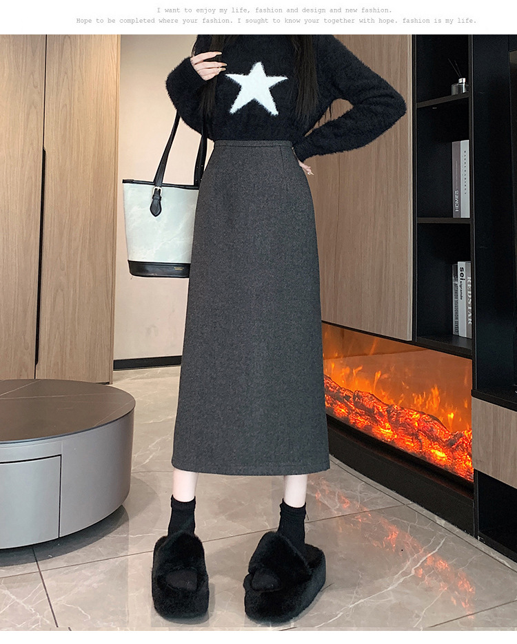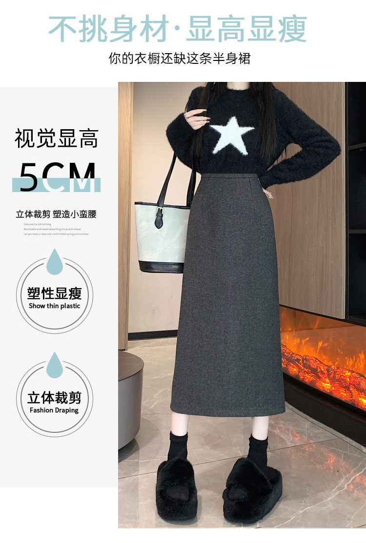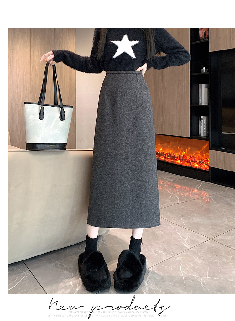 레트로 패딩 트위드 스커트 여성 가을과 겨울 한국 중장 엉덩이 원스텝 스커트 스플릿 A 라인 스커트 도매