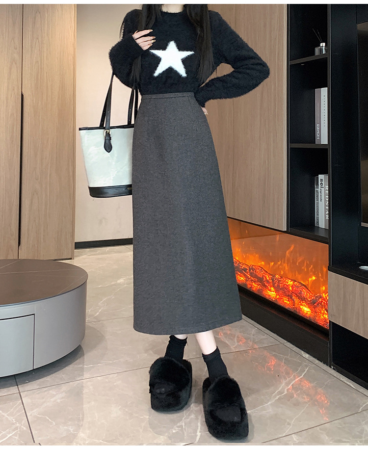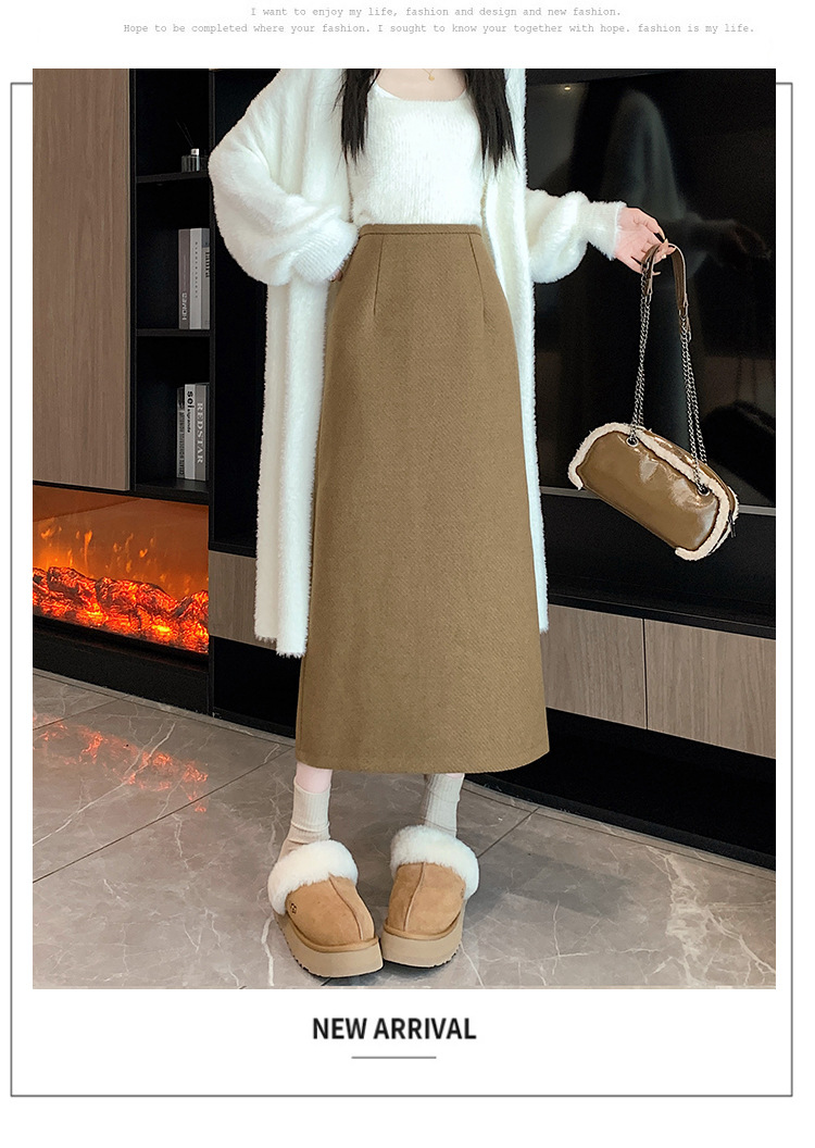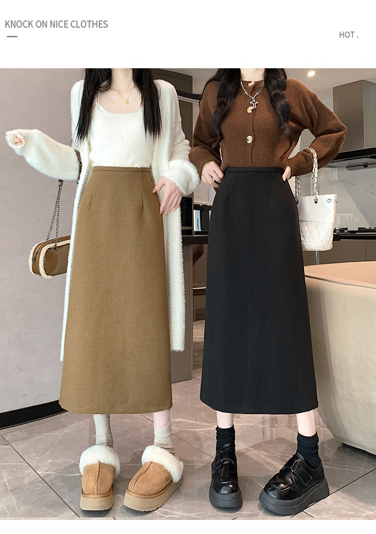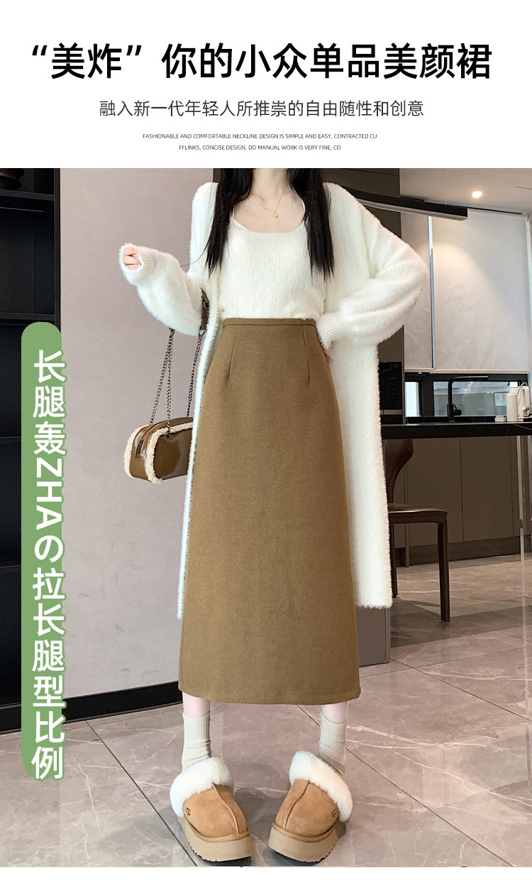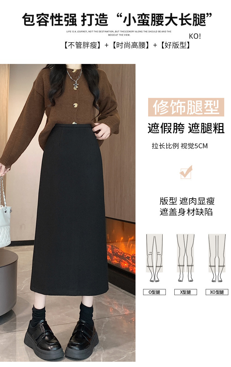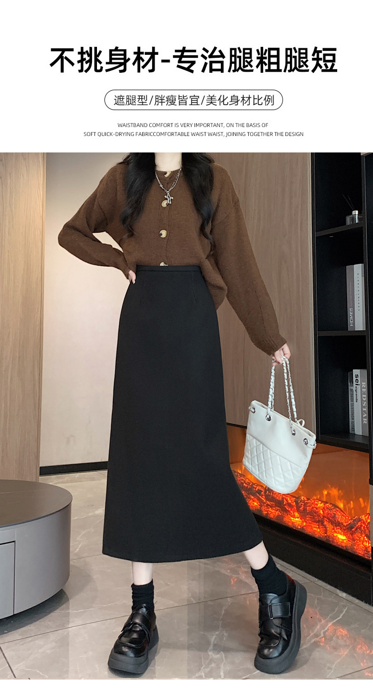 레트로 패딩 트위드 스커트 여성 가을과 겨울 한국 중장 엉덩이 원스텝 스커트 스플릿 A 라인 스커트 도매