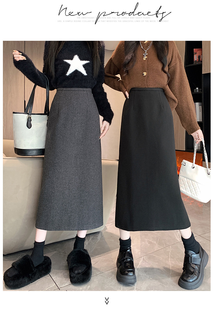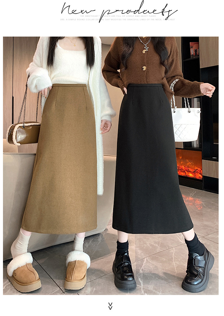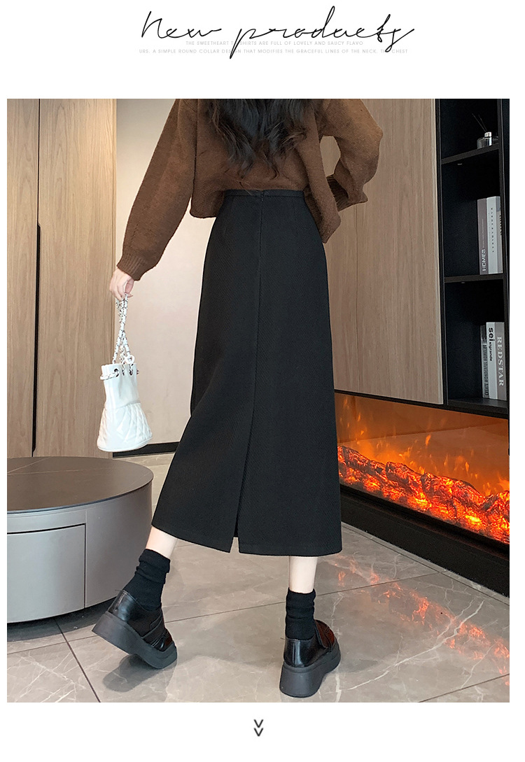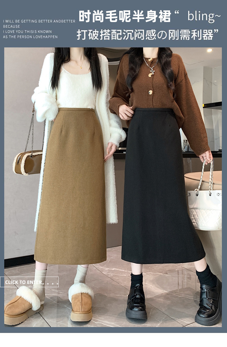 레트로 패딩 트위드 스커트 여성 가을과 겨울 한국 중장 엉덩이 원스텝 스커트 스플릿 A 라인 스커트 도매스토어 가기