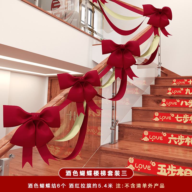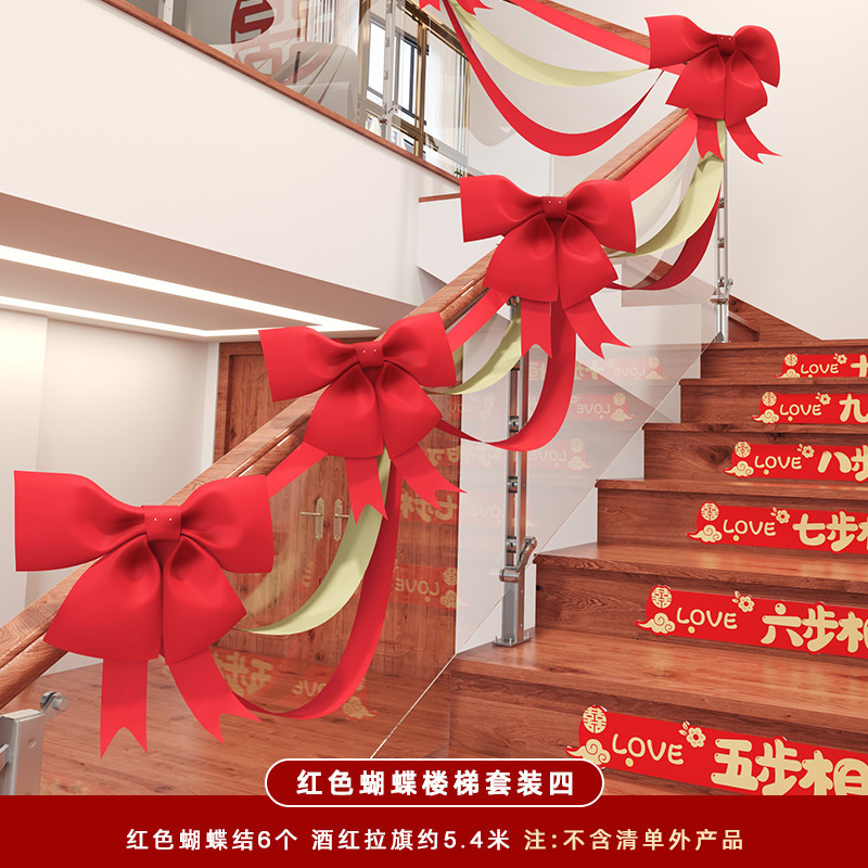 웨딩 계단 난간 장식 활 리본 웨딩 용품 꽃 웨딩 룸 레이아웃 웨딩 에스컬레이터 세트