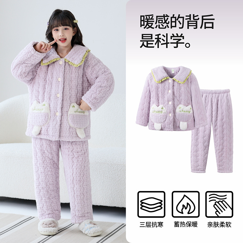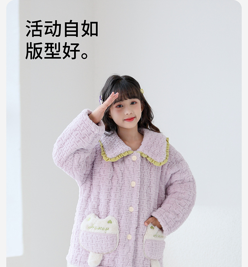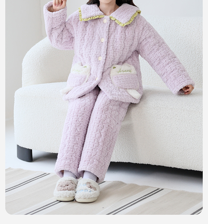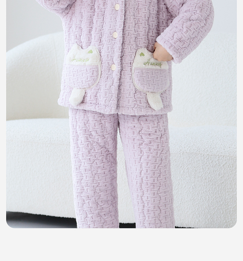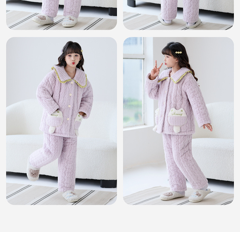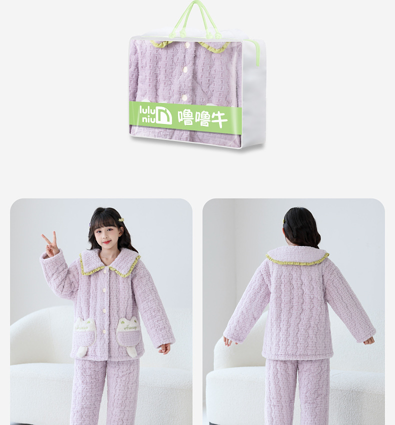 Lulu Niu 겨울 어린이 잠옷 소녀의 플란넬 면화 패딩 두꺼운 토끼 벨벳 소녀의 집 옷