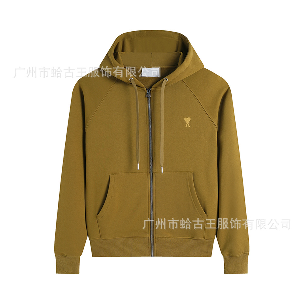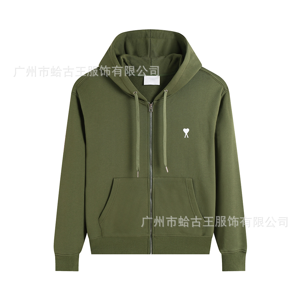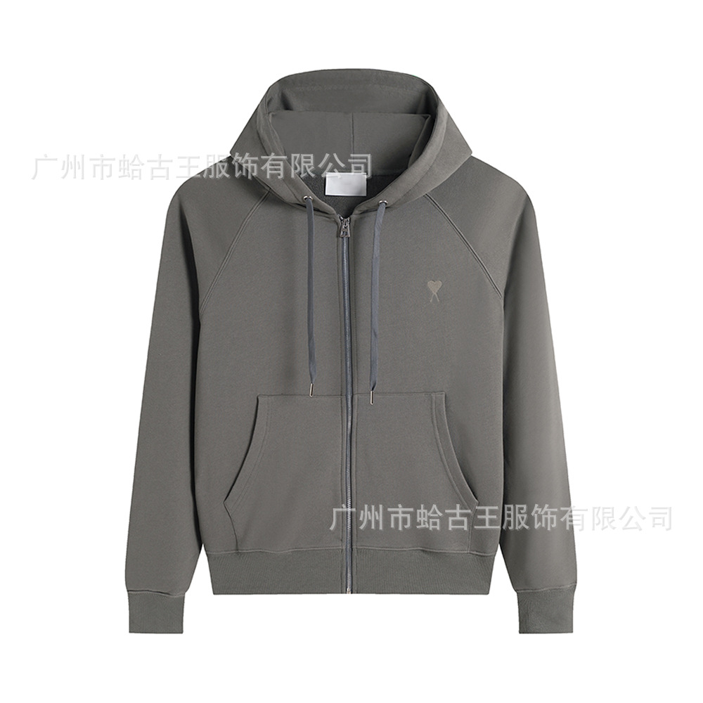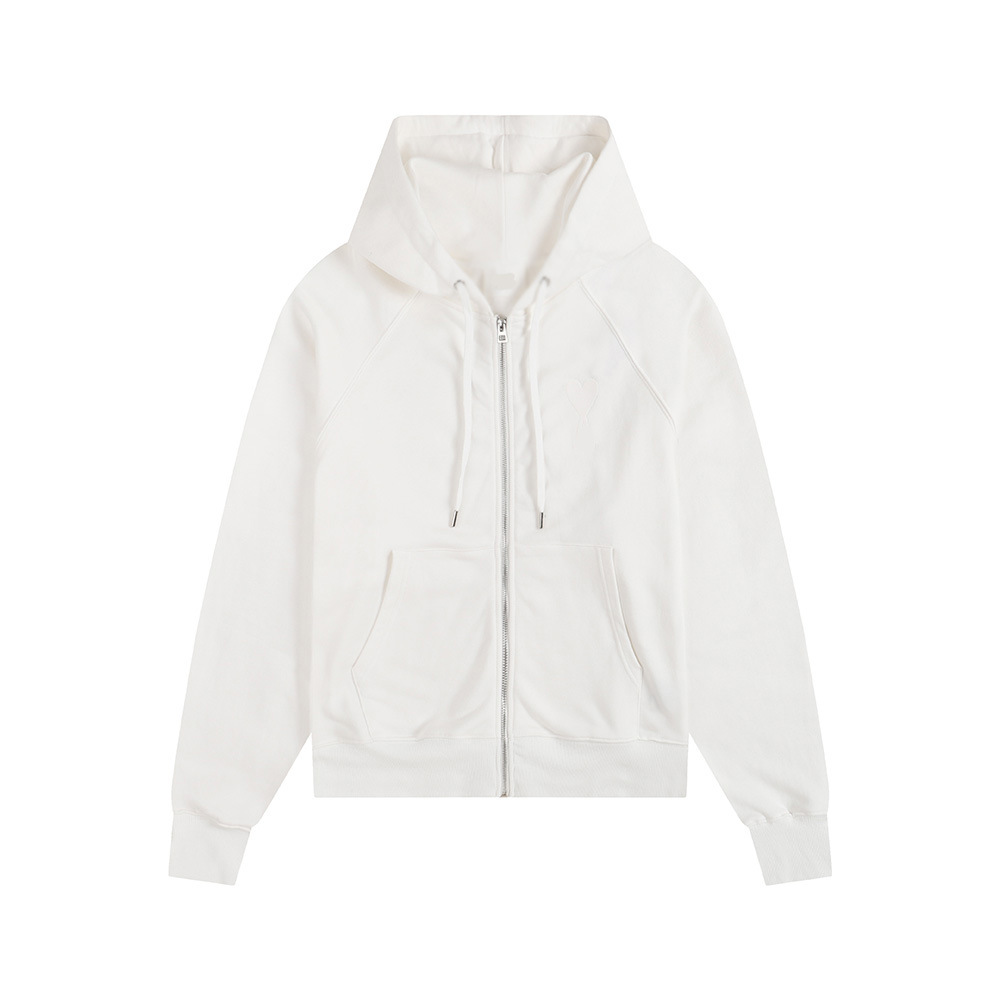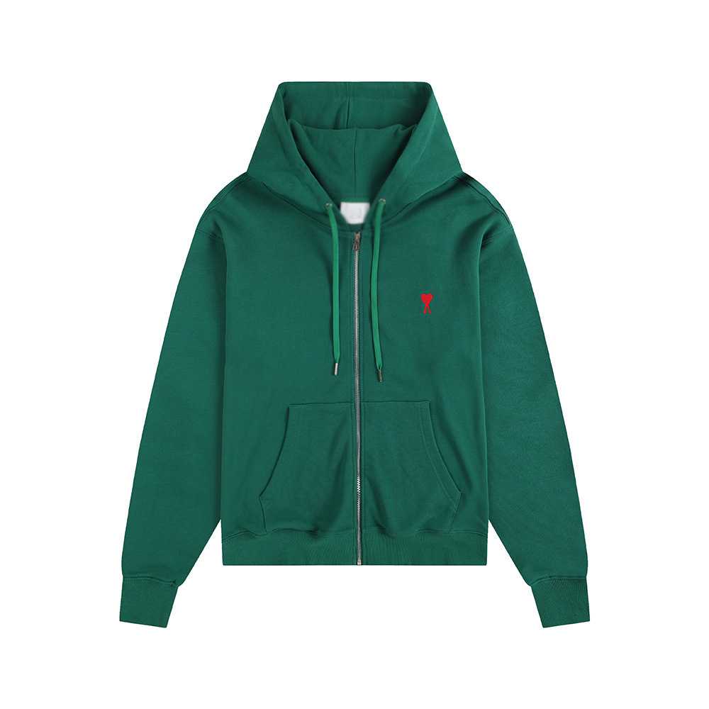 가을과 겨울 AMI CLAMS 스웨트 셔츠 작은 사랑 포켓 지퍼 자수 후드 캐주얼 코트 후드 남성과 여성