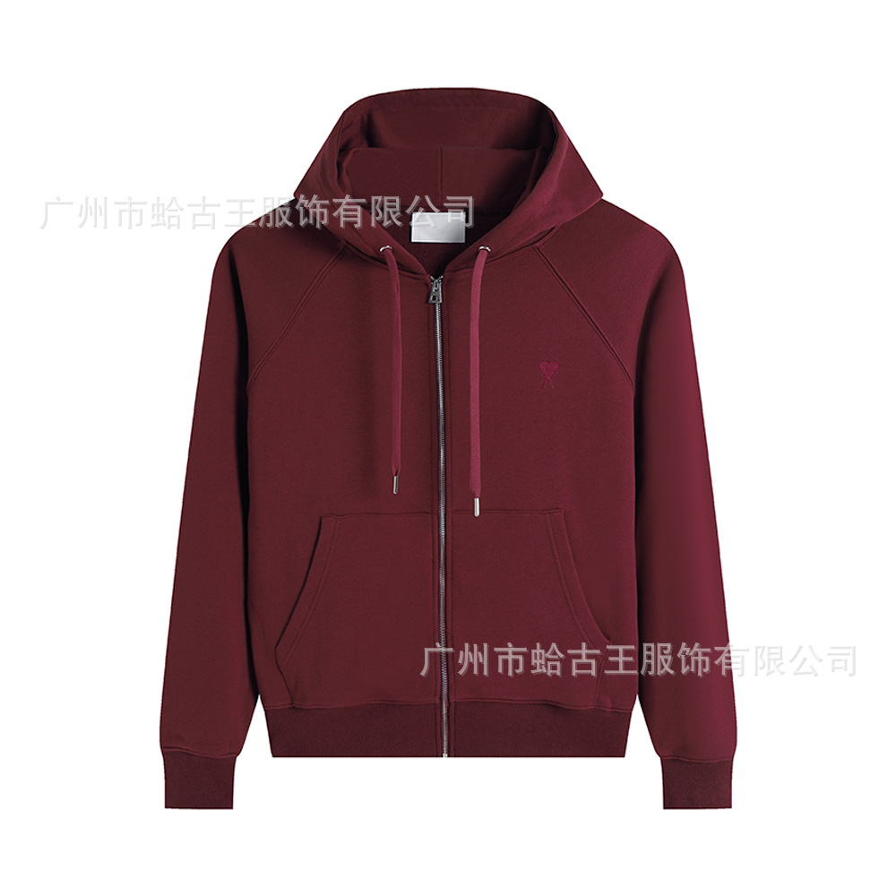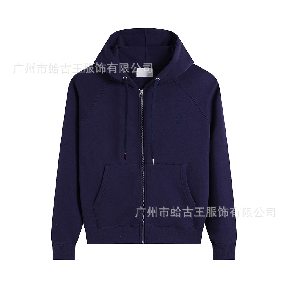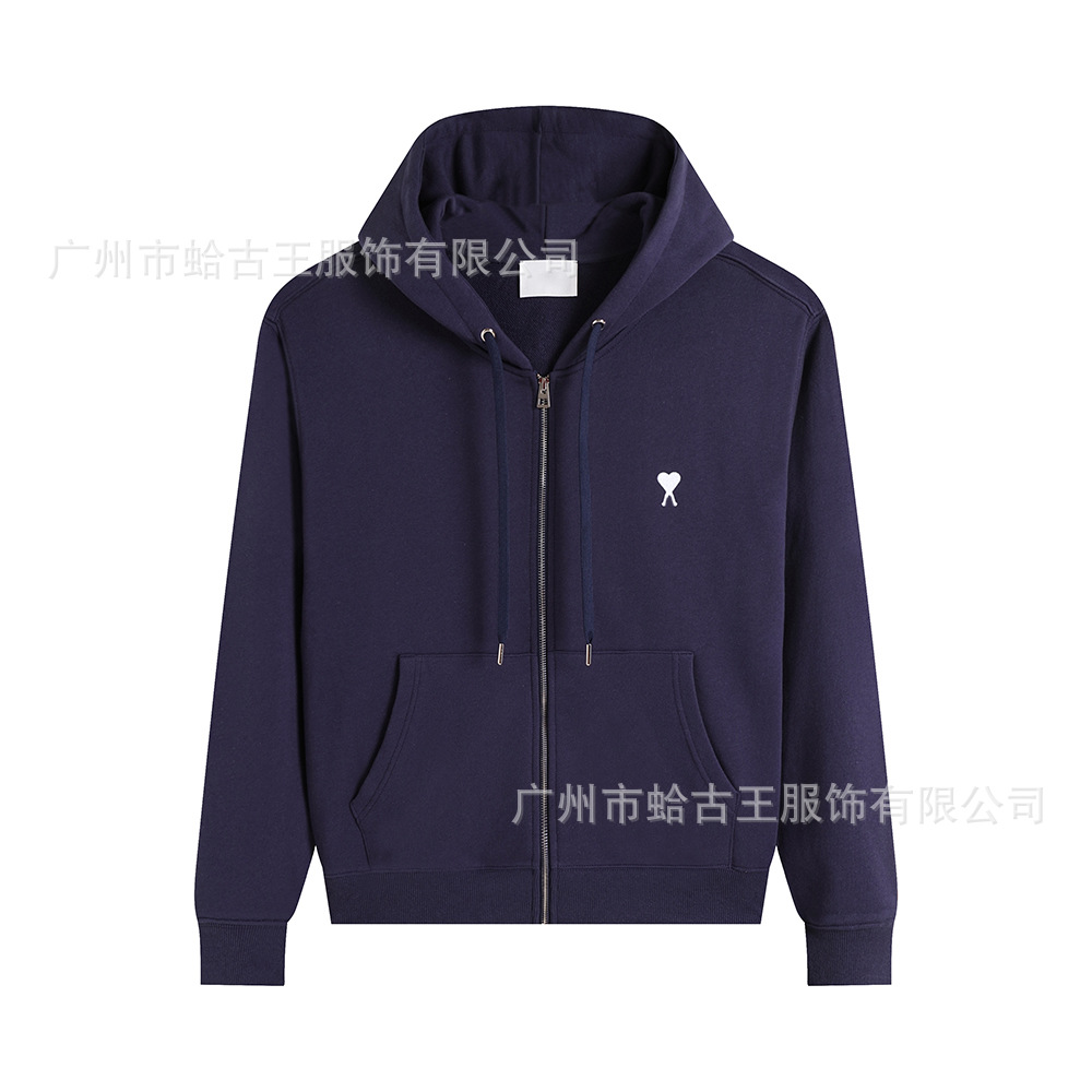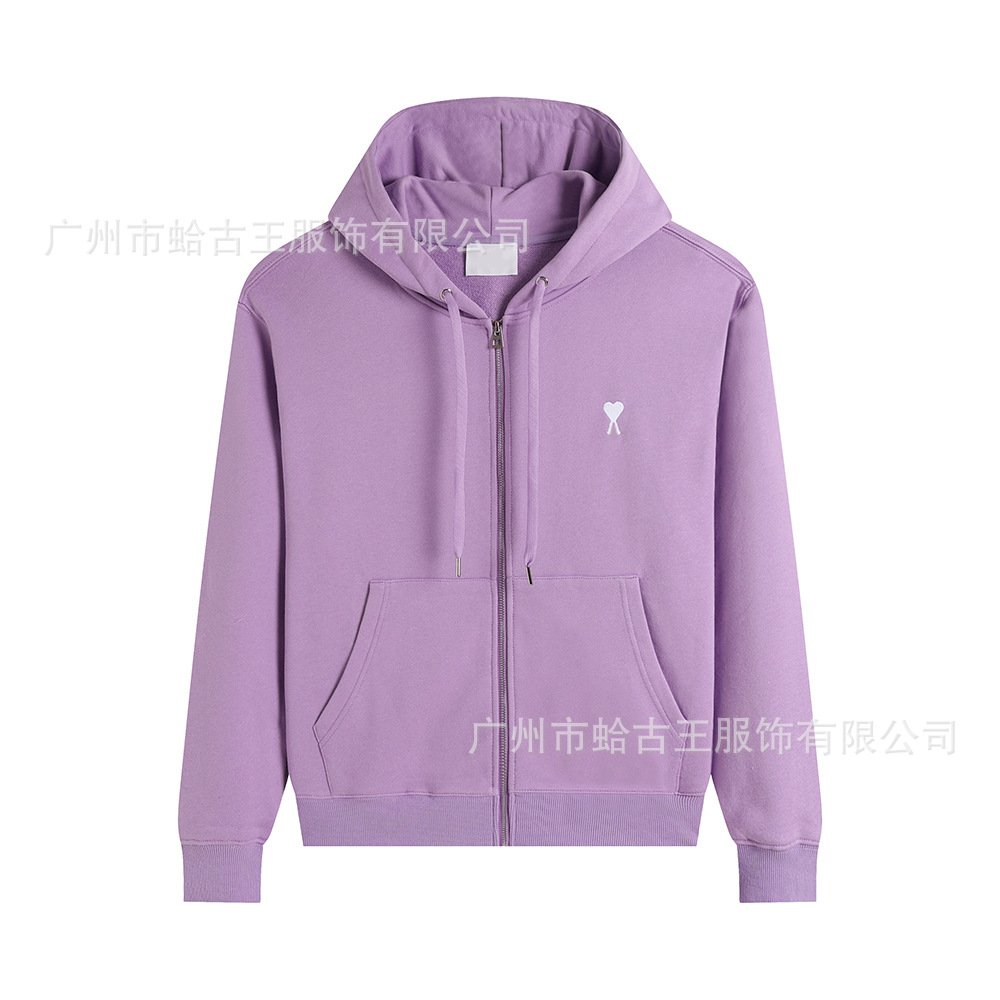 가을과 겨울 AMI CLAMS 스웨트 셔츠 작은 사랑 포켓 지퍼 자수 후드 캐주얼 코트 후드 남성과 여성스토어 가기