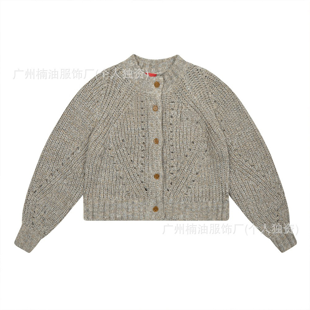 고품질 시웨이후 스웨터, 토성 자수, 레트로 빈티지 스타일, 헤비 웨이트 두꺼운 실, 랜턴 슬리브, 따뜻한 니트 가디건 (여성용)
