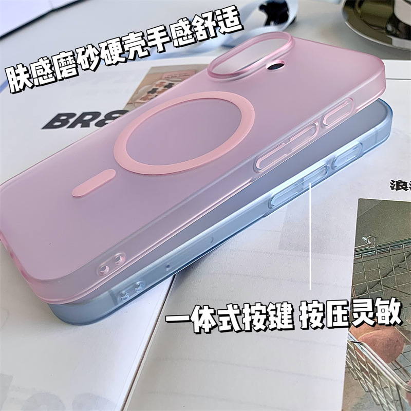 Apple 17 휴대폰 케이스에 적합 PC 아이스 미스트 마그네틱 흡입 iphone16 초박형 무광택 15promax 스킨 느낌 14 하드 13스토어 가기