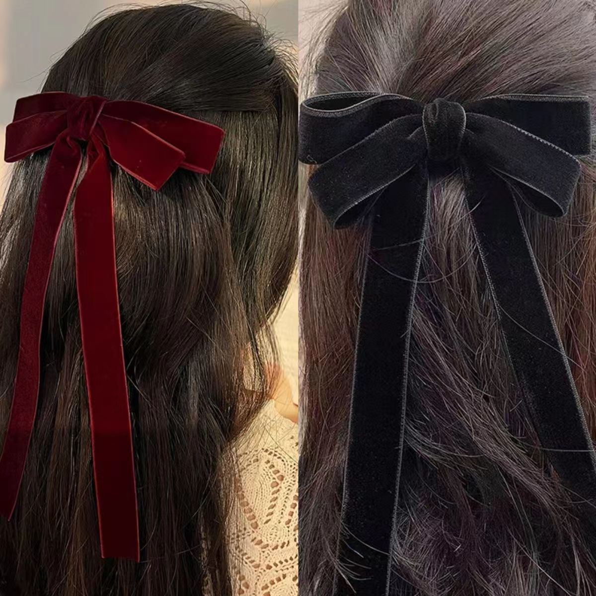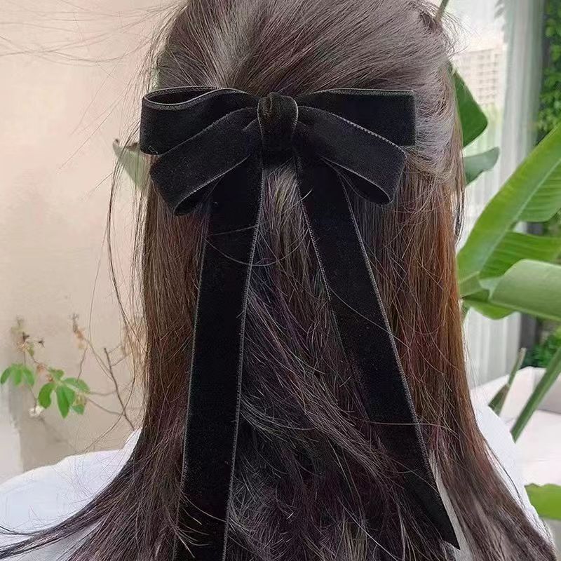 벨벳 활 리본 헤어핀 여성 한국식 젠틀 우아한 머리 머리 뒷면 올매치 하이 엔드 인터넷 연예인 헤어 액세서리