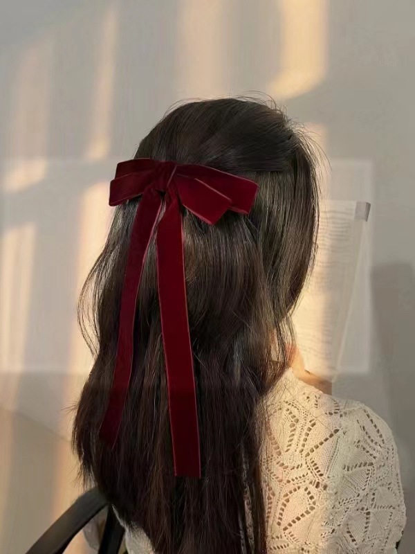벨벳 활 리본 헤어핀 여성 한국식 젠틀 우아한 머리 머리 뒷면 올매치 하이 엔드 인터넷 연예인 헤어 액세서리스토어 가기