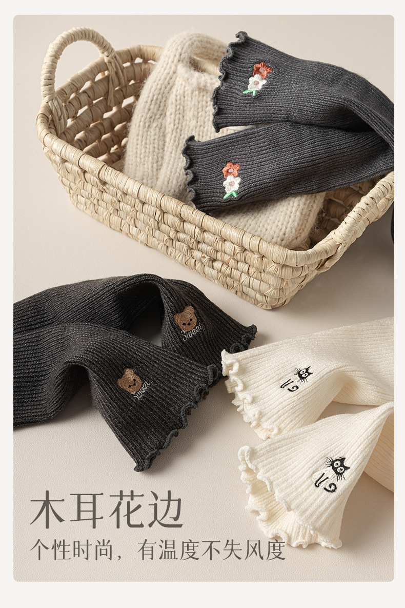 초부드러운 보온 자수 소매, 이중 바늘 오픈 핑거 디자인, 러플 장식 팔 보호대, 반손가락 가을 겨울 방한용 스택형 반팔