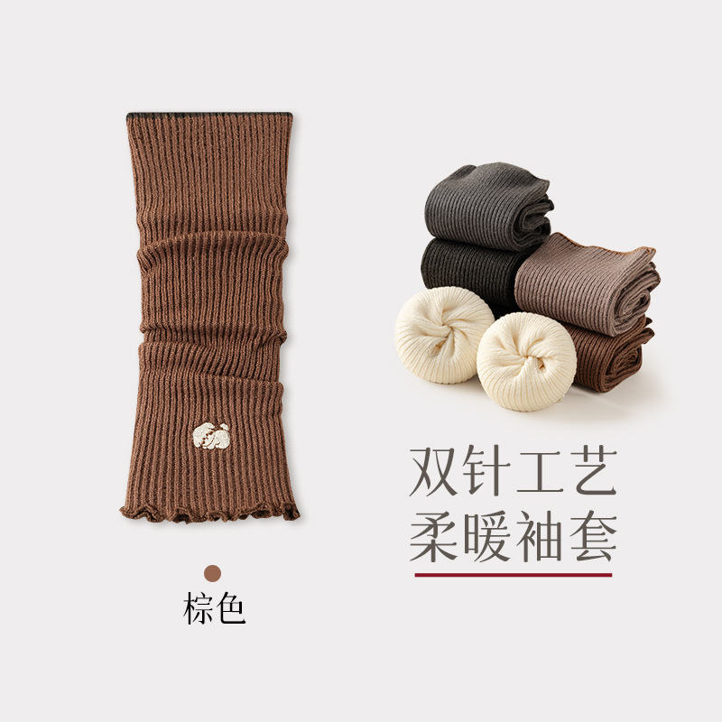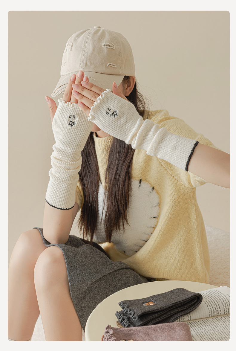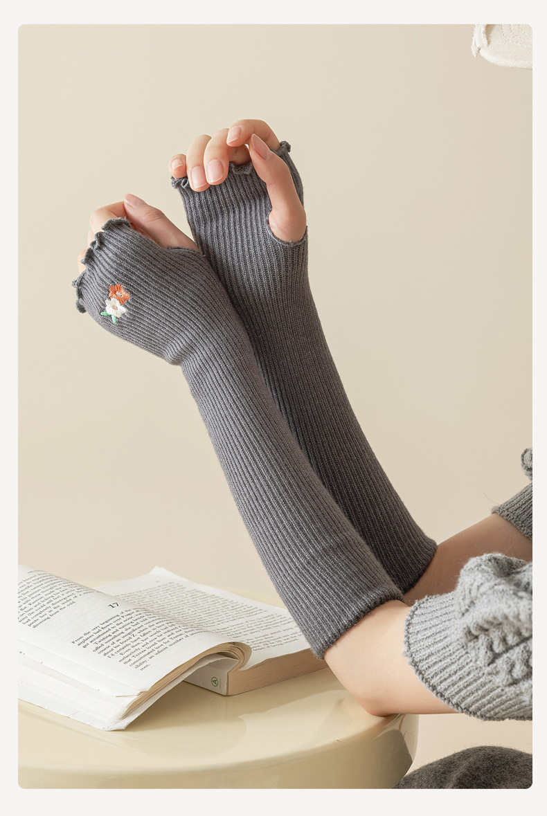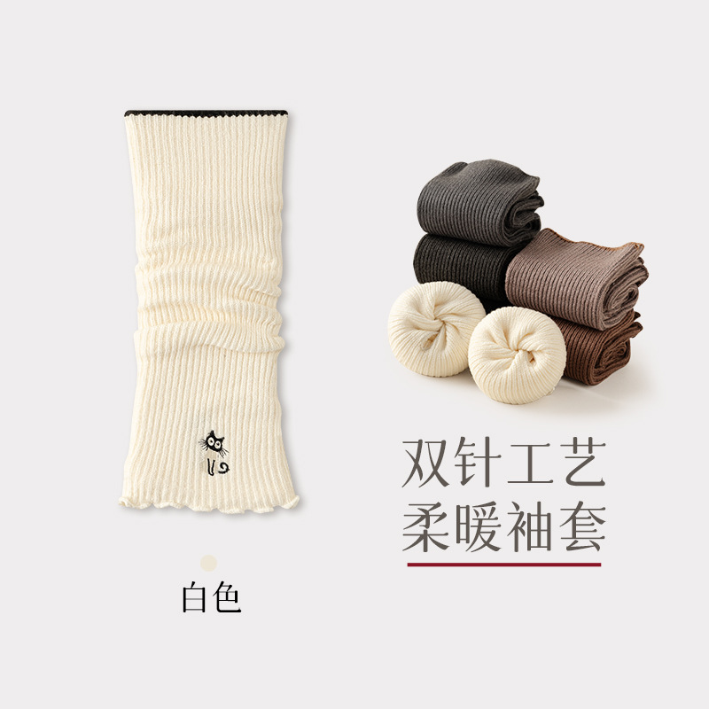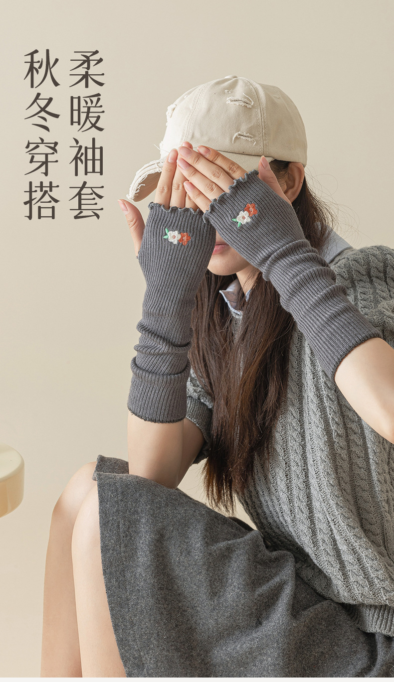 초부드러운 보온 자수 소매, 이중 바늘 오픈 핑거 디자인, 러플 장식 팔 보호대, 반손가락 가을 겨울 방한용 스택형 반팔스토어 가기