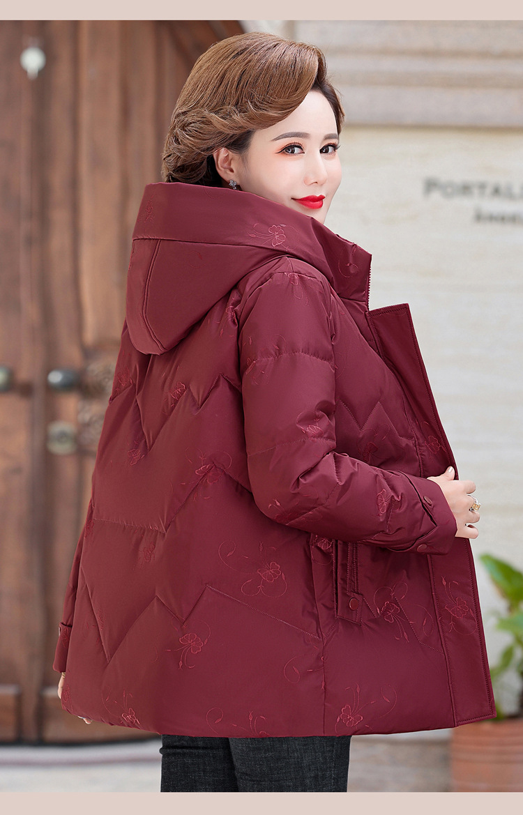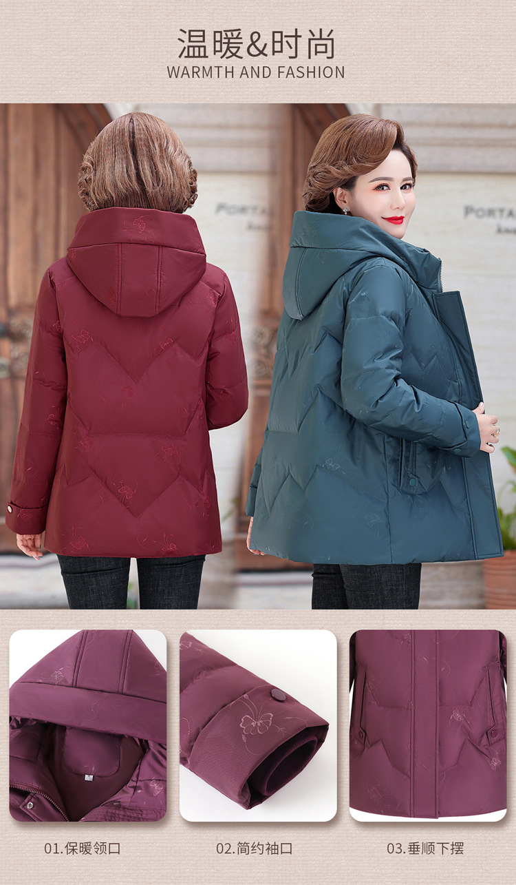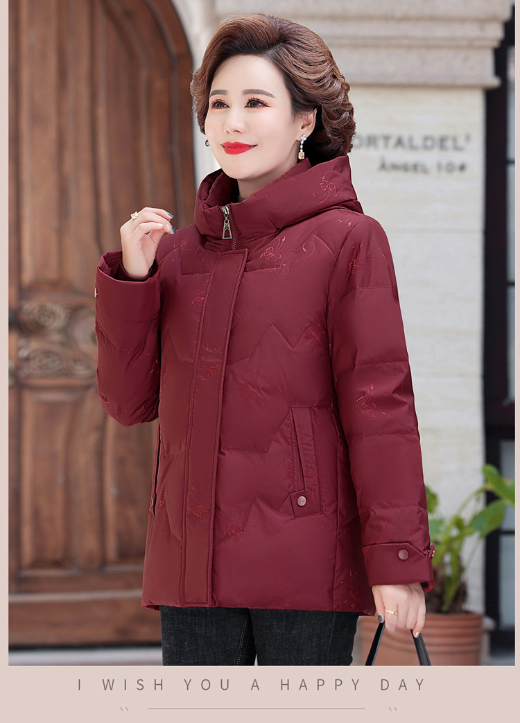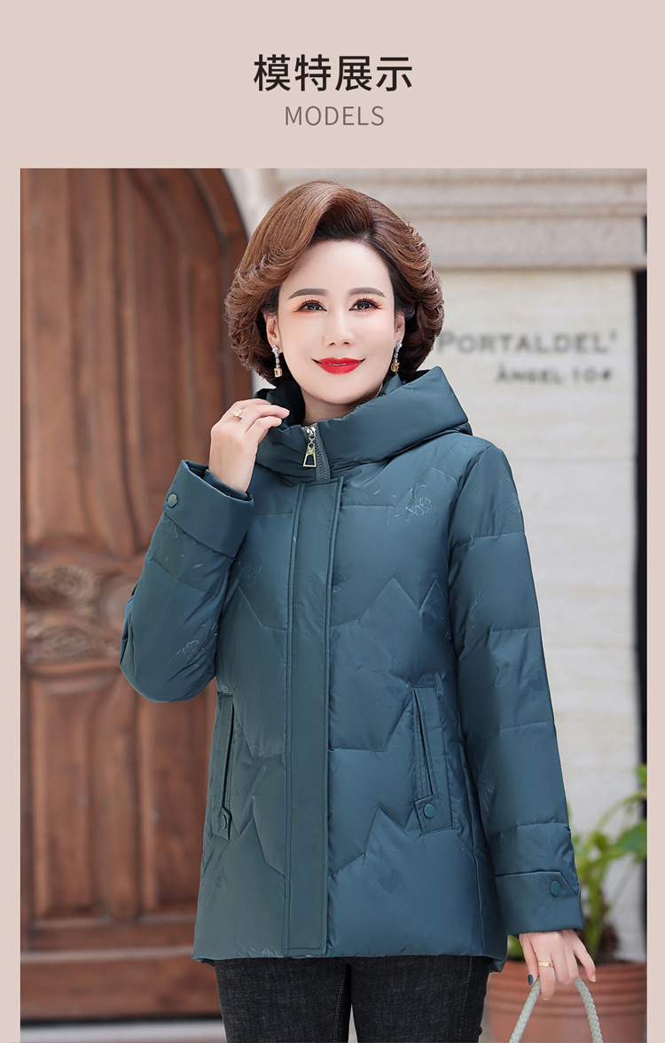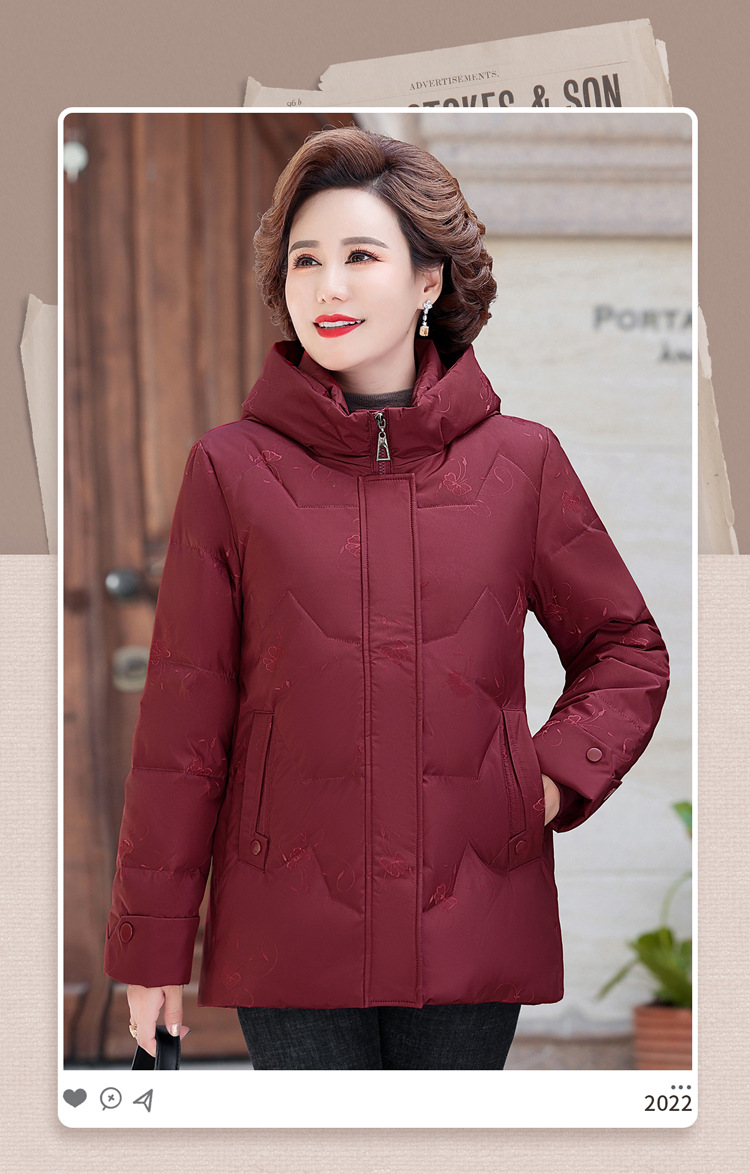 브랜드 겨울 중년 어머니의 다운 재킷 여성의 2024 중장 화이트 덕 다운 두꺼운 후드 재킷