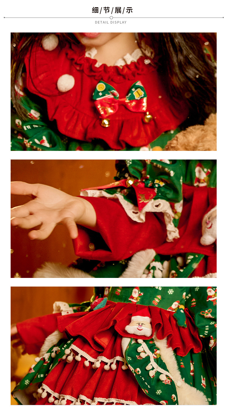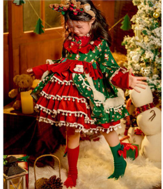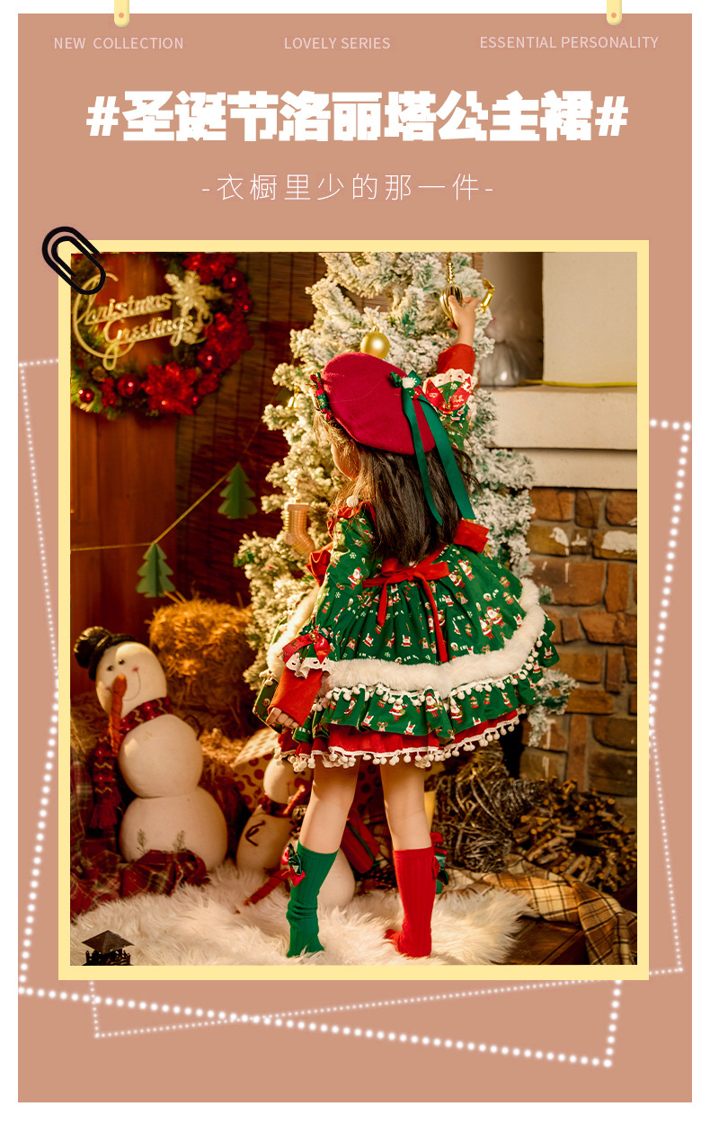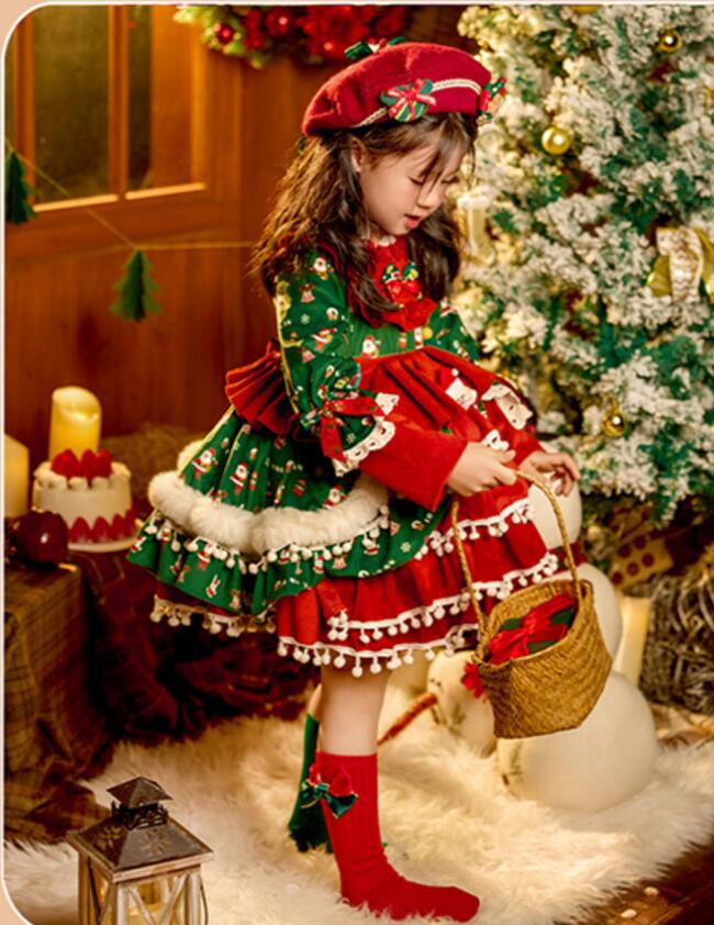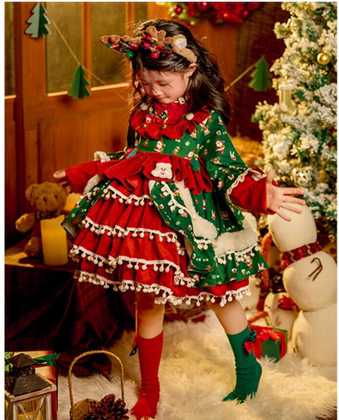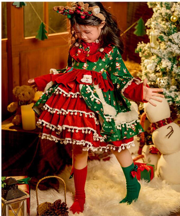 2024 새로운 소녀 원피스 가을 겨울 크리스마스 어린이 로리타 공주 원피스 양식화 된 여성 보물 원피스