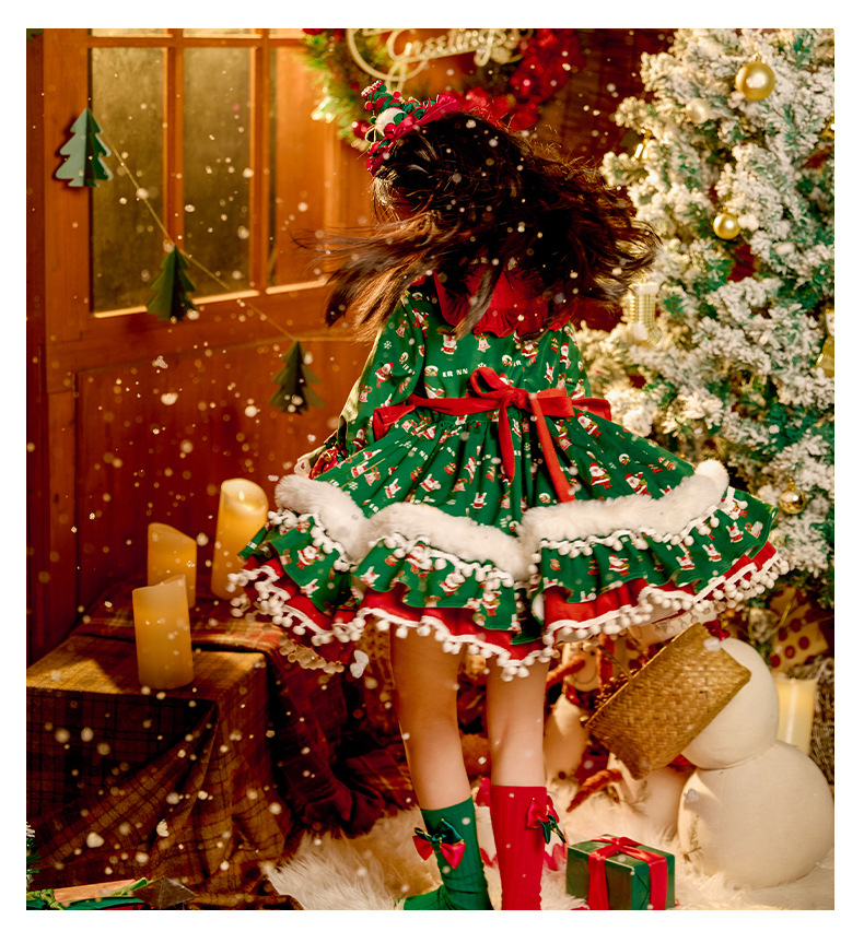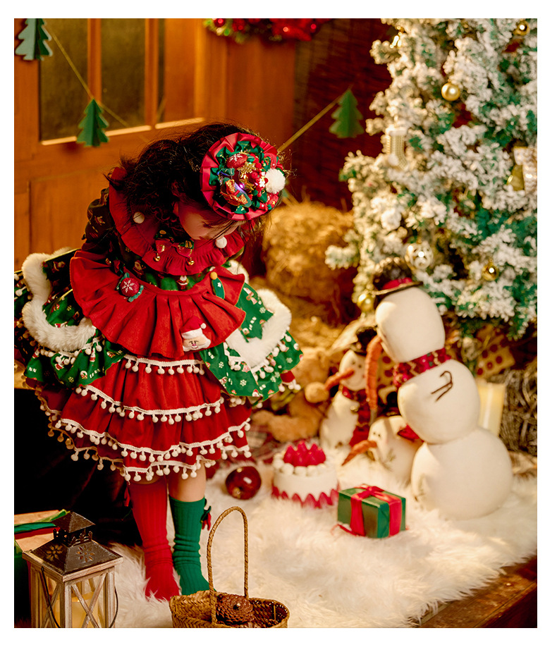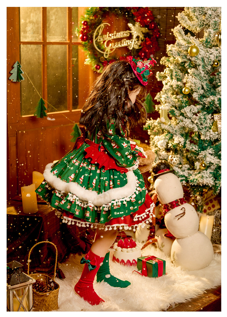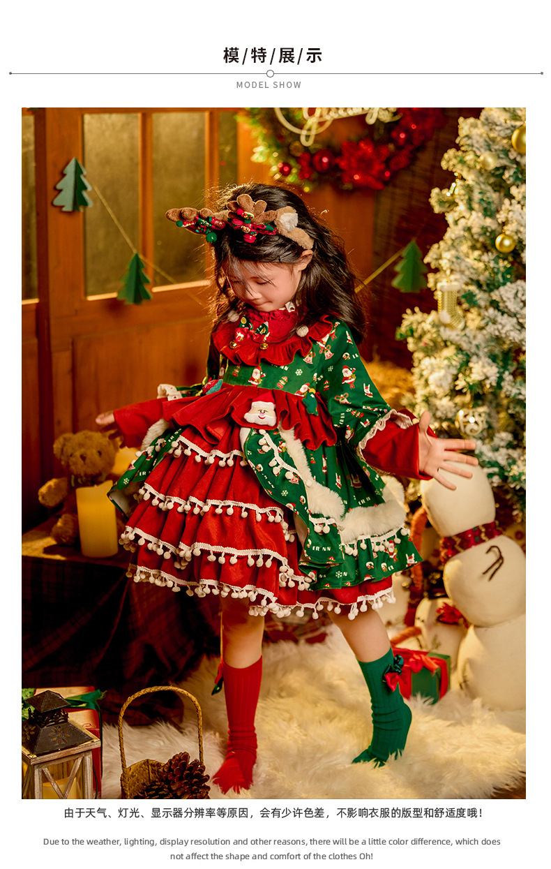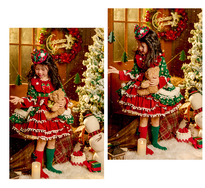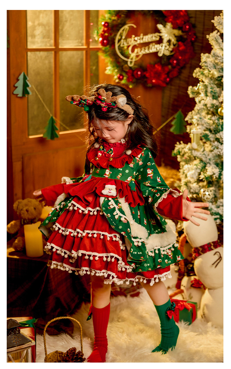 2024 새로운 소녀 원피스 가을 겨울 크리스마스 어린이 로리타 공주 원피스 양식화 된 여성 보물 원피스