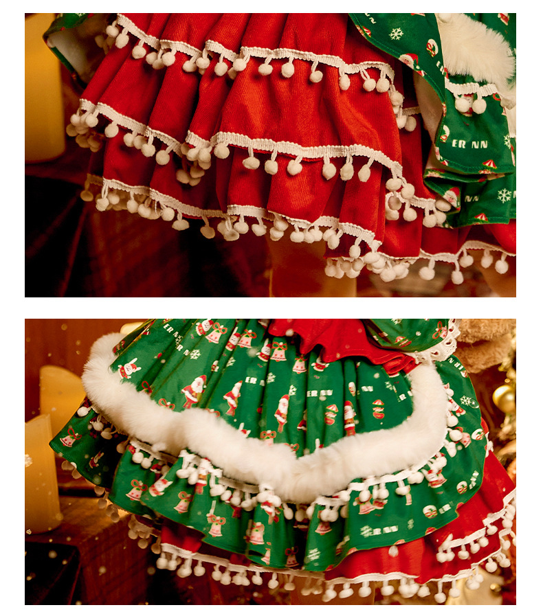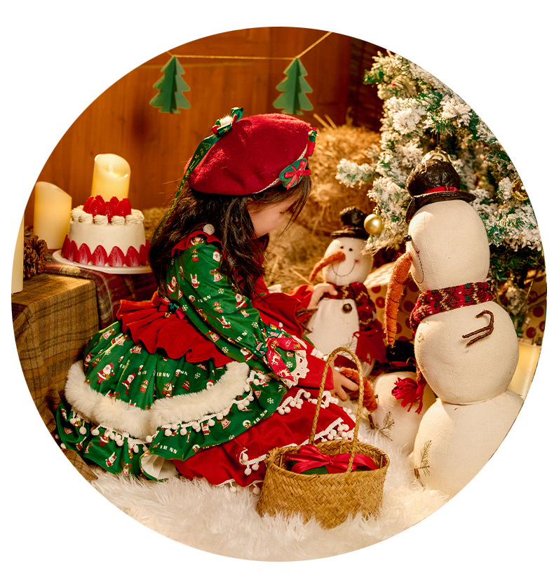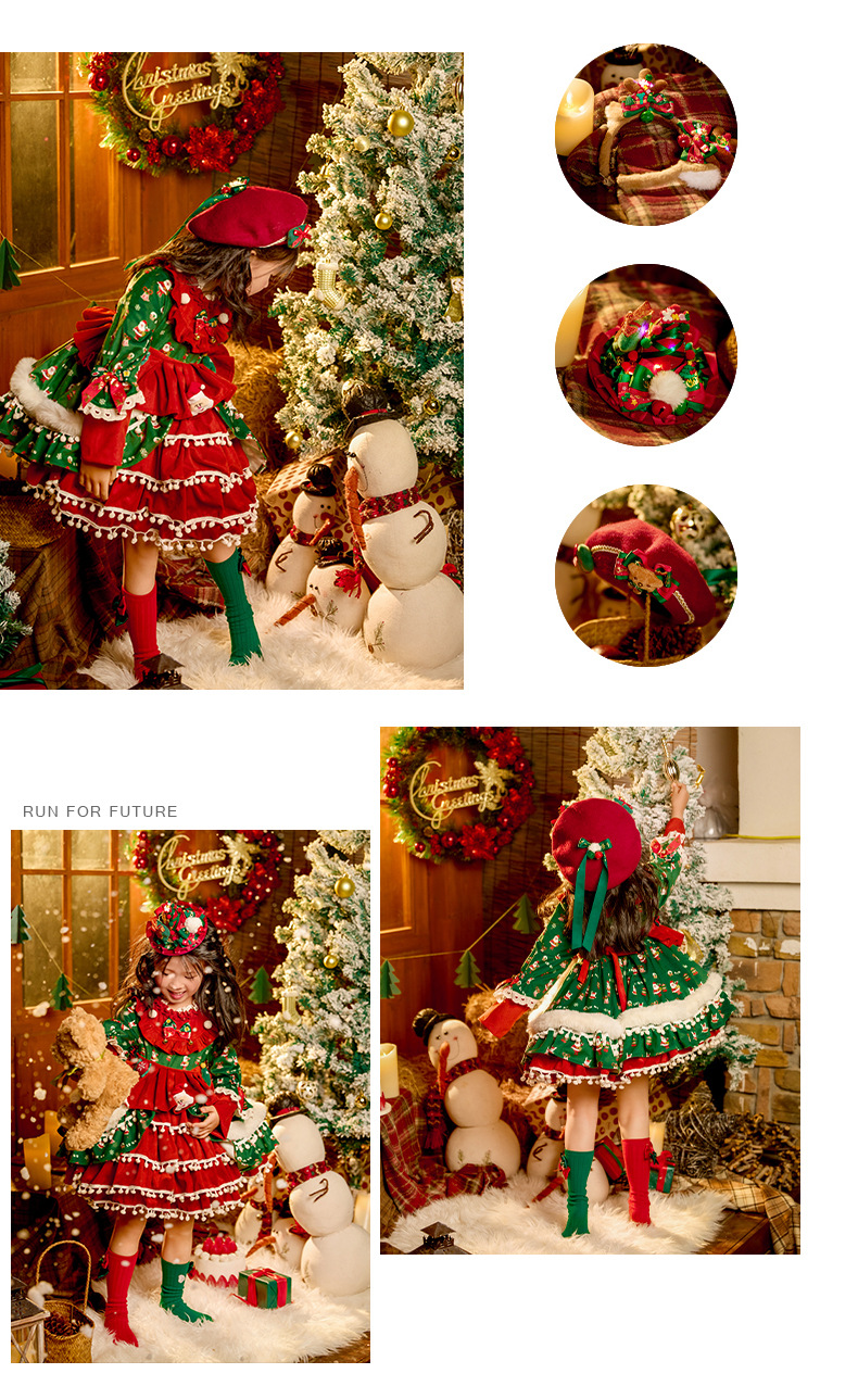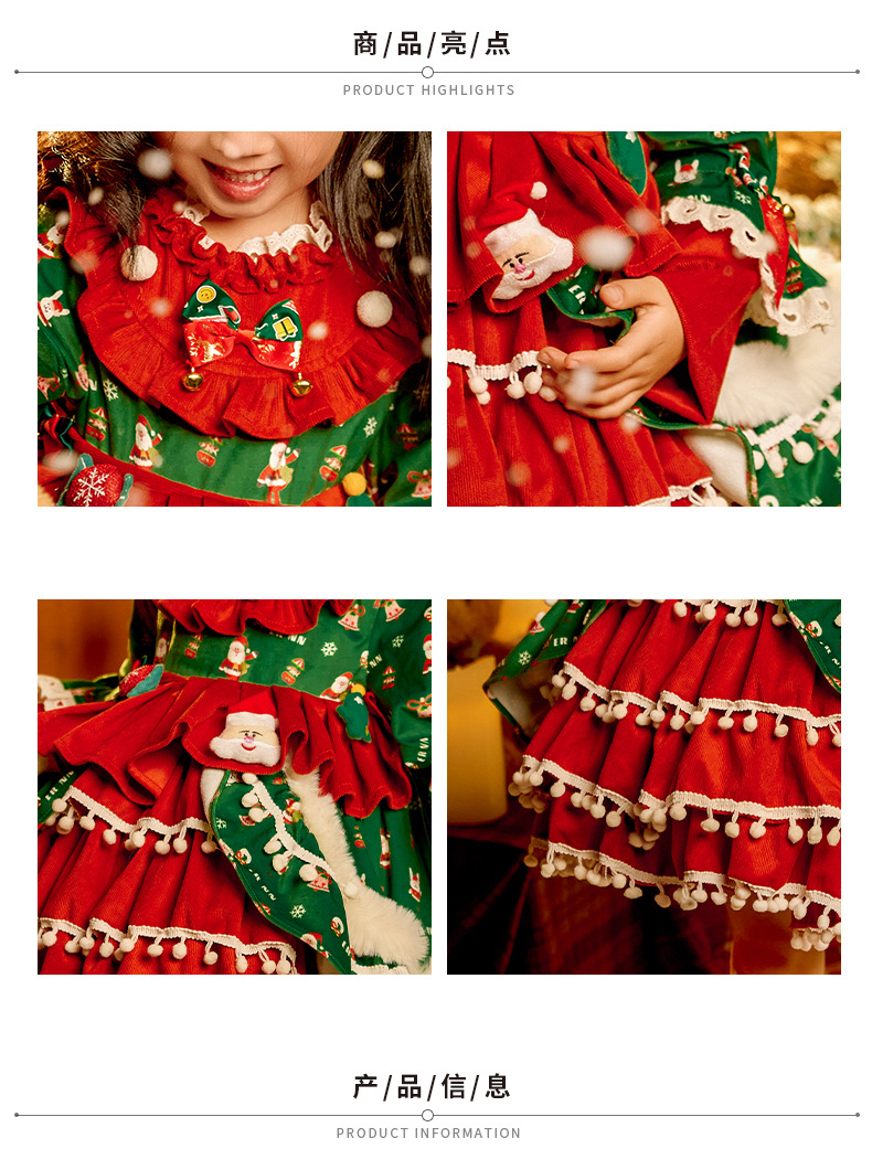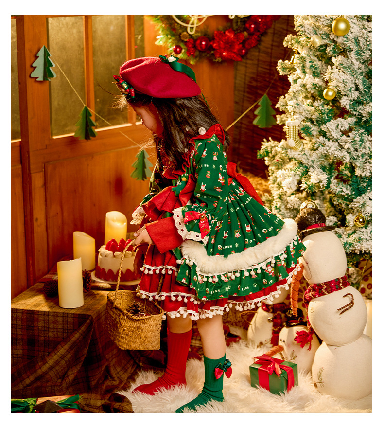 2024 새로운 소녀 원피스 가을 겨울 크리스마스 어린이 로리타 공주 원피스 양식화 된 여성 보물 원피스