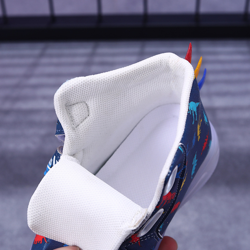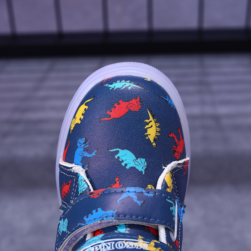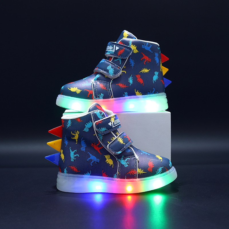 새로운 부츠 소녀 운동화 가죽 다채로운 공룡 LED 빛나는 어린이 신발 1-6 세 소년 스포츠 캐주얼 신발