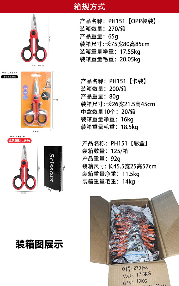 • PH151 빨간색과 검은색 전기 가위 [박스형]