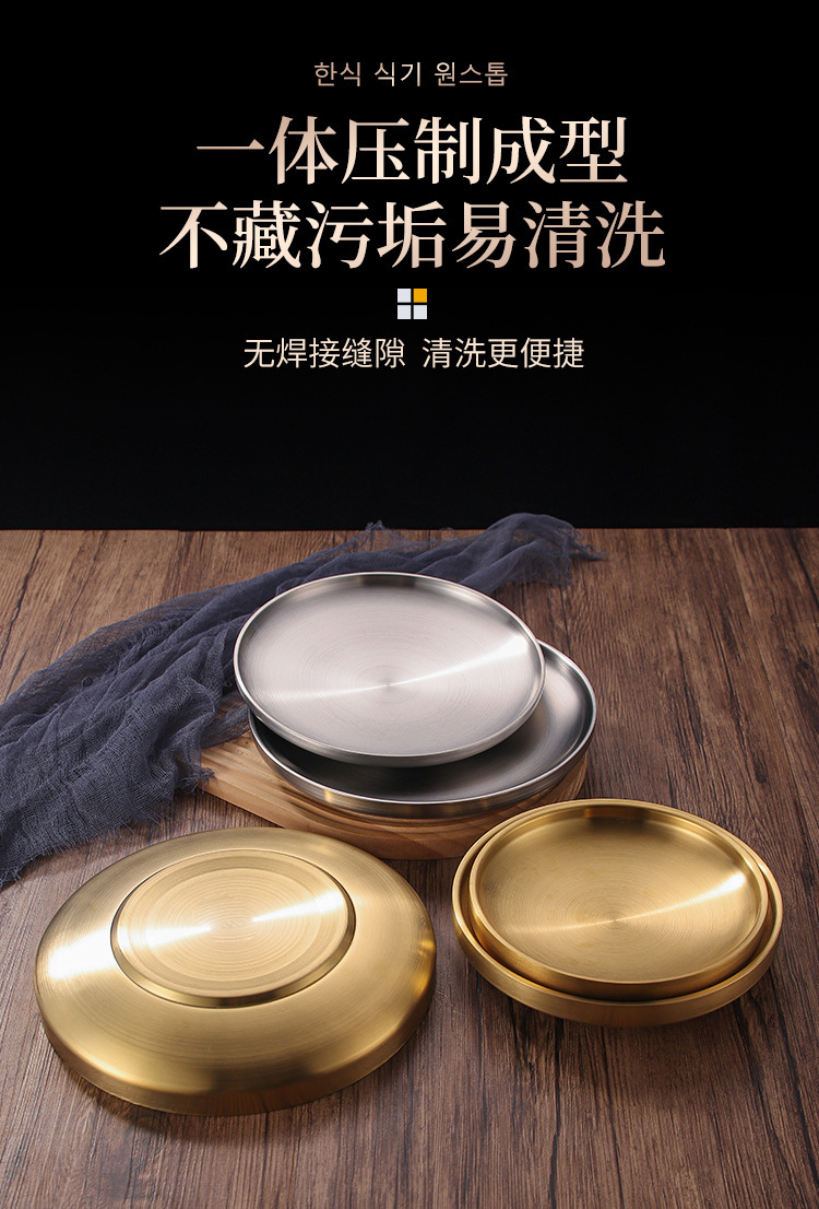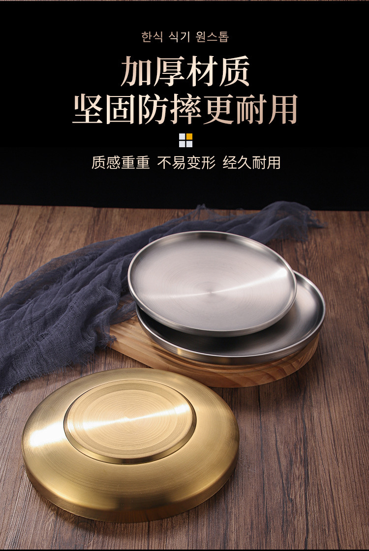 304 스테인레스 스틸 더블 레이어 플레이트 뼈 플레이트 레스토랑 라운드 스테이크 플레이트 웨스턴 플레이트 두껍게 확장 방지 플레이트 매점 플레이트