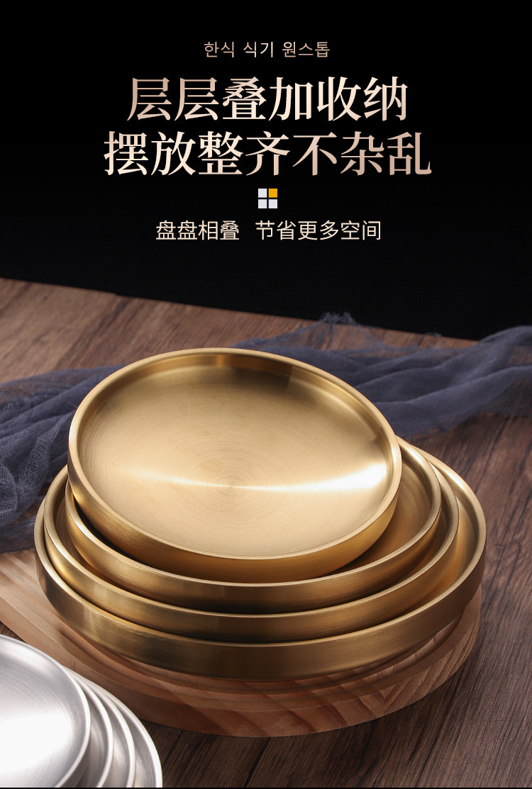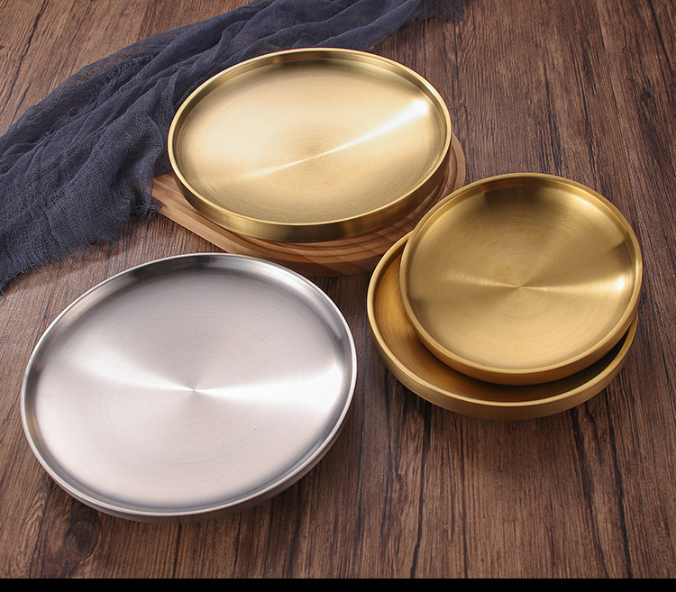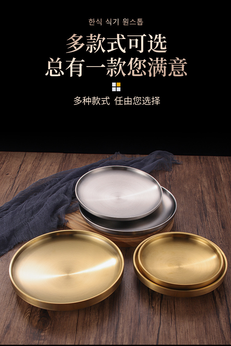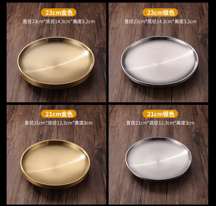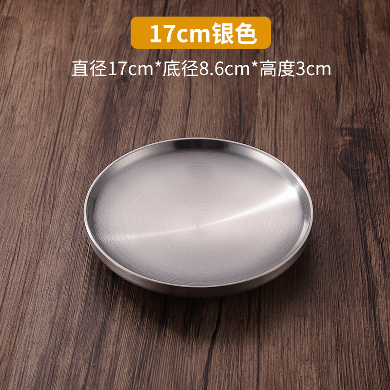 304 스테인레스 스틸 더블 레이어 플레이트 뼈 플레이트 레스토랑 라운드 스테이크 플레이트 웨스턴 플레이트 두껍게 확장 방지 플레이트 매점 플레이트스토어 가기