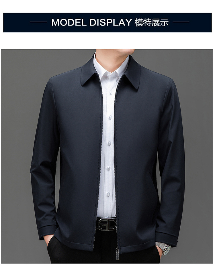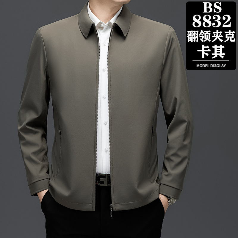 고품질 밀크 실크 자켓 남성 봄 가을 비즈니스 캐주얼 옷깃 자켓 중년 및 노인 아빠를 위한 임원 코트