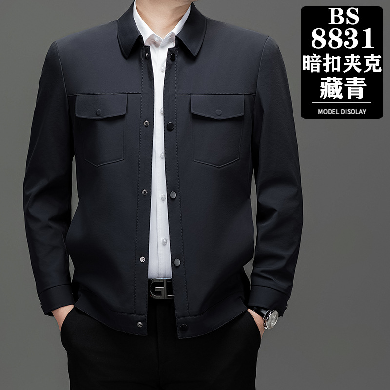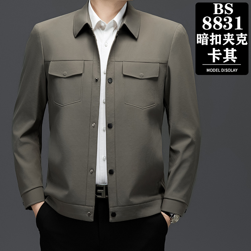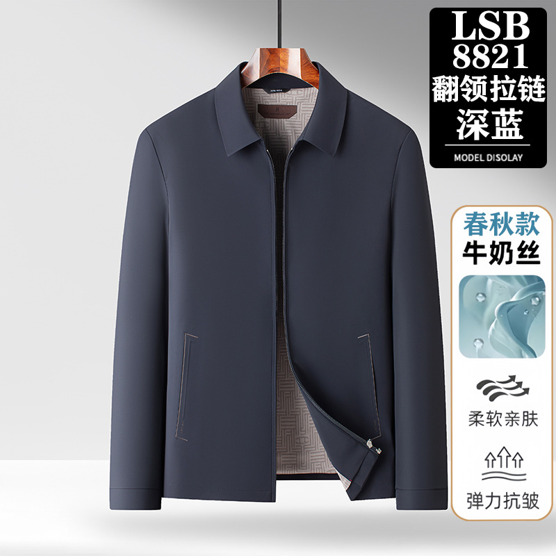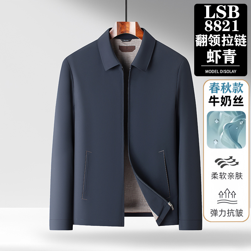 고품질 밀크 실크 자켓 남성 봄 가을 비즈니스 캐주얼 옷깃 자켓 중년 및 노인 아빠를 위한 임원 코트스토어 가기