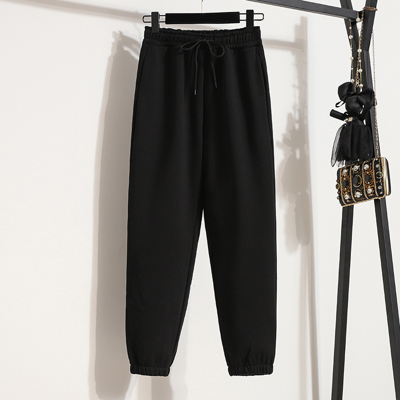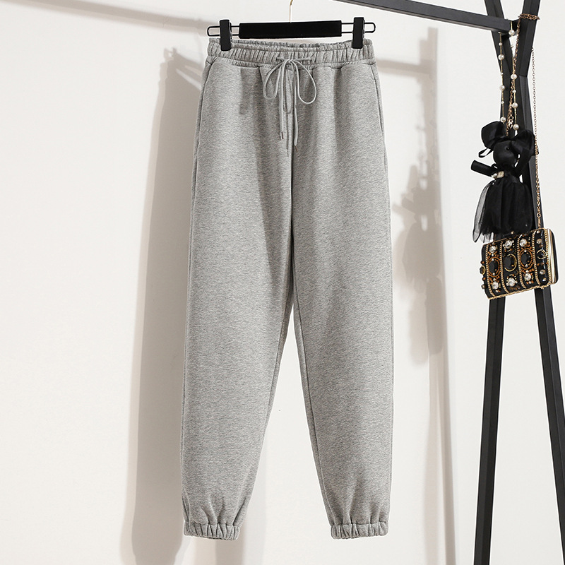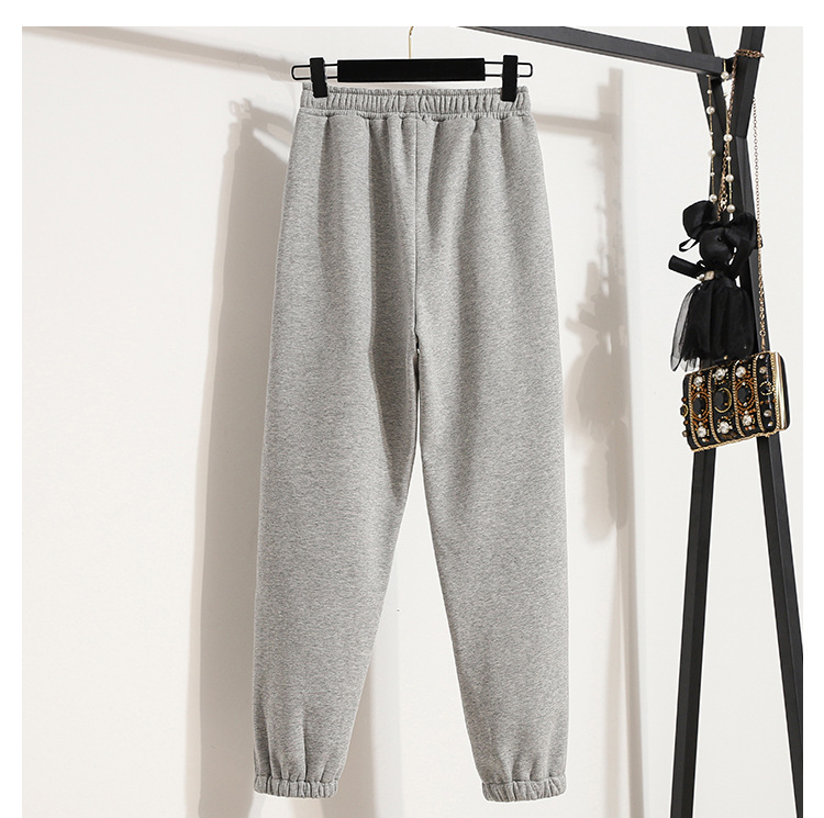 진짜 샷 스포츠 바지 여자의 느슨한 다리 두꺼운 순면 건강 바지 가을과 겨울 학생 소녀의 기모 바지 어린이 가을과 겨울스토어 가기