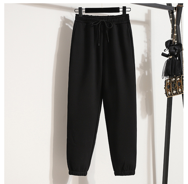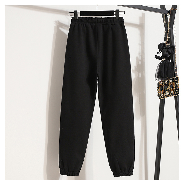 진짜 샷 스포츠 바지 여자의 느슨한 다리 두꺼운 순면 건강 바지 가을과 겨울 학생 소녀의 기모 바지 어린이 가을과 겨울