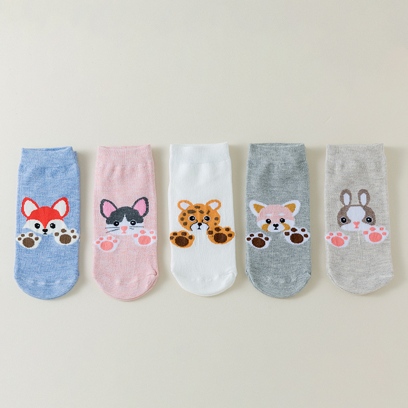 국경 양말 여성의 새로운 귀여운 만화 한국 버전의 동물 손자국 스트레이트 여성 보트 양말 땀 흡수성 통기성 양말 도매