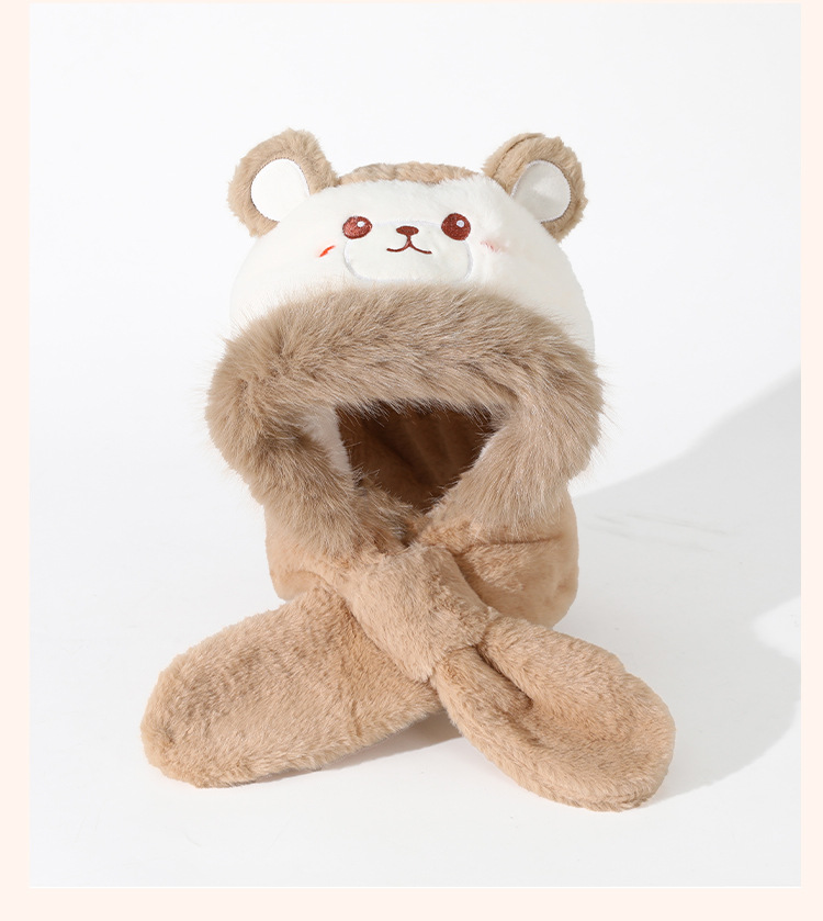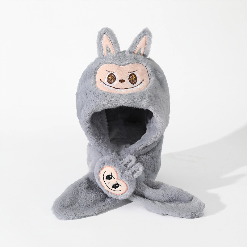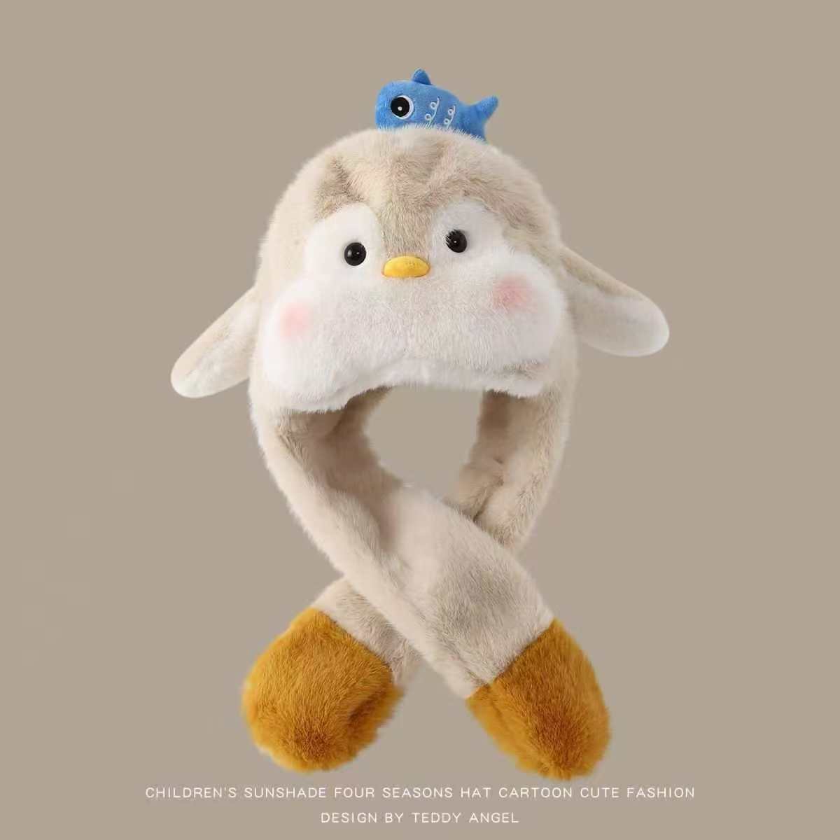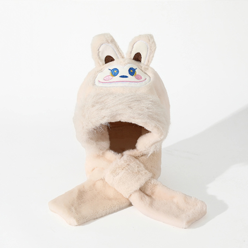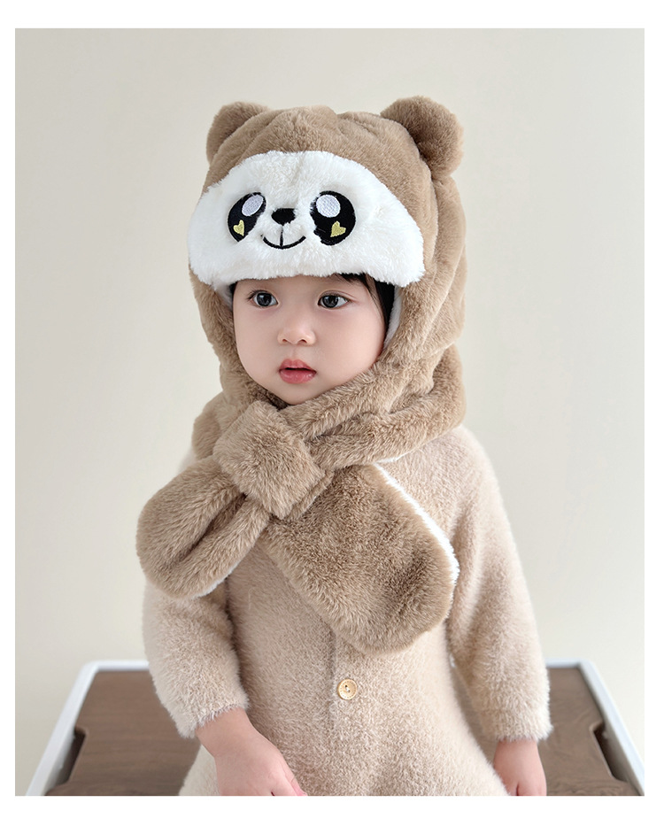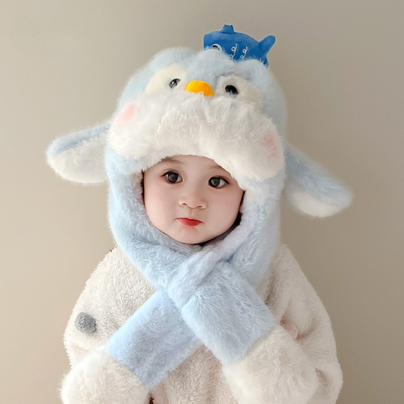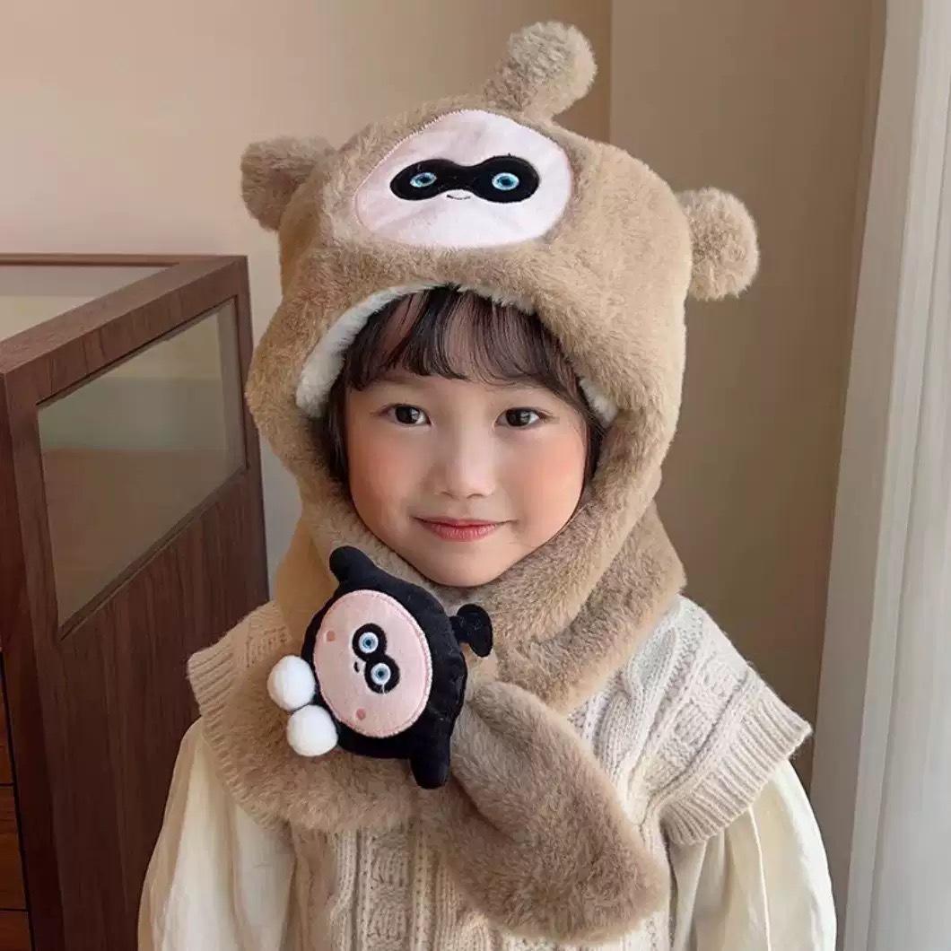 Kulomi 어린이 모자 스카프 올인원 모자 귀여운 귀 보호 모자 소녀 기모 두꺼운 유치원 공주 스타일스토어 가기