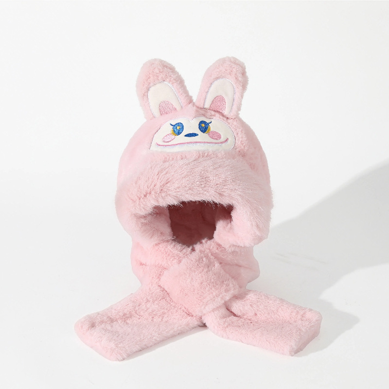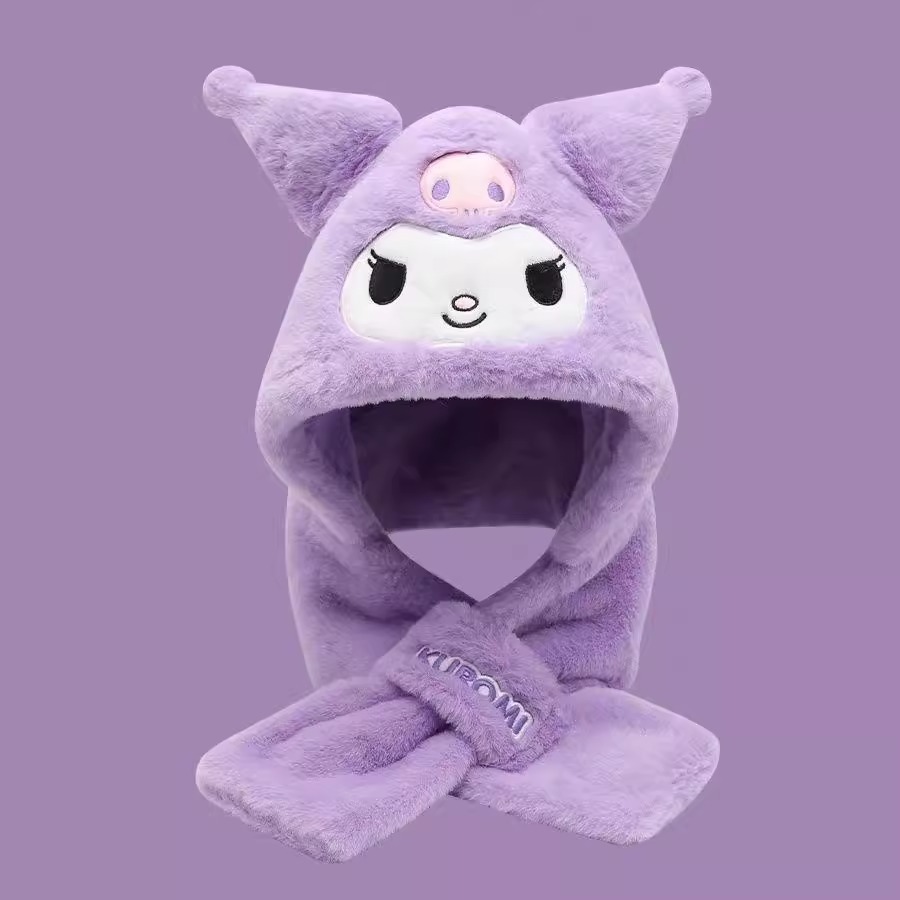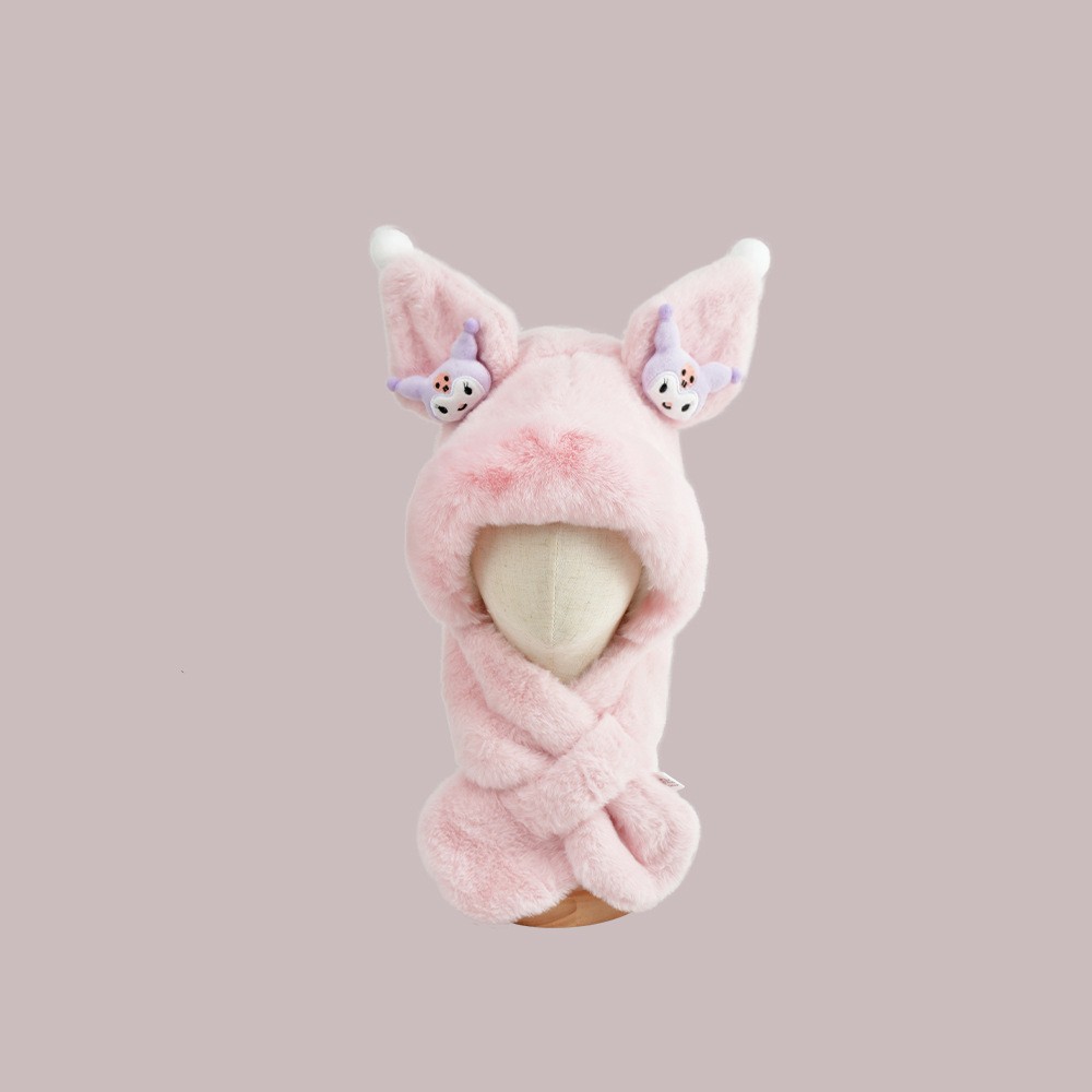 Kulomi 어린이 모자 스카프 올인원 모자 귀여운 귀 보호 모자 소녀 기모 두꺼운 유치원 공주 스타일