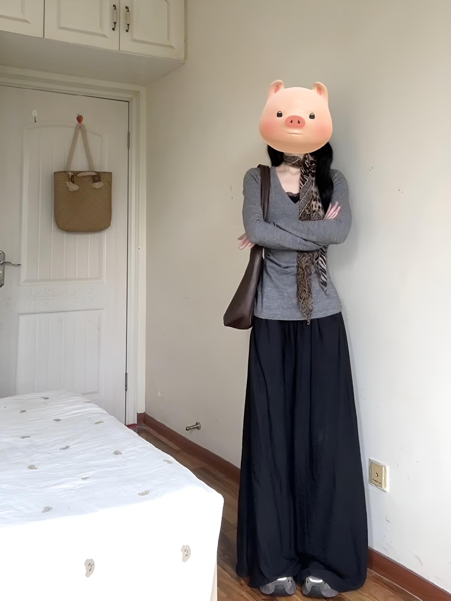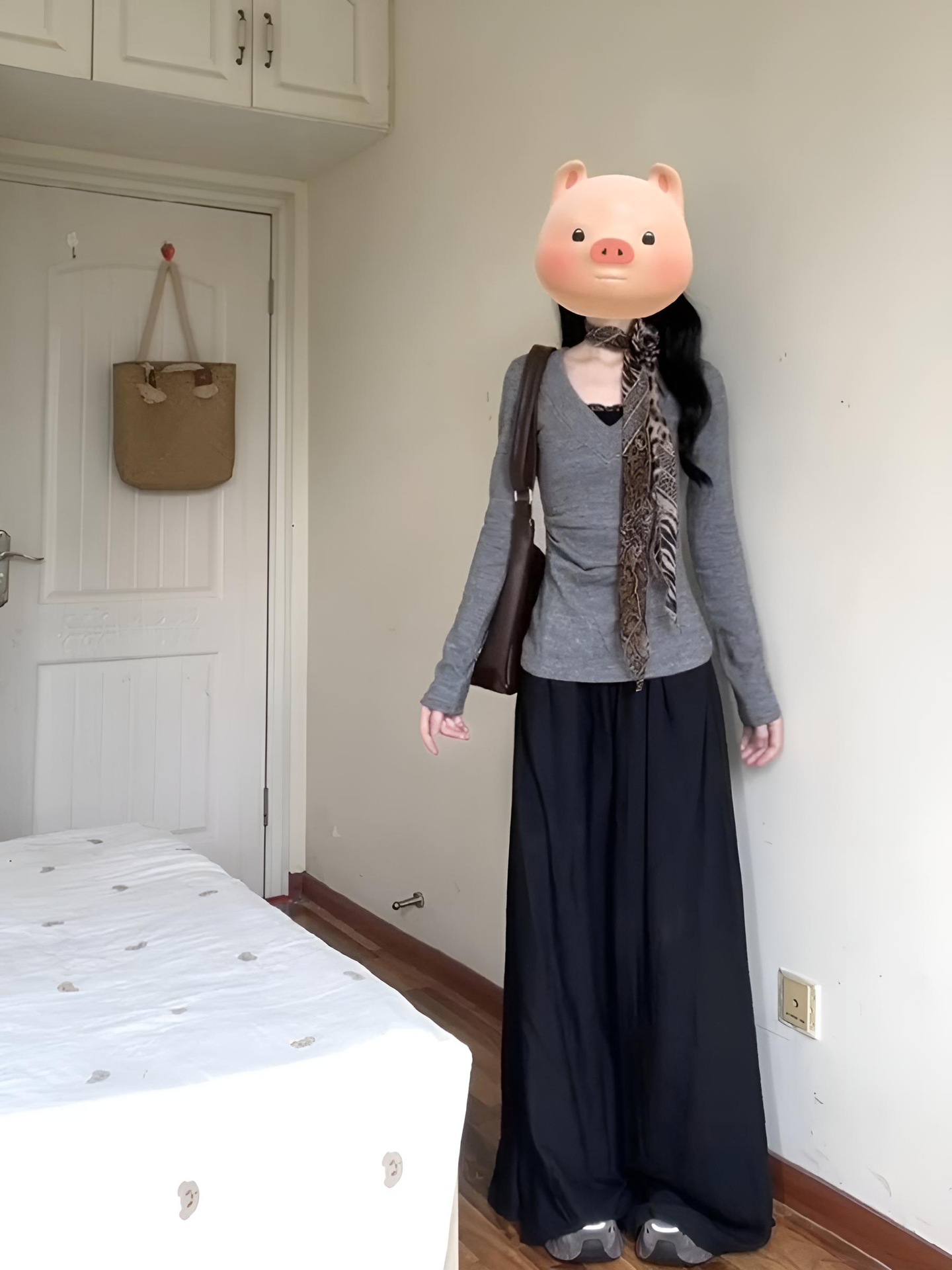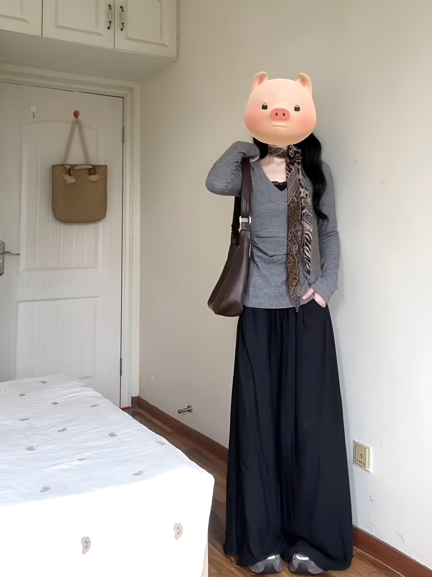 V-Neck 게으른 높은 수준의 긴 소매 스웨터 여성의 2024 가을 착용 캐주얼 다발 넓은 다리 바지
