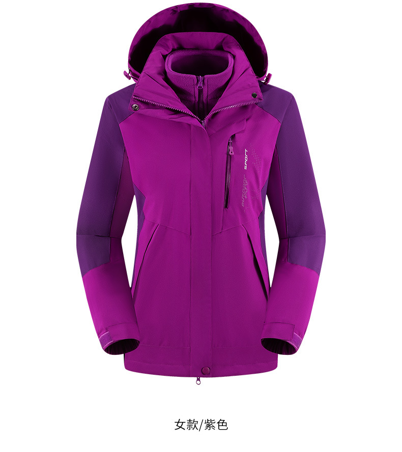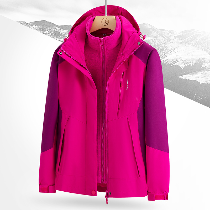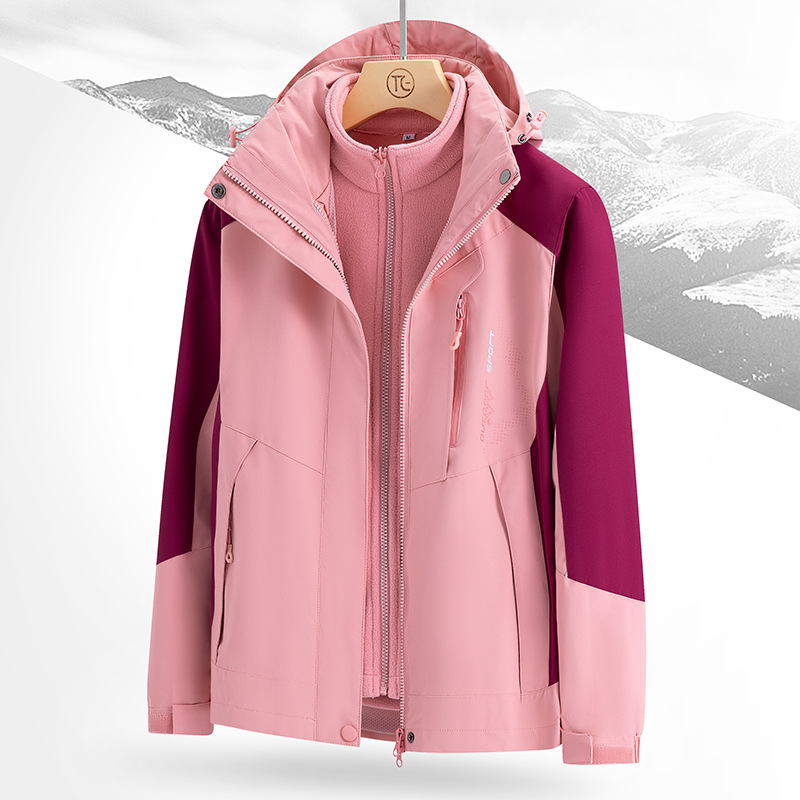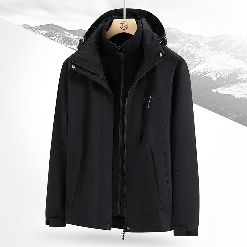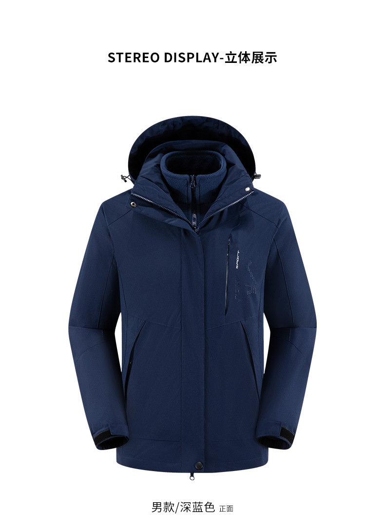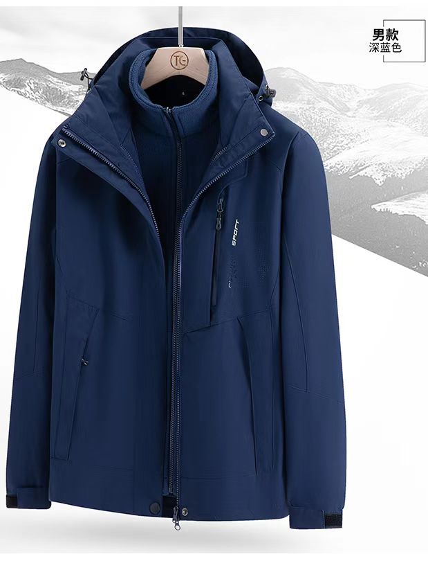 남녀공용 겨울 방풍 재킷, 중년 및 청년용 플리스 안감 삼중 기능 탈부착 가능 고급 등산복스토어 가기