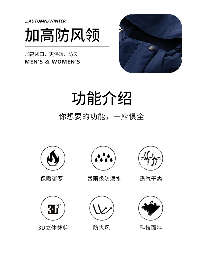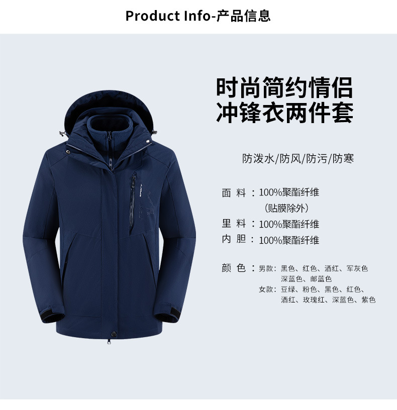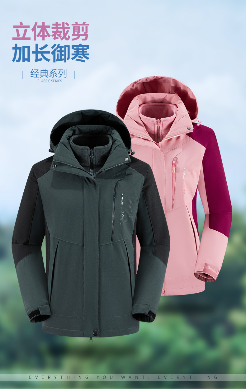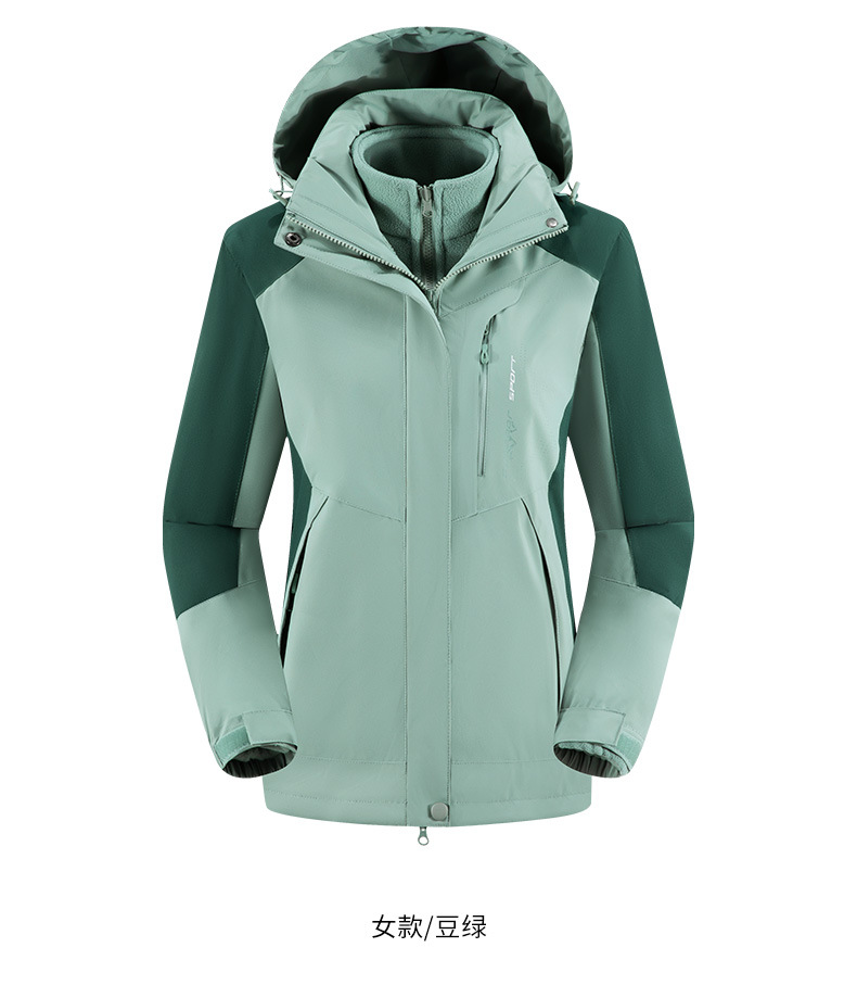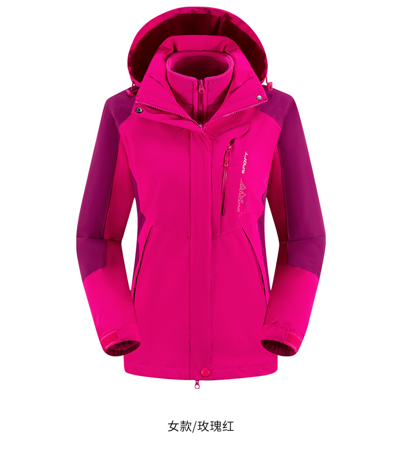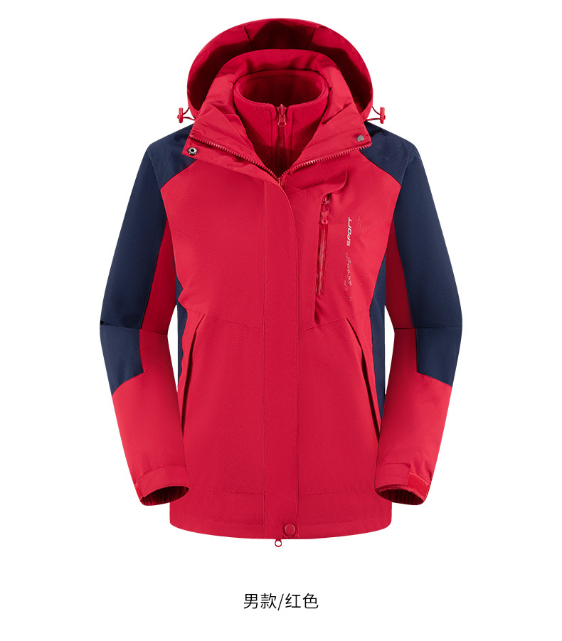 남녀공용 겨울 방풍 재킷, 중년 및 청년용 플리스 안감 삼중 기능 탈부착 가능 고급 등산복스토어 가기