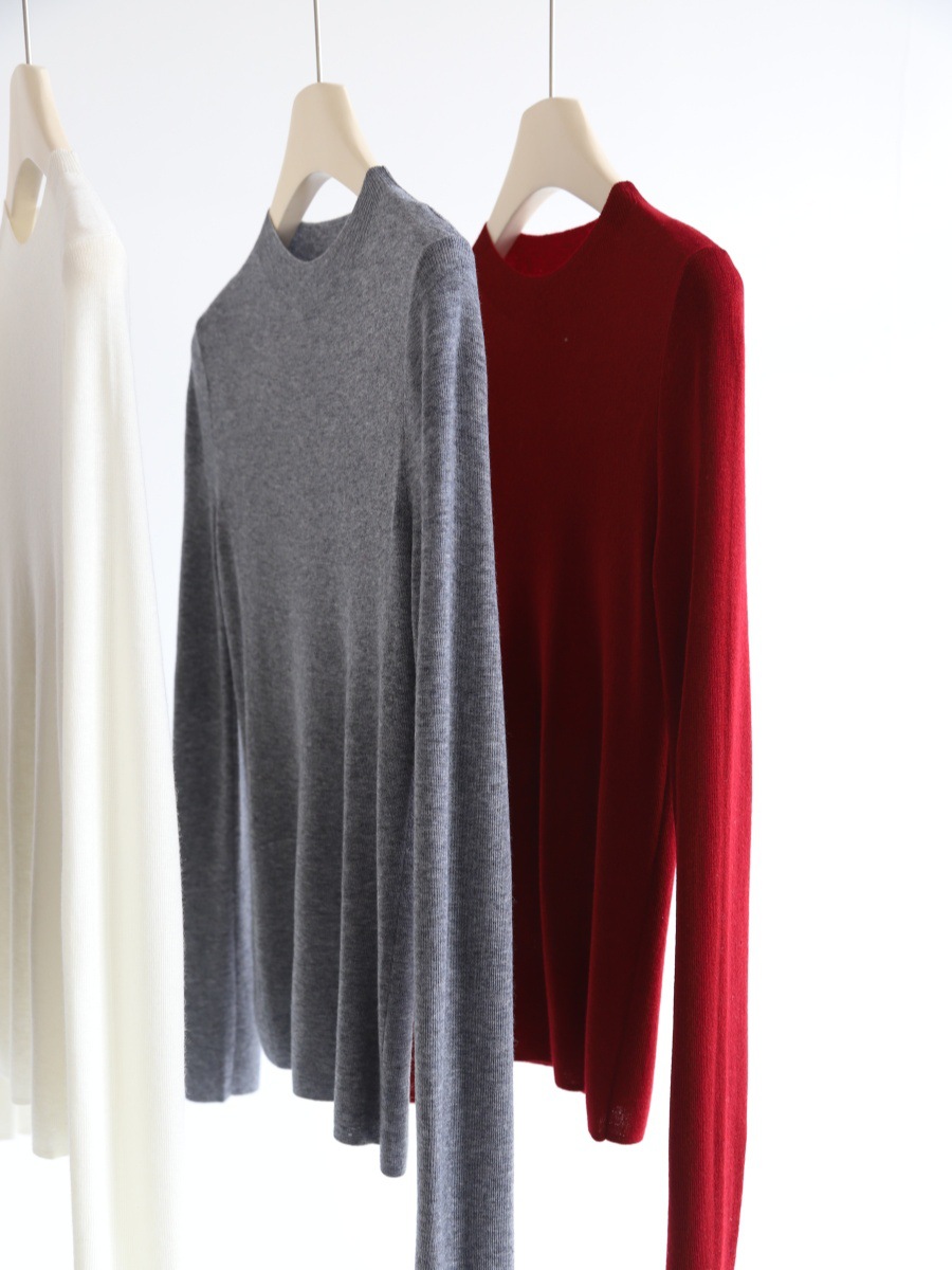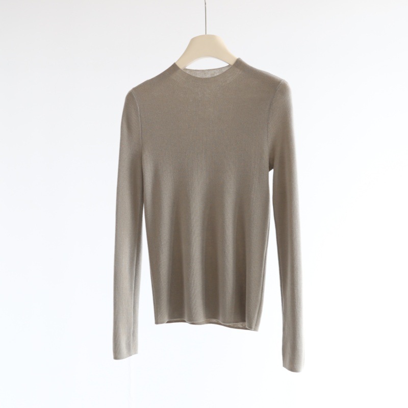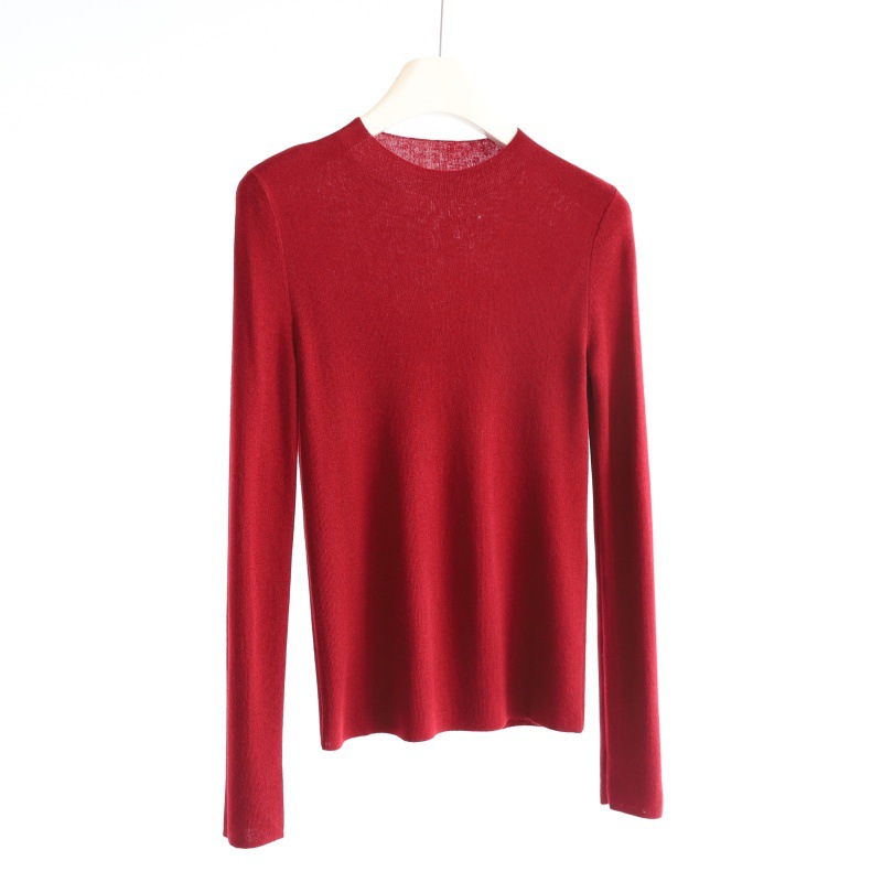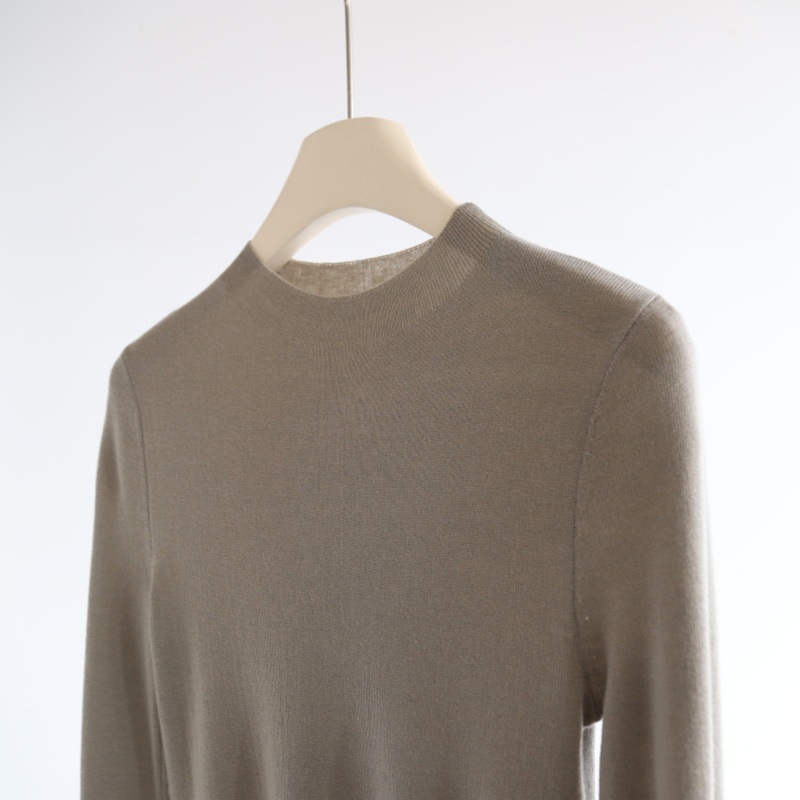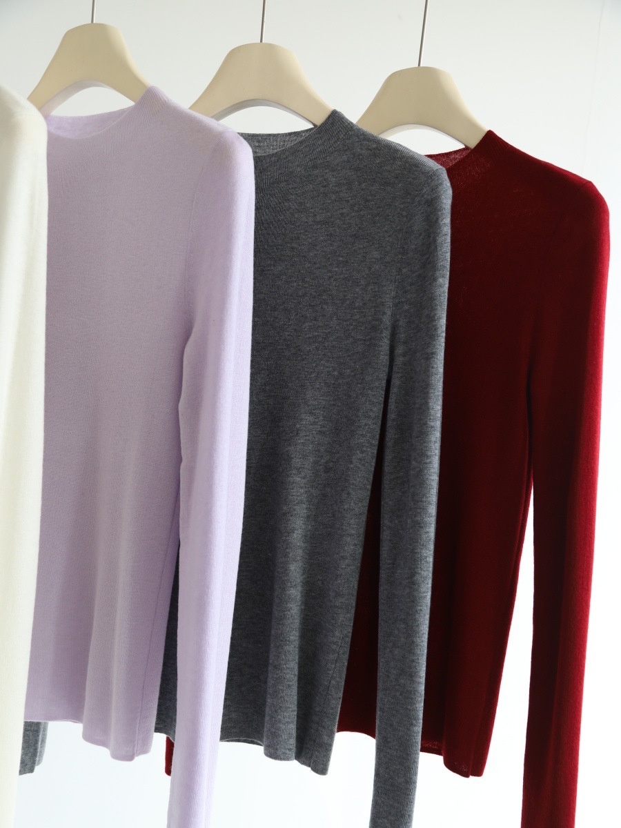 16 핀 33 고급 울 스웨터 사이핑 세미 하이 칼라베이스 셔츠 슬림 핏 여성용 가을과 겨울 인테리어 긴 소매 탑