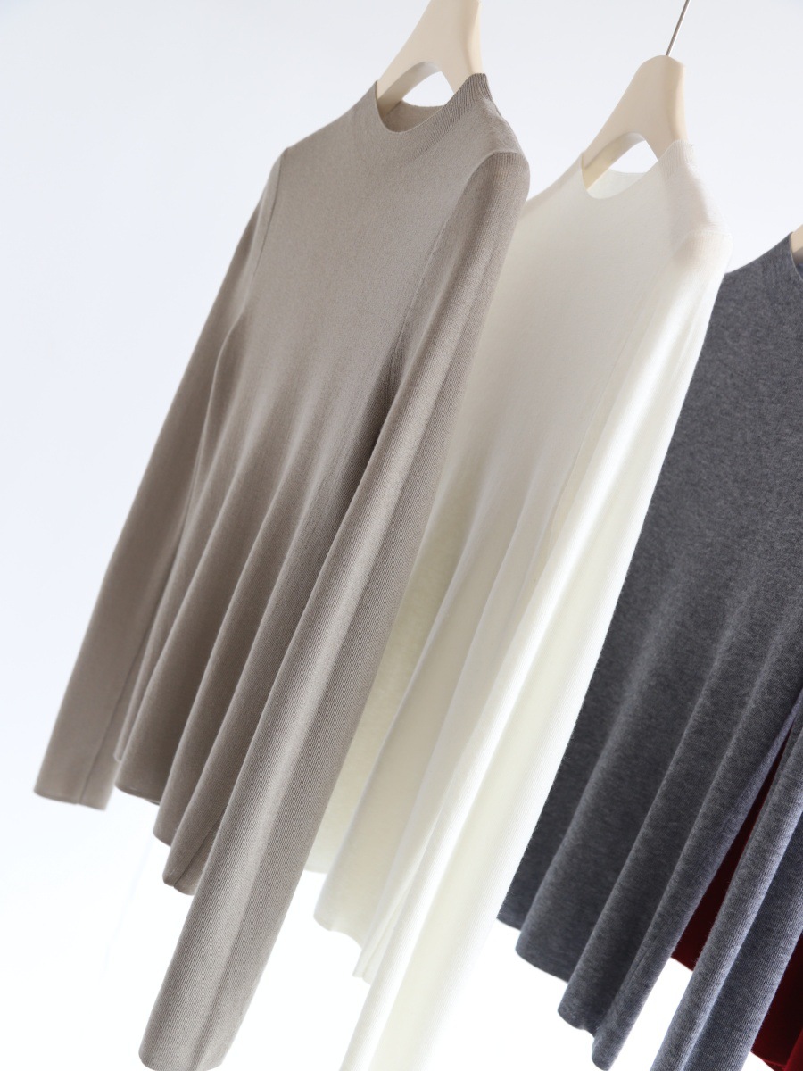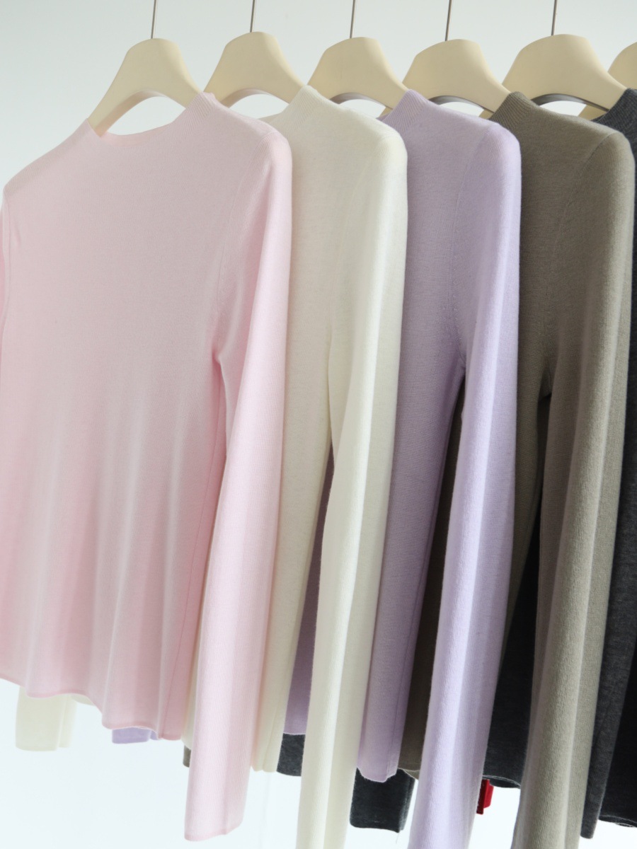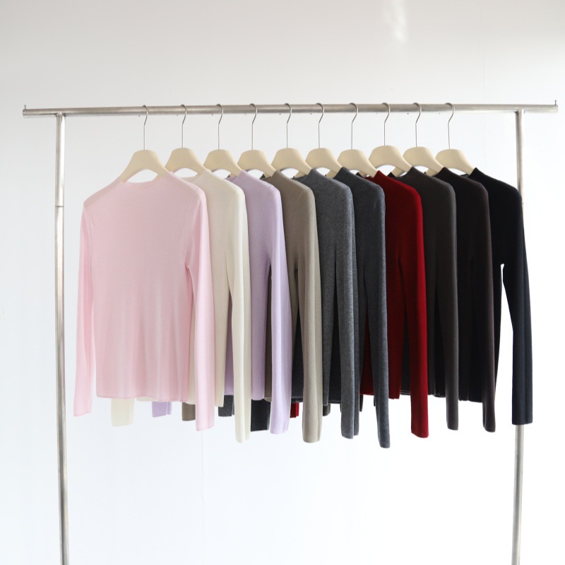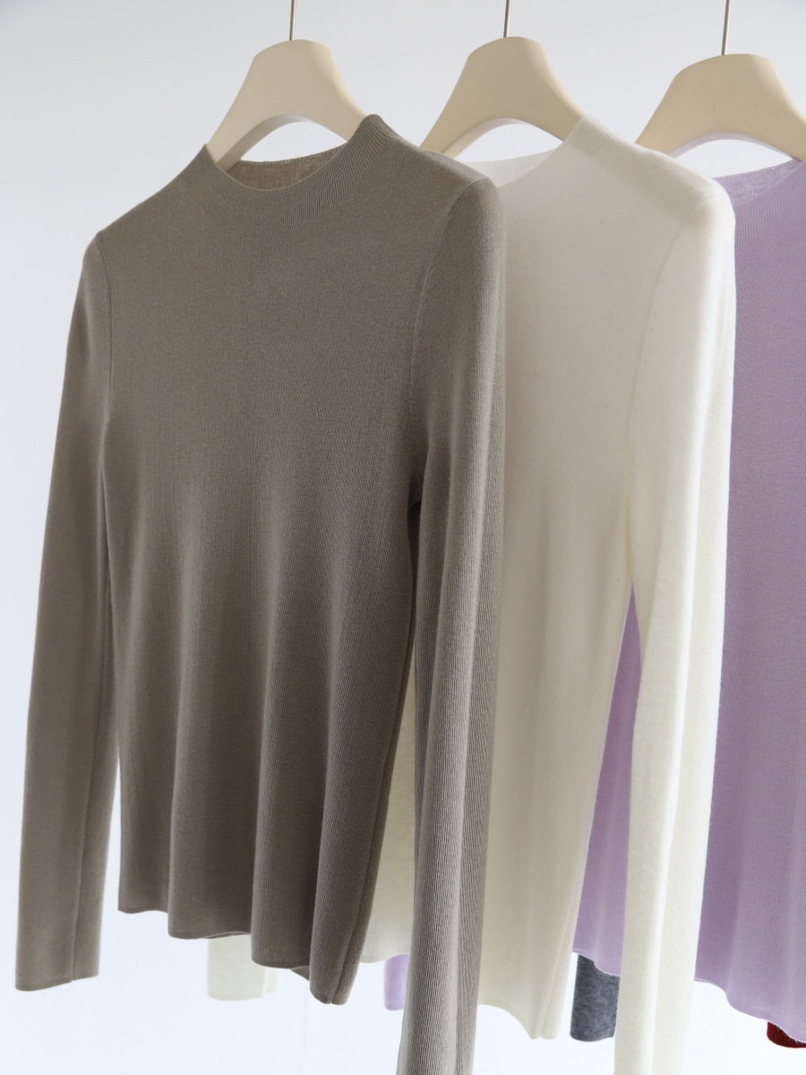 16 핀 33 고급 울 스웨터 사이핑 세미 하이 칼라베이스 셔츠 슬림 핏 여성용 가을과 겨울 인테리어 긴 소매 탑