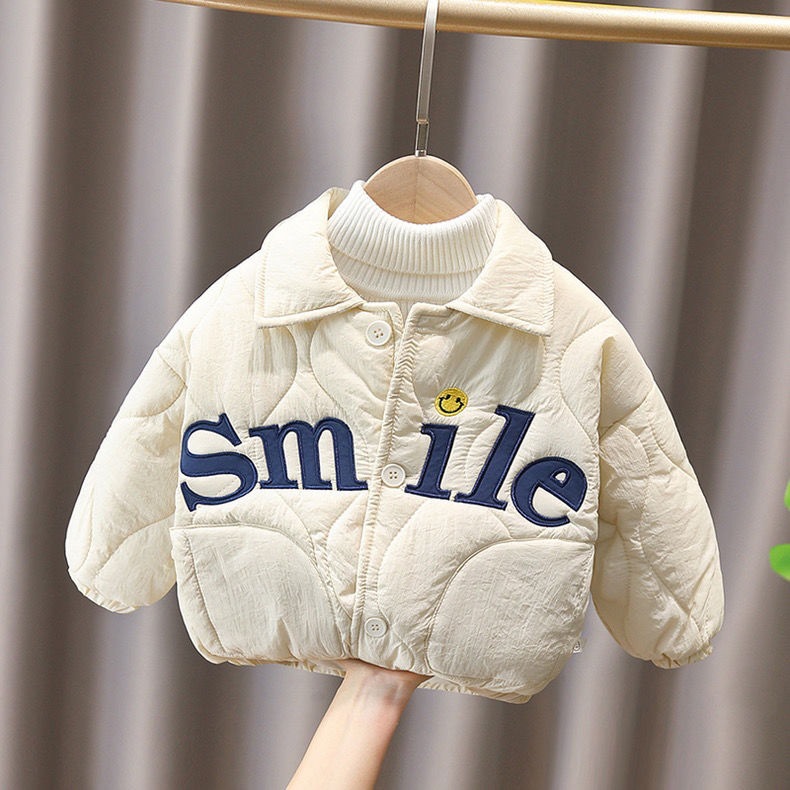 어린이 편지 스마일리 두꺼운 코트 소년 소녀 가을 및 겨울 새 옷 아기 면 코트 재킷 어린이 면 야구 세트