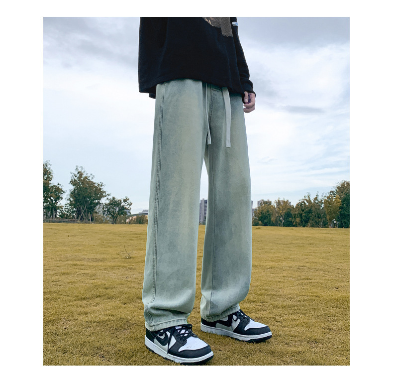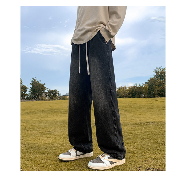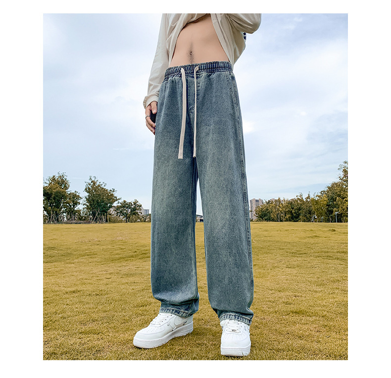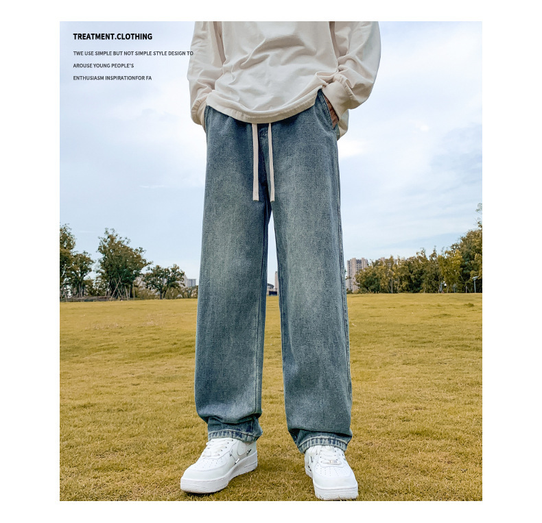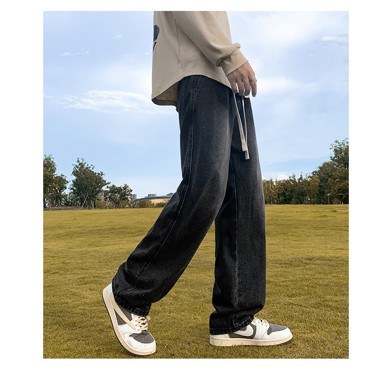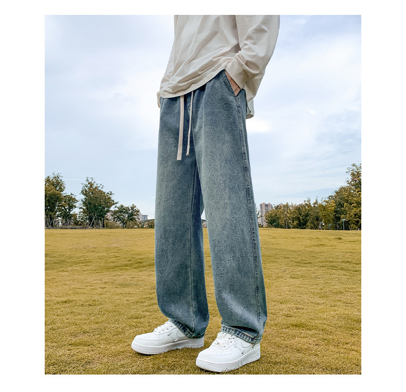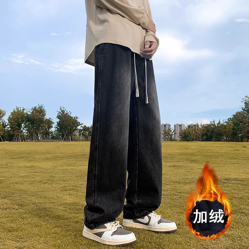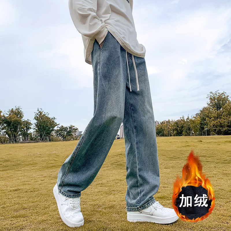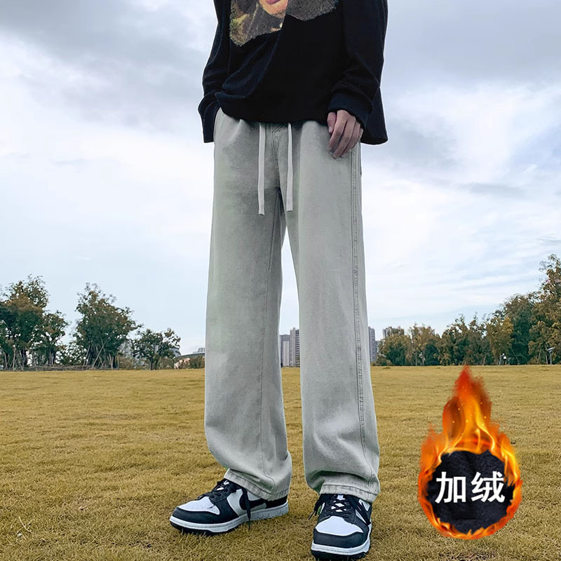 청바지 남자의 새로운 느슨한 바지 가을과 겨울 기모 캐주얼 하이 스트리트 미국 남자 스트레이트 바지 봄과 가을 바지