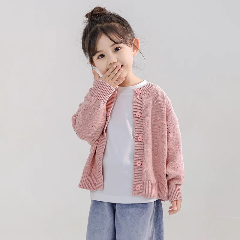 소녀의 핑크 작은 꽃 카디건 스웨터 코트 봄과 가을 얇은 2024 새로운 스타일 소녀의 보물 스웨터스토어 가기