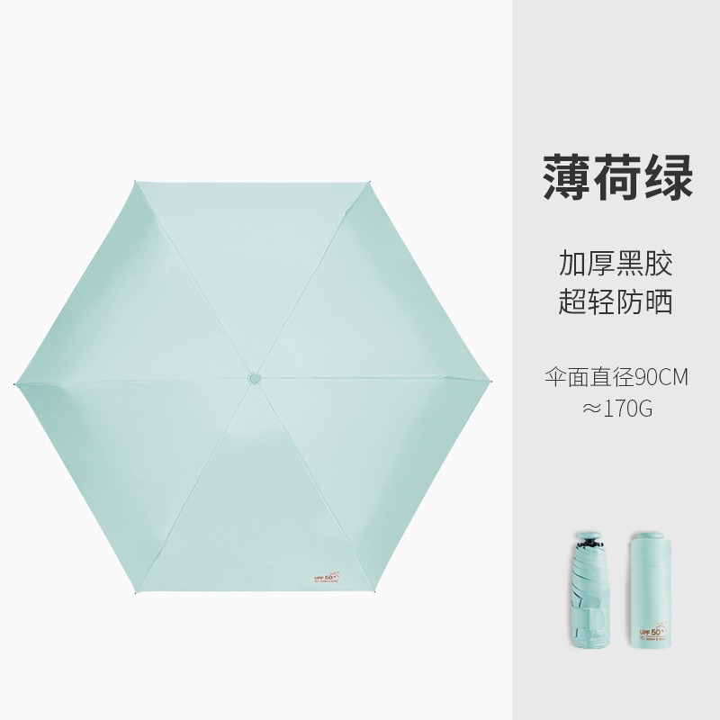 울트라 라이트 50% 접힌 미니 우산 블랙 고무 선 스크린 우산 자외선 보호 햇살 우산 엄지 우산 맑고 비 이중 사용 태양 우산
