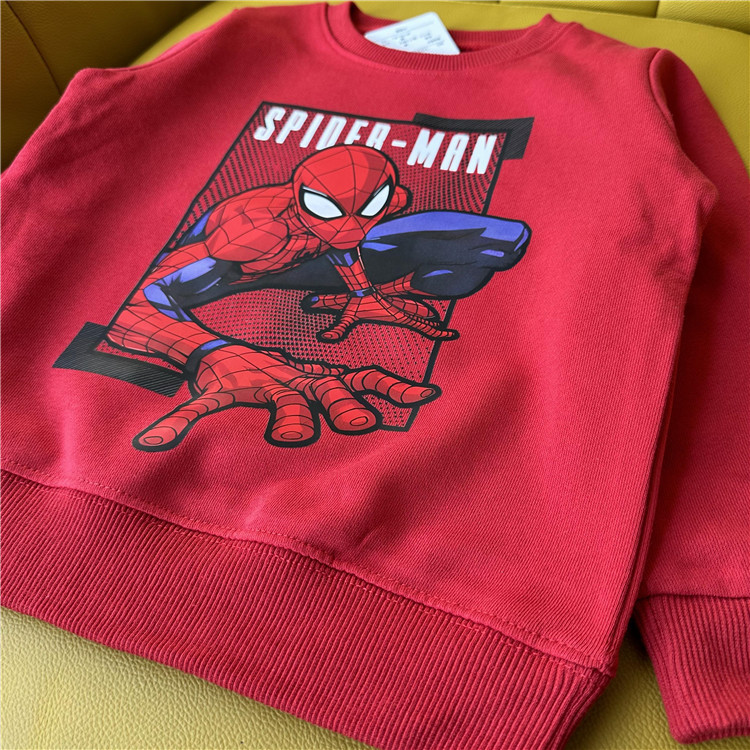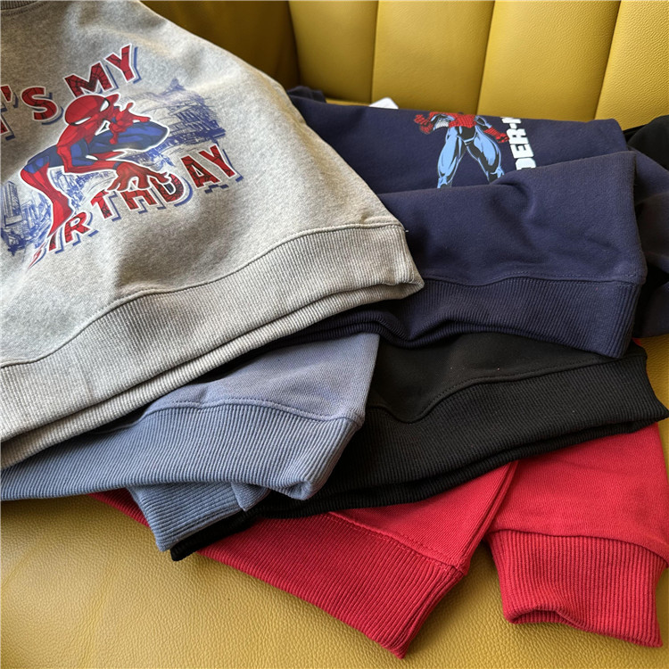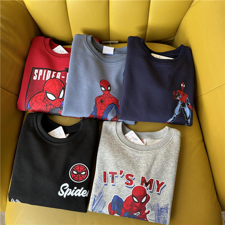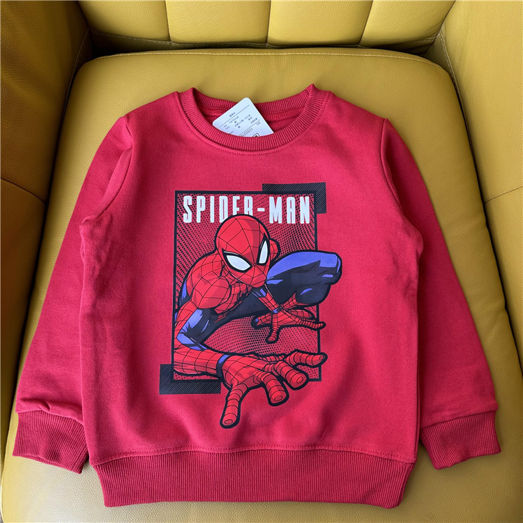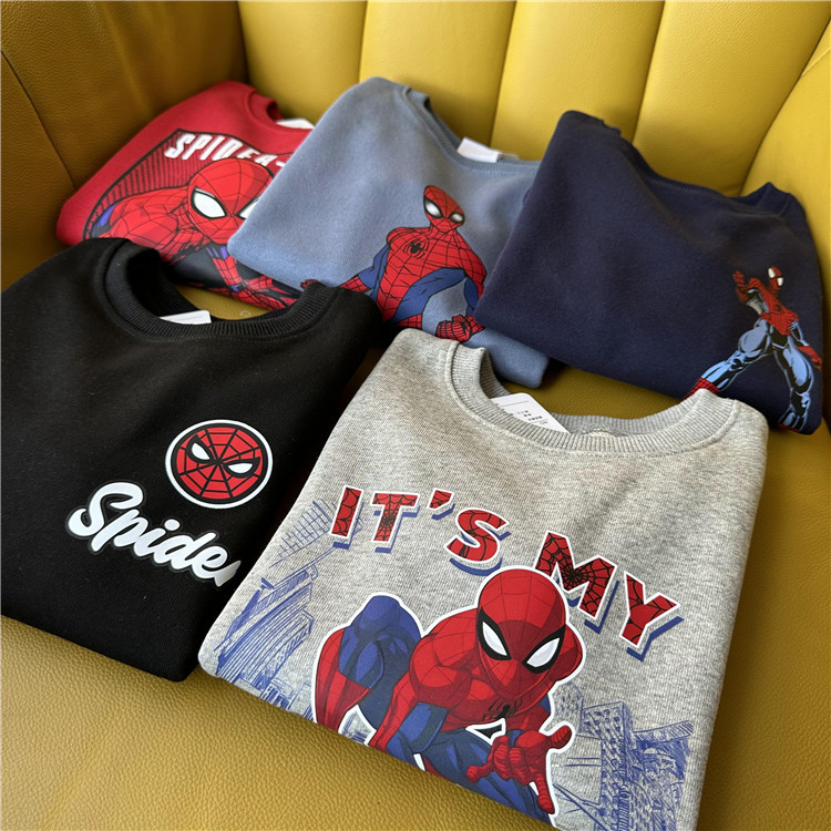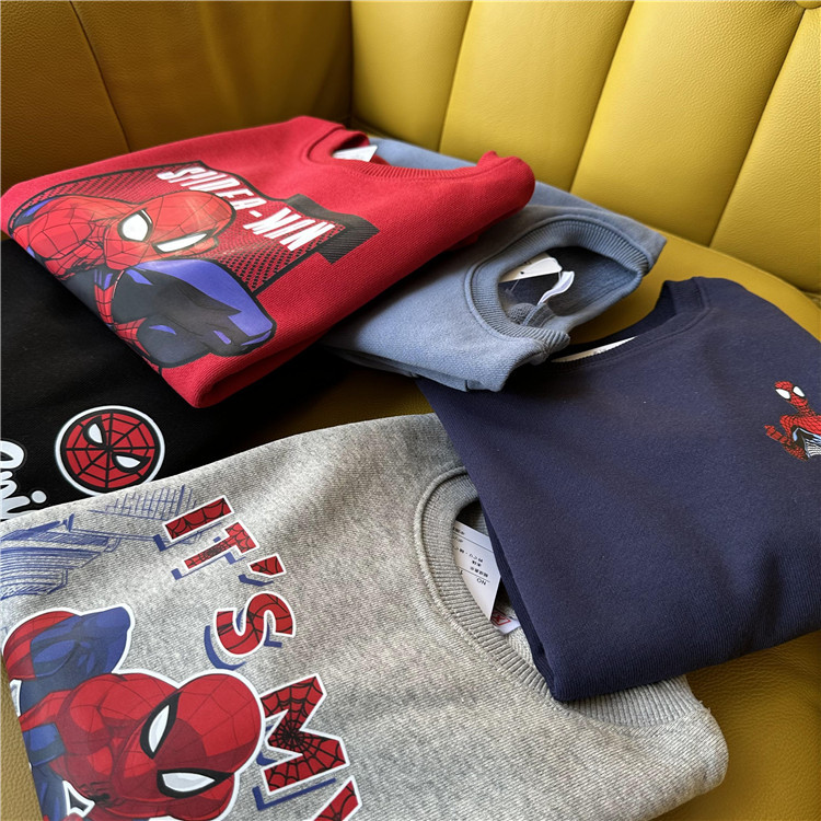 日单外贸卡通英雄蜘蛛侠系列童装毛圈套头卫衣