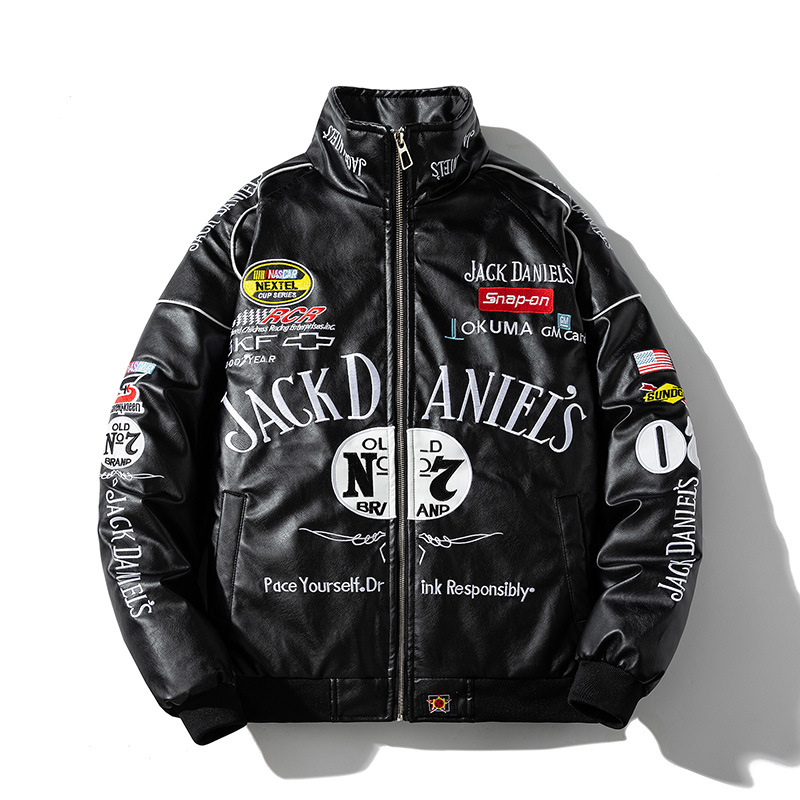 무거운 자수 PU 가죽 자켓 자전거 재킷 남자의 가을과 겨울 퀼트 가죽 자켓 오토바이 가죽 의류 패션스토어 가기
