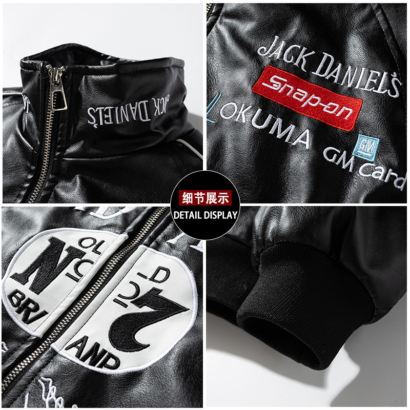 무거운 자수 PU 가죽 자켓 자전거 재킷 남자의 가을과 겨울 퀼트 가죽 자켓 오토바이 가죽 의류 패션