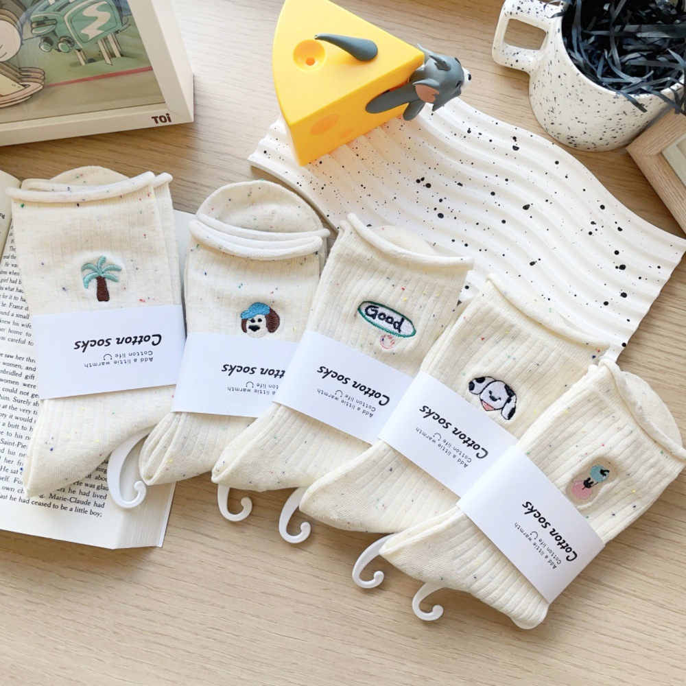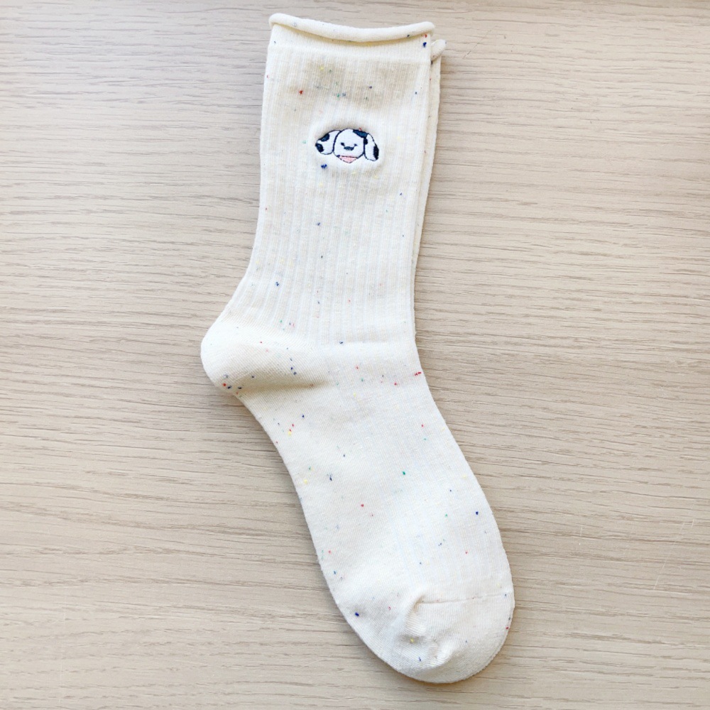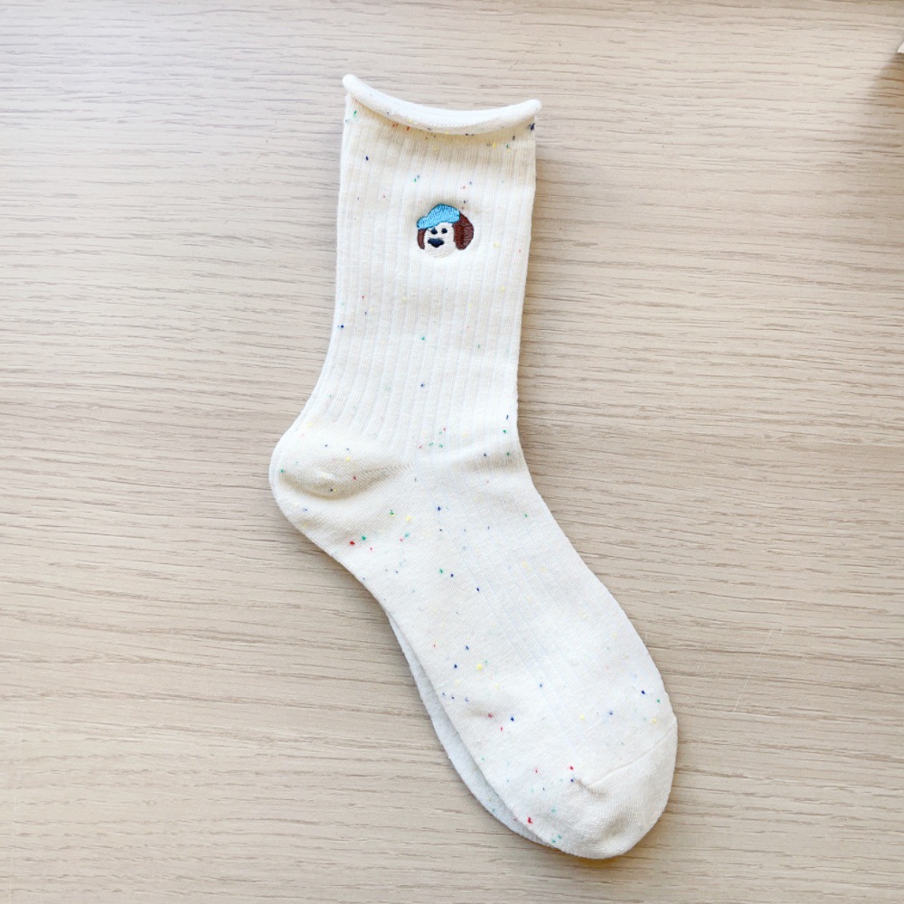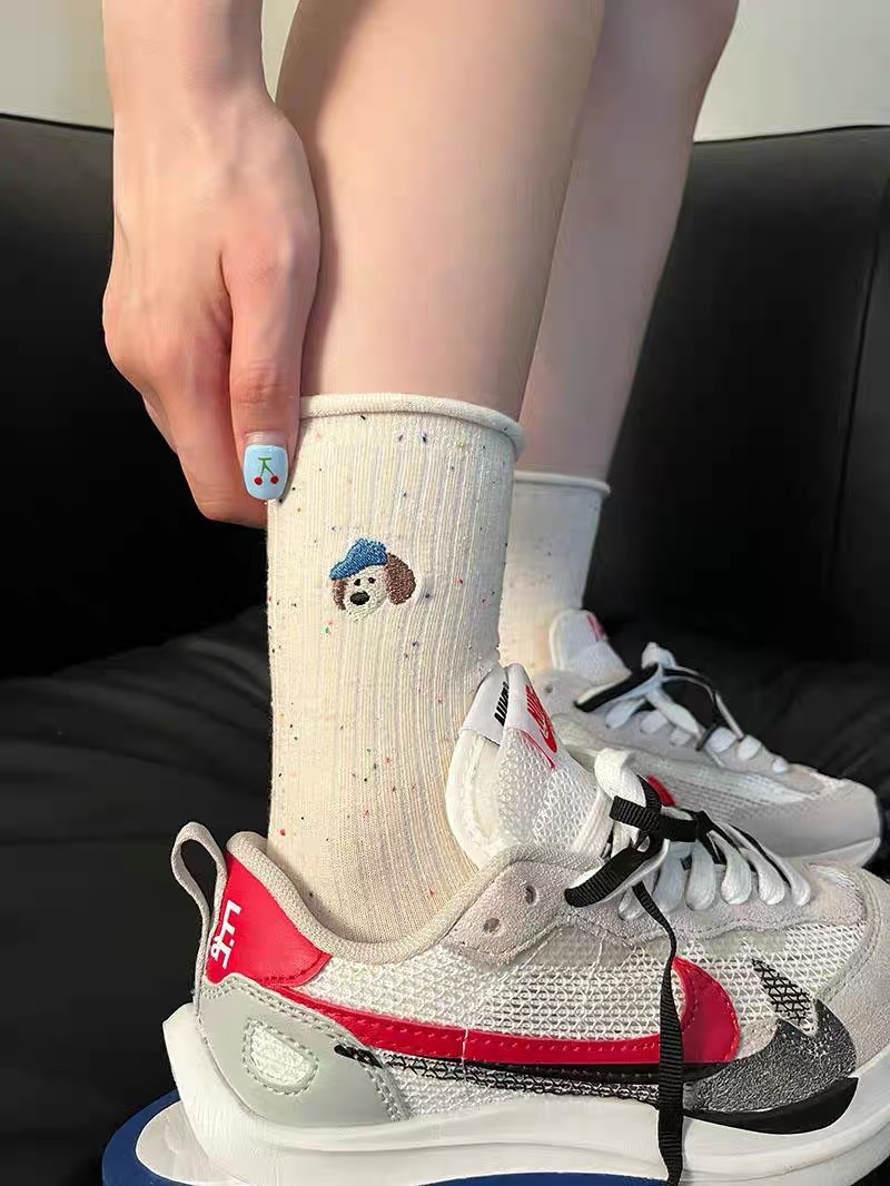 양말 여성의 가을과 겨울 중간 배럴 일본 자수 컬링 도트 강아지 양말 Ins 유행 만화 귀여운 더미 양말스토어 가기