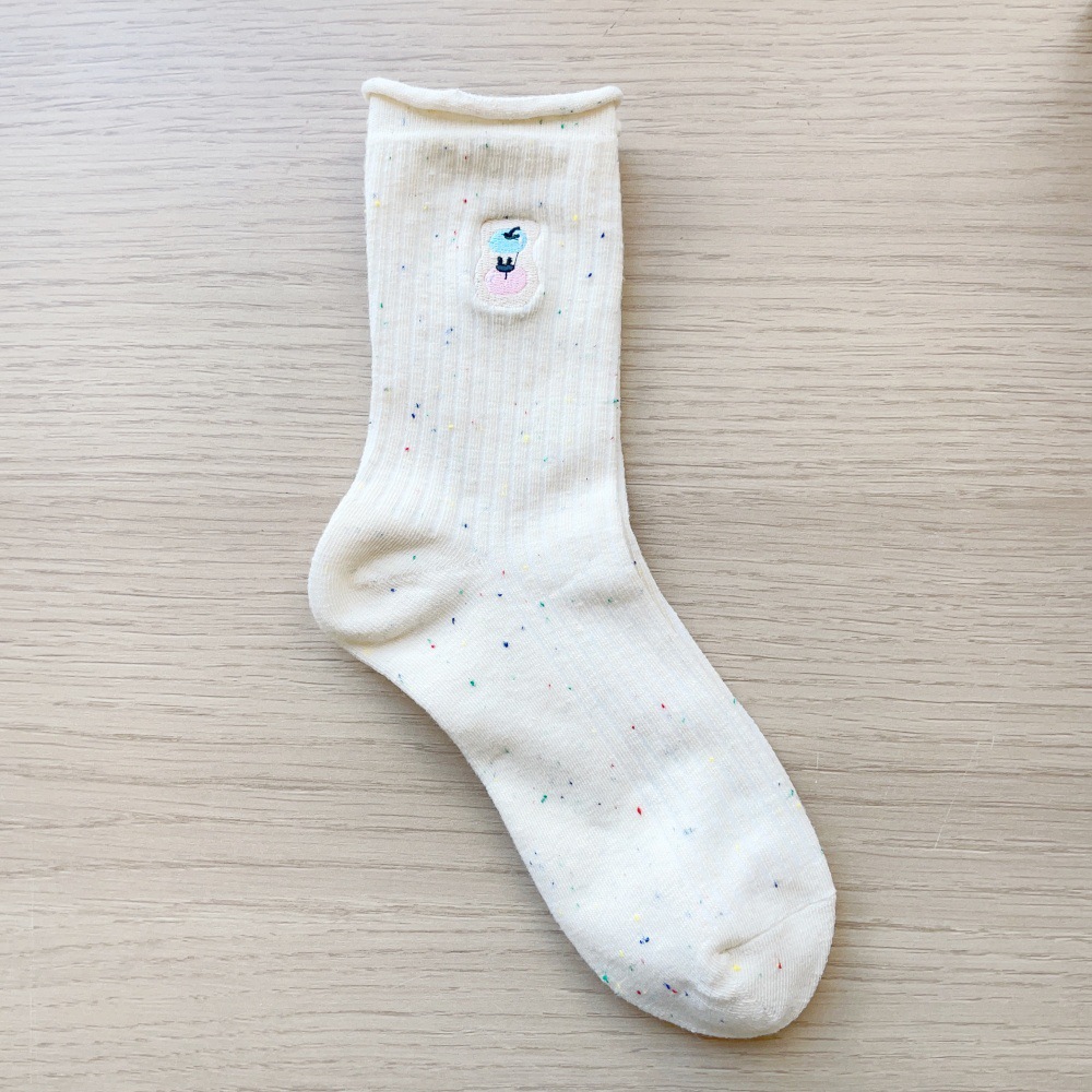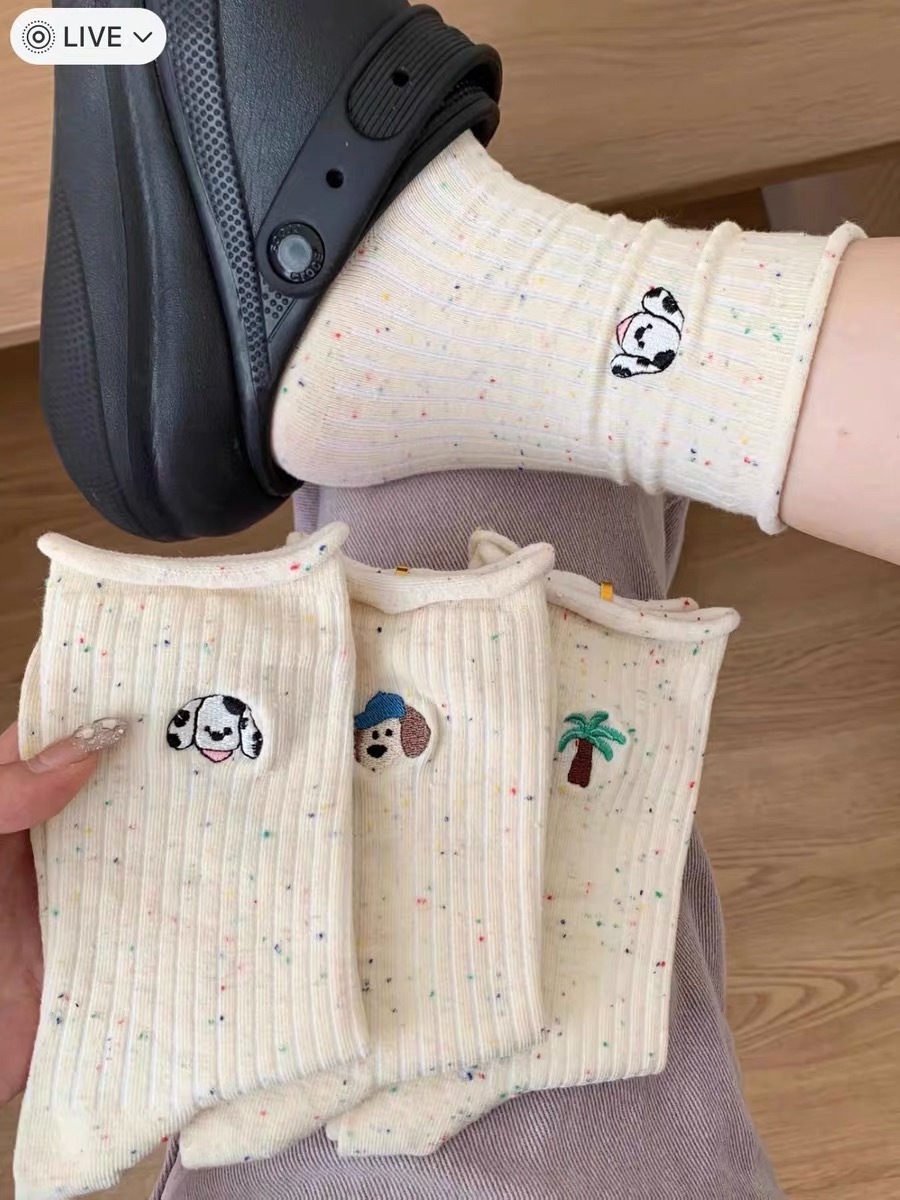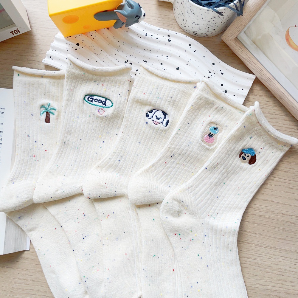 양말 여성의 가을과 겨울 중간 배럴 일본 자수 컬링 도트 강아지 양말 Ins 유행 만화 귀여운 더미 양말스토어 가기