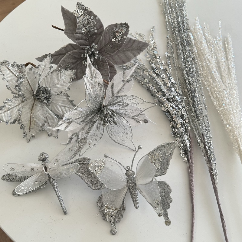 P66Dpeatime 크리스마스 장식 펜던트 장식 액세서리 빛 럭셔리 액세서리 크리스마스 꽃 실버스토어 가기