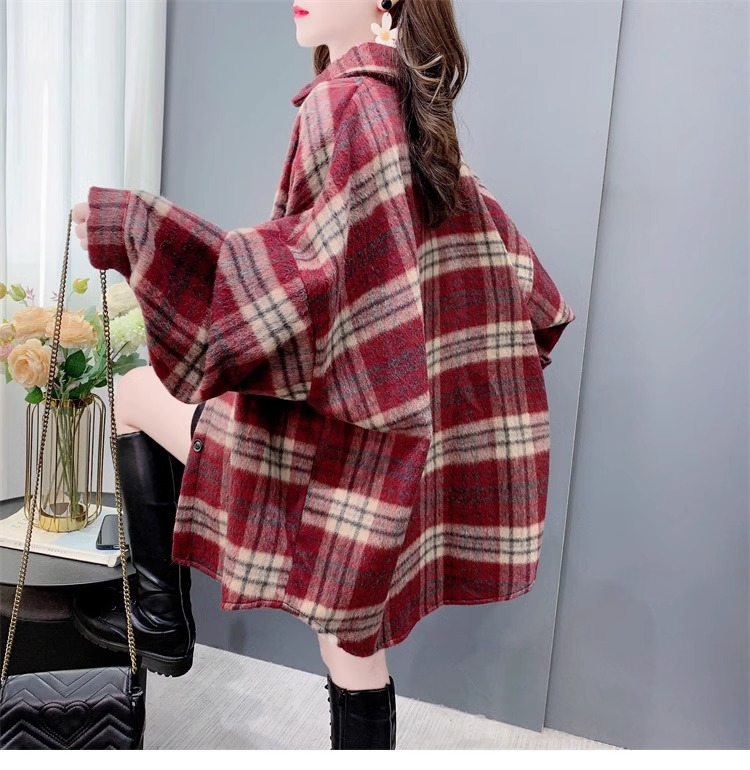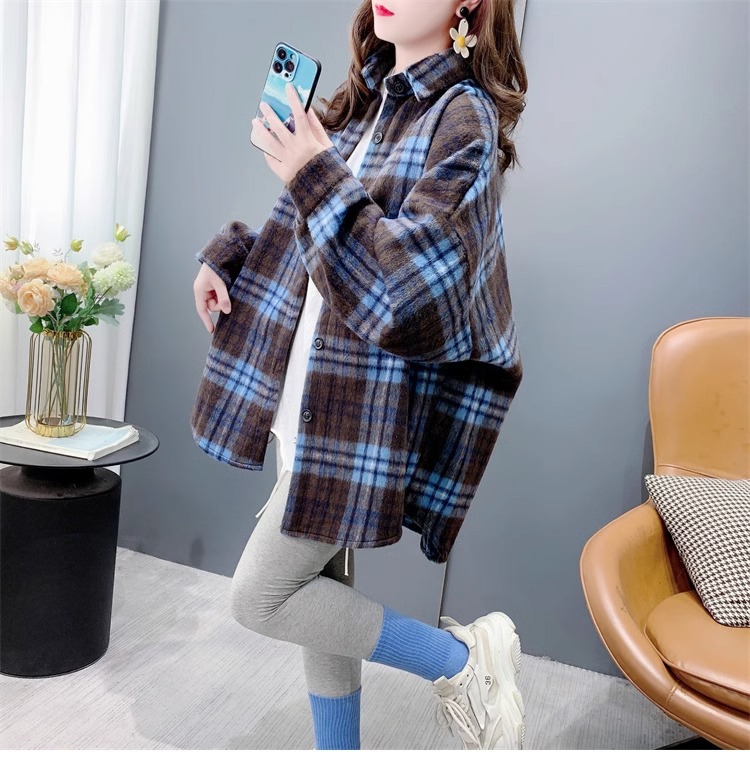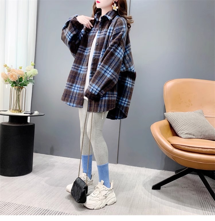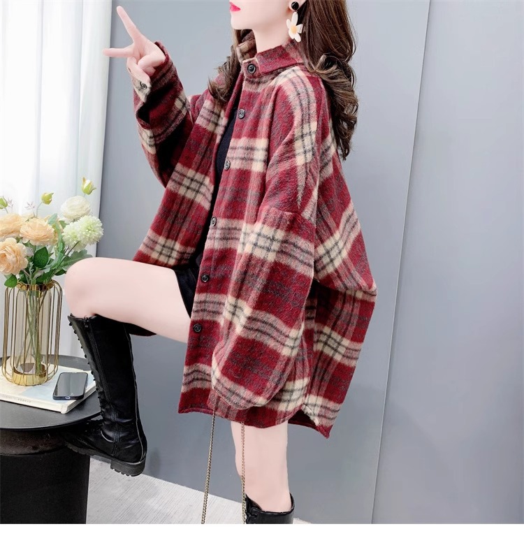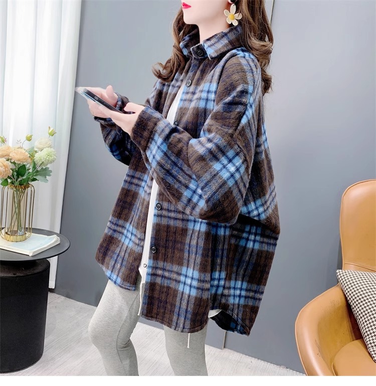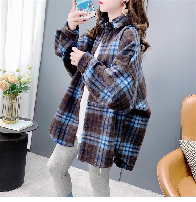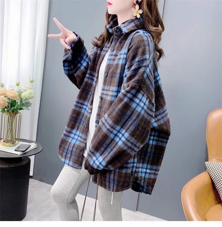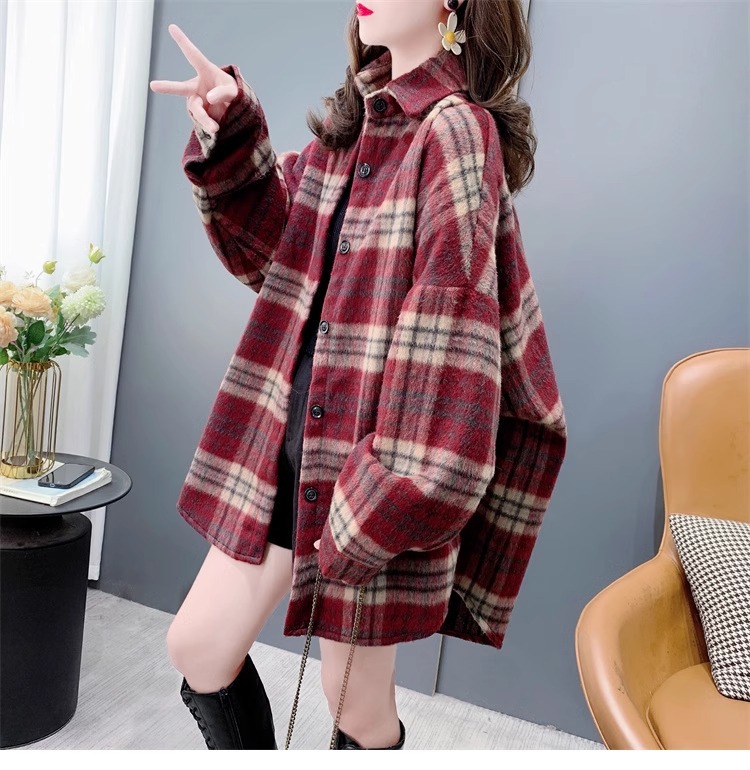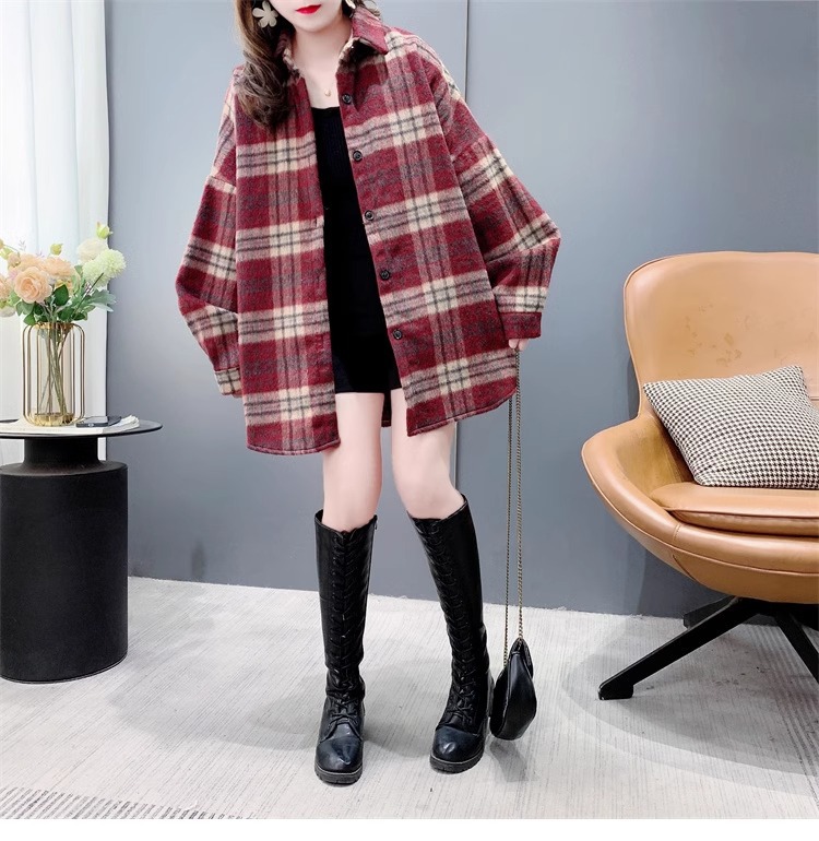 두꺼운 격자 무늬 셔츠 재킷 여성용 가을 및 겨울 새 플러스 사이즈 여성용 한국 루스 레트로 모직스토어 가기