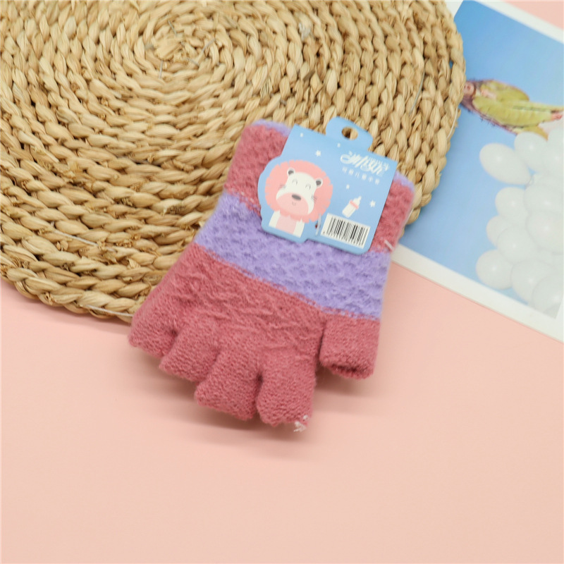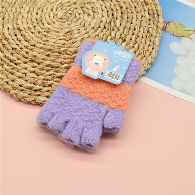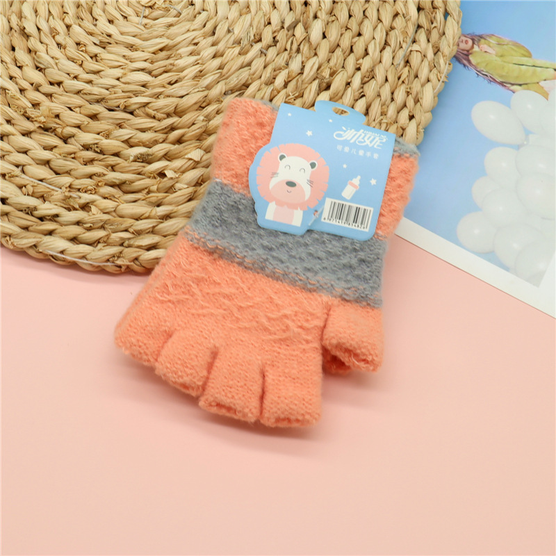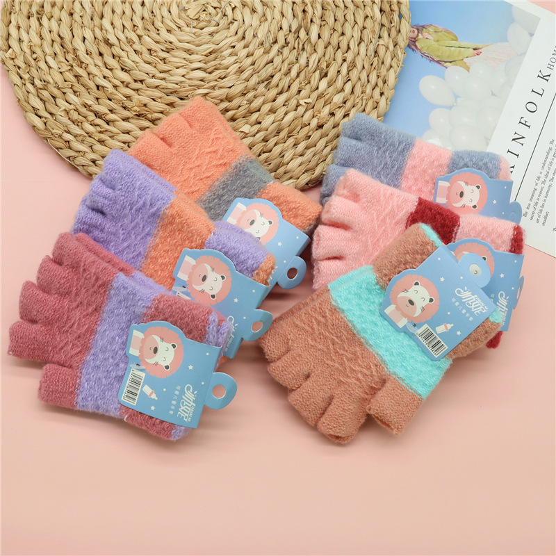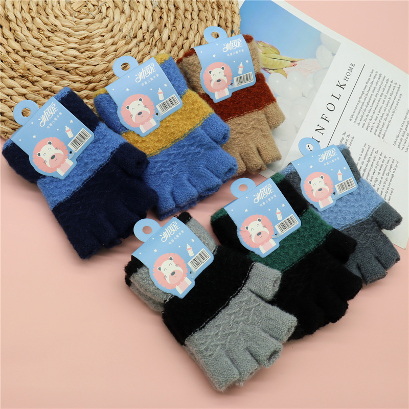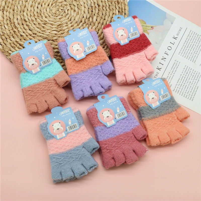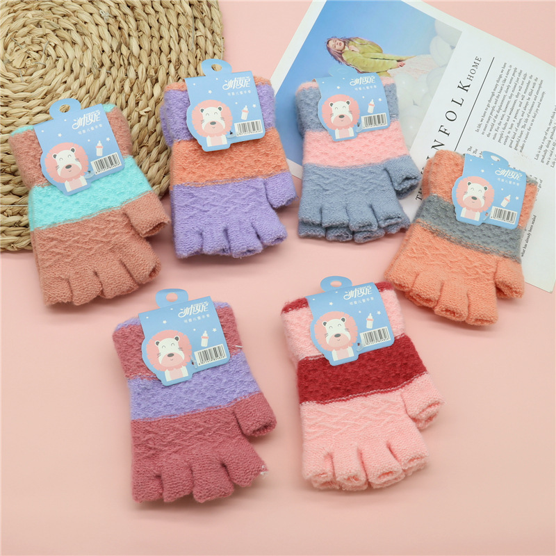 가을과 겨울 새로운 어린이 반 손가락 장갑 귀여운 니트 울 장갑 소년과 소녀 4 ~ 9 세 학생 반 손가락 장갑