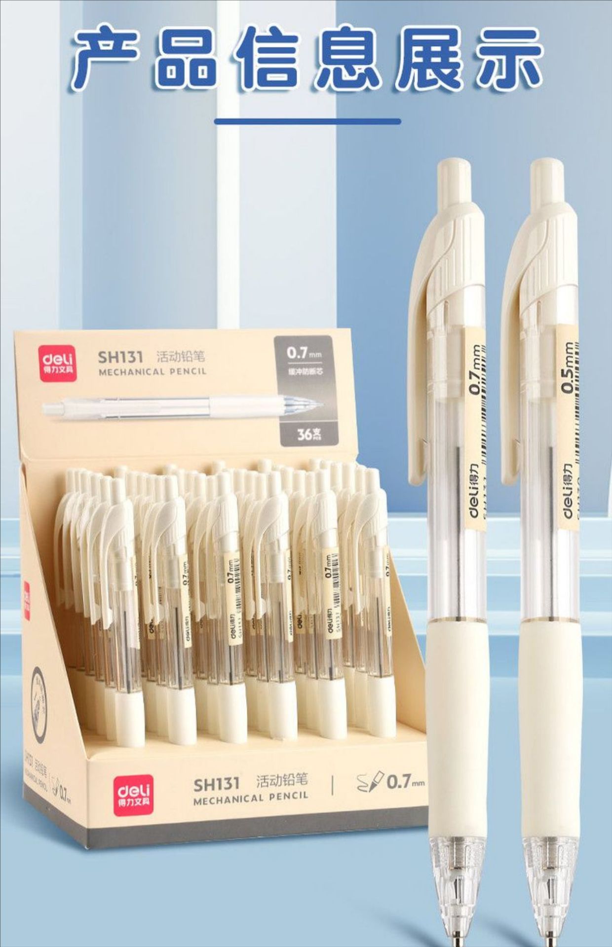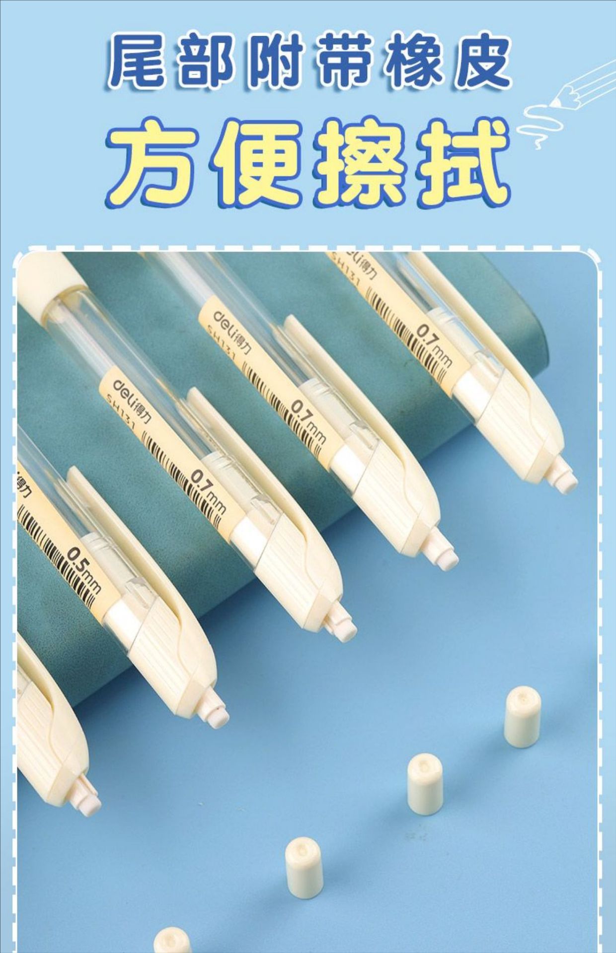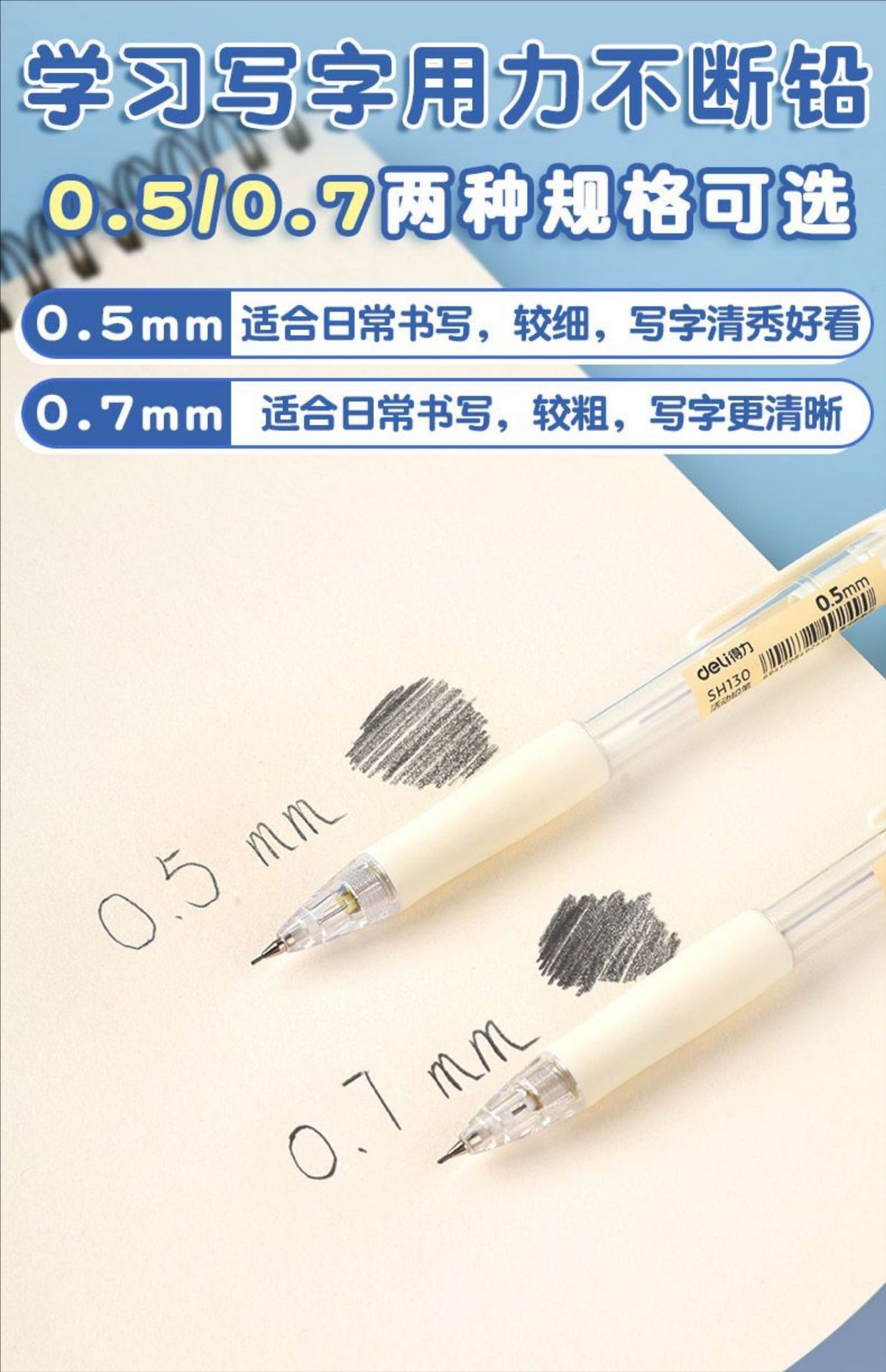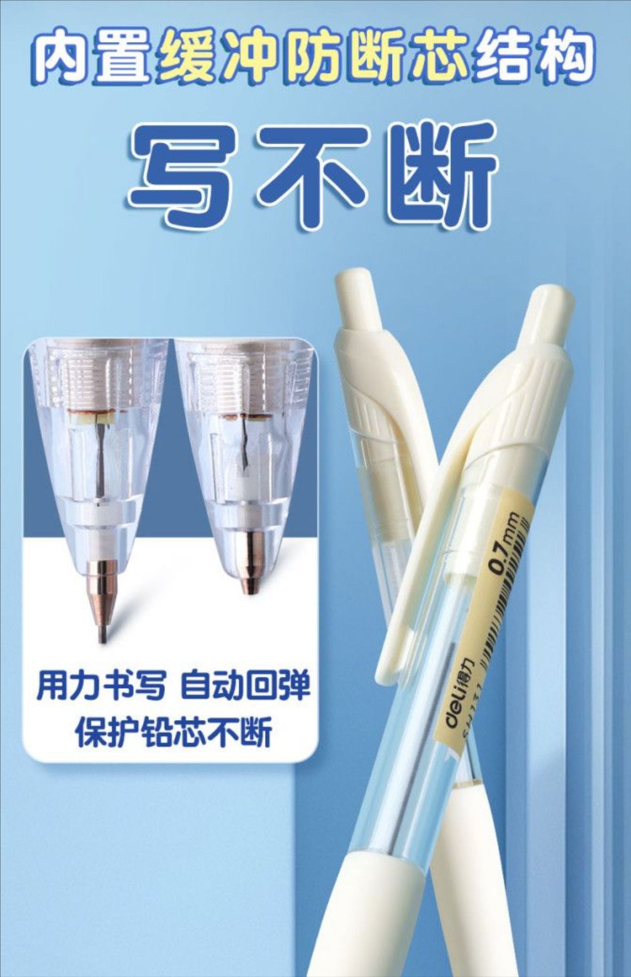 델리 SH130 는 기계 연필을 깨기 쉽지 않습니다 간단한 투명 자세 학생들은 연속 코어 플라스틱 0.7mm 를 누르십시오