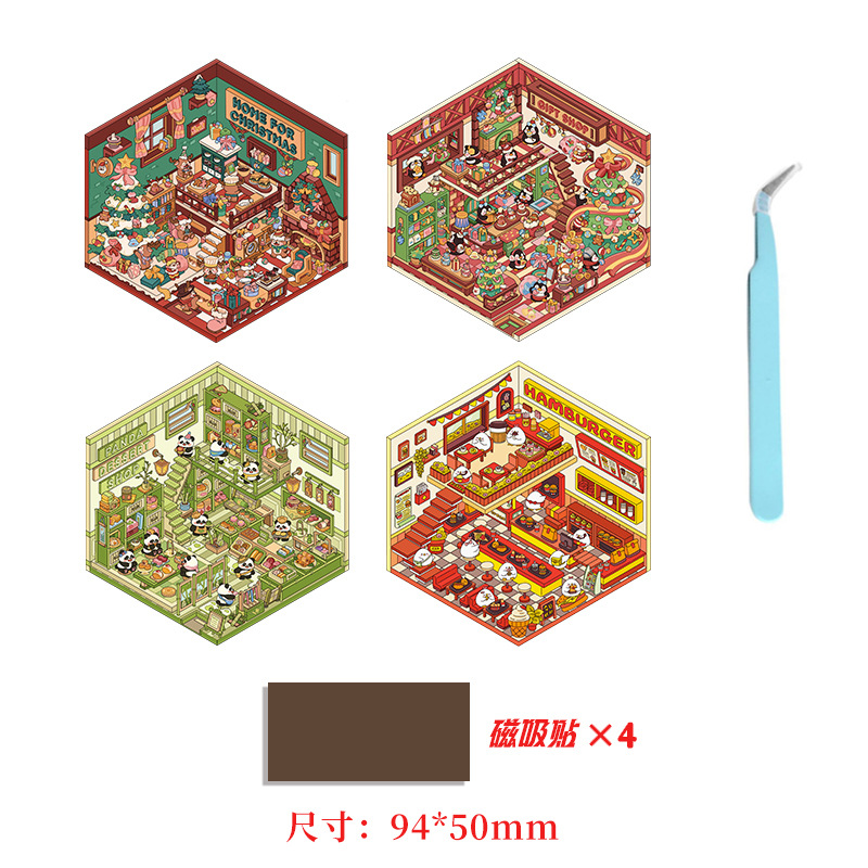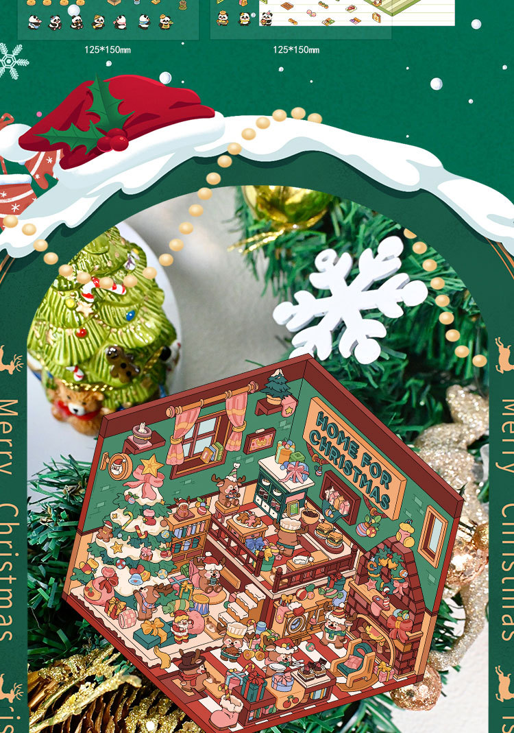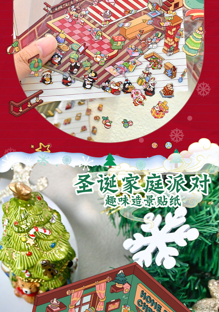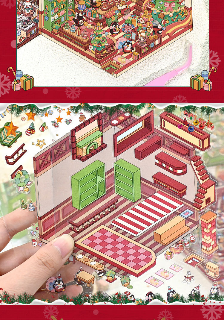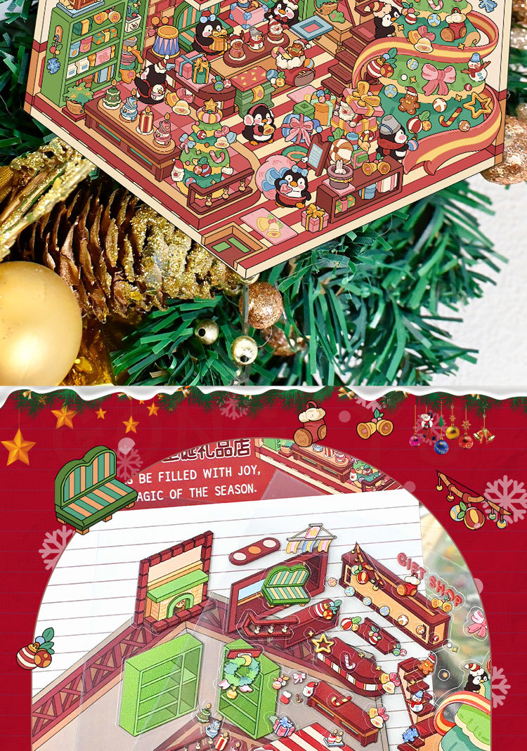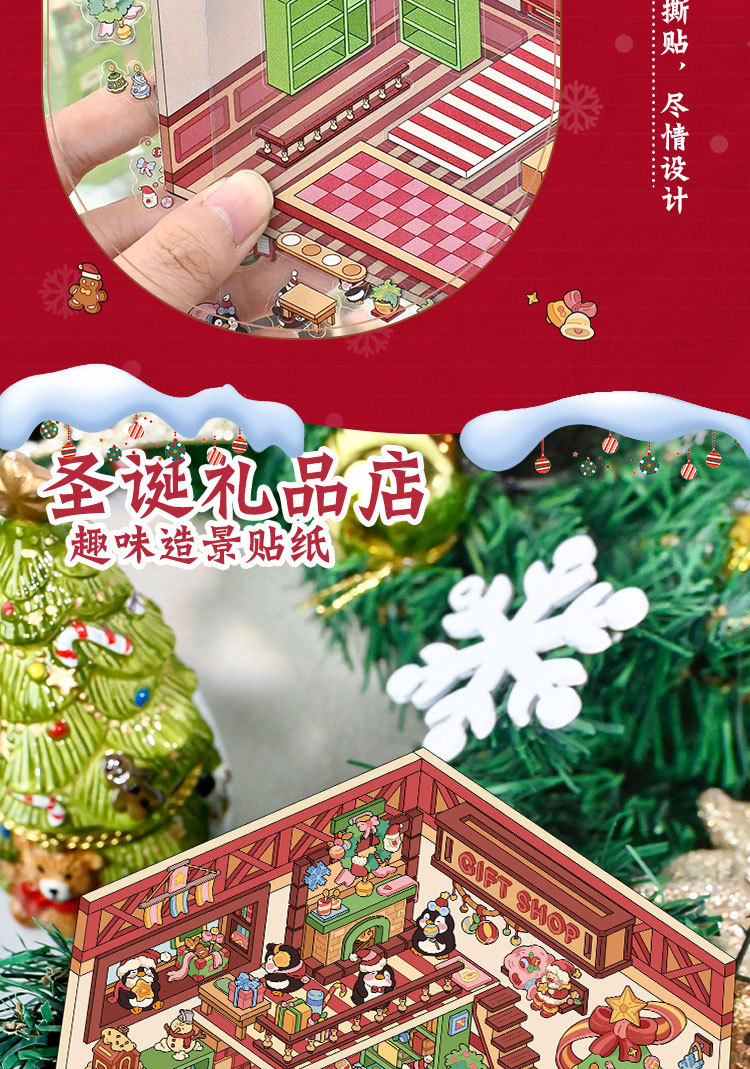 Senyou 3.0 크리스마스 저장 풍경 캐빈 스티커 diy 스테레오 마이크로 장면 3D 스티커를위한 국경 간 스페셜스토어 가기
